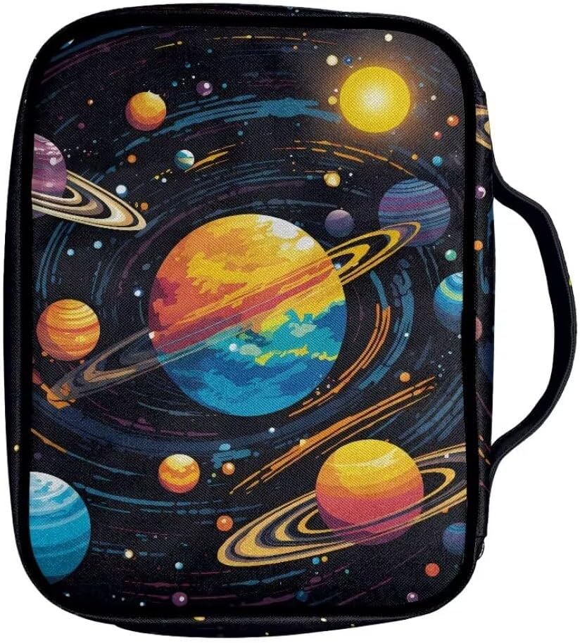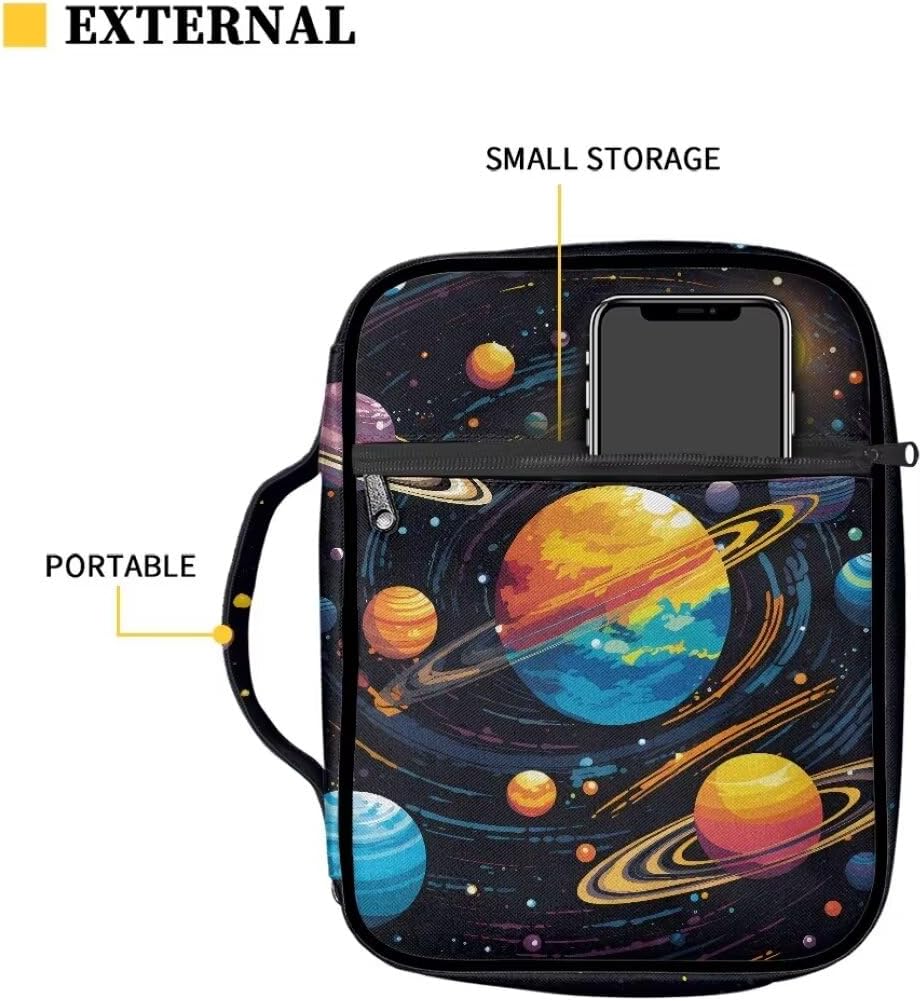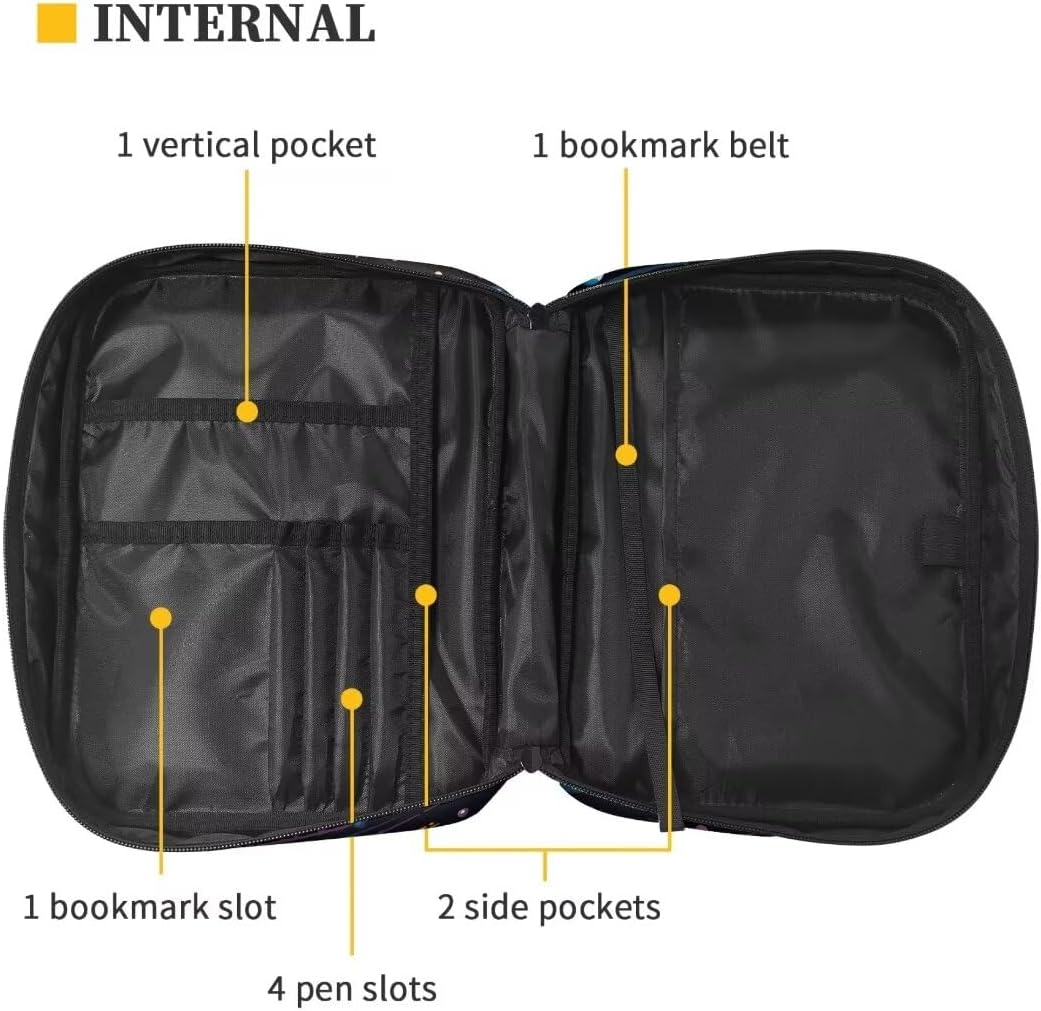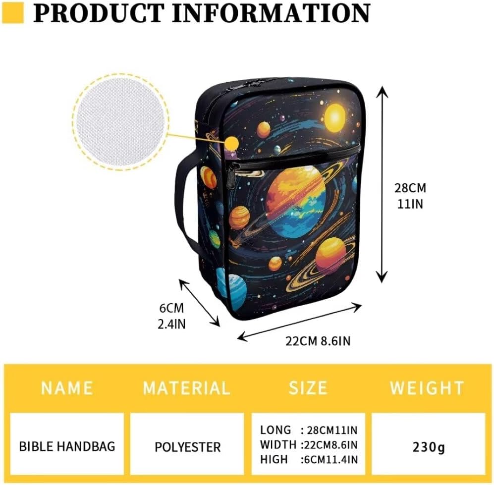 ★Materiale: è realizzato in tessuto di poliestere di alta qualità, resistente e robusto, leggero e lavabile. Non è una copertura rigida, molto flessibile da usare. Dimensioni: 28 cm x 6 cm x 22 cm, perfetto per la maggior parte delle bibbie (grandi, standard) o libri. ★Caratteristiche: questa elegante custodia per bibbia è ideale per proteggere la Bibbia o il tuo libro da graffi tutto il tempo. La tasca posteriore con cerniera può contenere piccoli quaderni, penne, cellulare o alcune piccole cose. Le tasche interne possono contenere penne, evidenziatori, segnalibri, biglietti di preghiera e quaderni, ecc. Viene fornito con 1 cintura segnalibro e la maniglia su questo lo rende così portatile da trasportare in chiese, scuole, biblioteche, sale studio. s,viaggio,in qualsiasi tempo per il tuo studio biblico. ★ Multifunzionale e alla moda: design pratico che non solo può essere utilizzato come custodia per la Bibbia, ma anche come borsa per cosmetici da viaggio, borsa per notebook, ecc. La stampa carina e alla moda ti renderà più felice. Vari colori e stampe tra cui scegliere, come girasole, cavallo, stampa animalier, galassia, frutta, tartaruga, floreale vintage, bandiera americana, ecc. Bel regalo: questa borsa per libri è un regalo perfetto per la famiglia, gli amici, gli amanti per le festività cristiane, il giorno del Ringraziamento, Natale o altre festività.