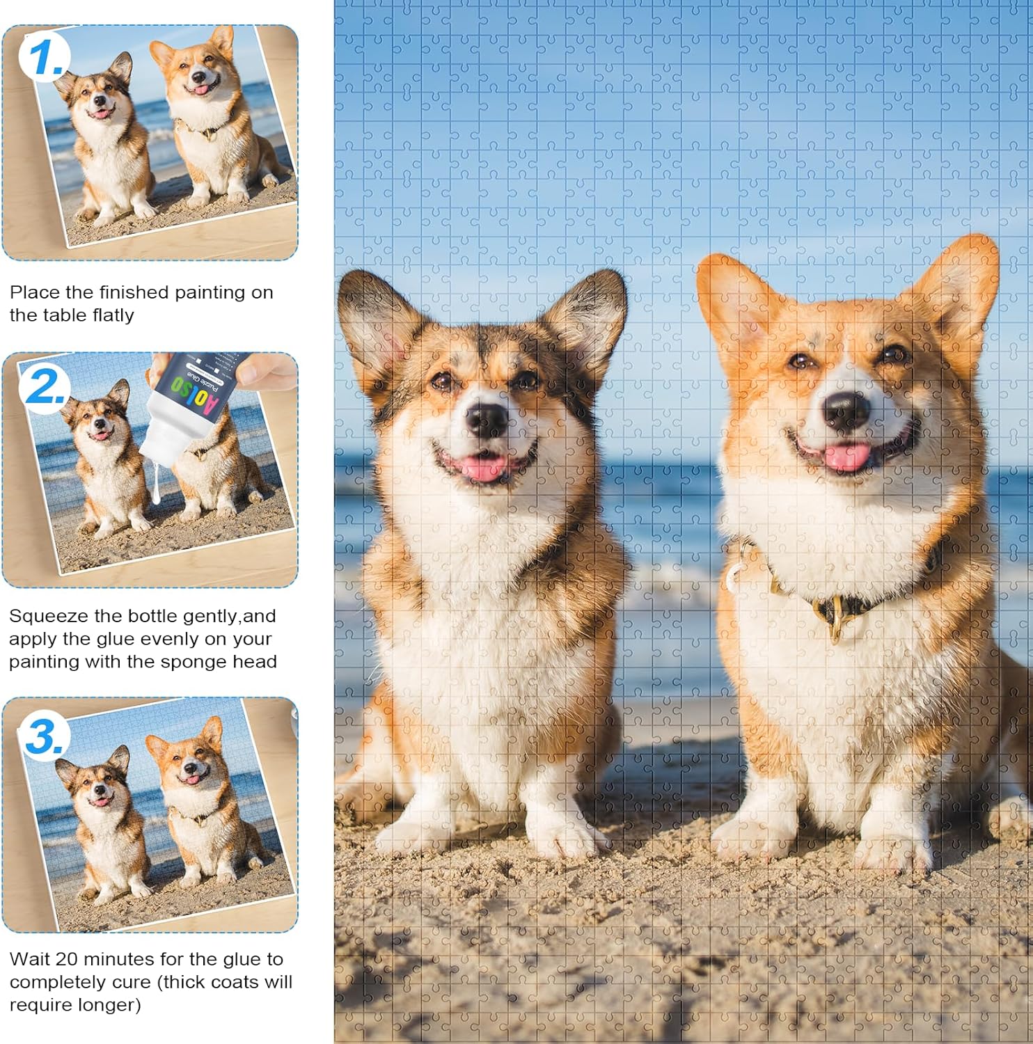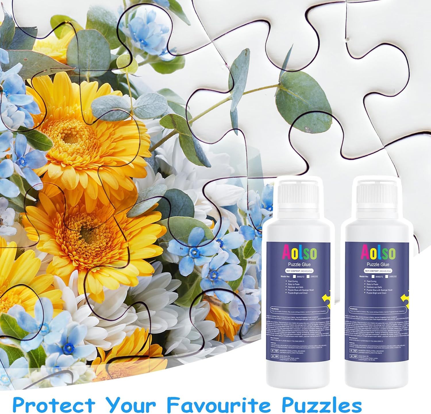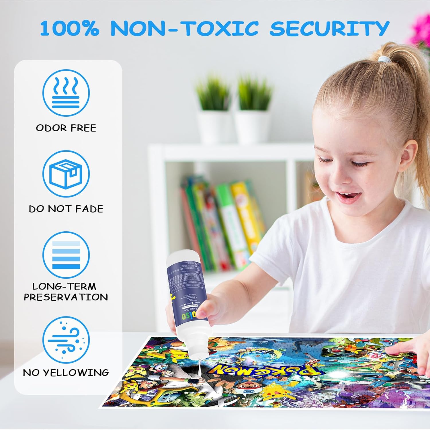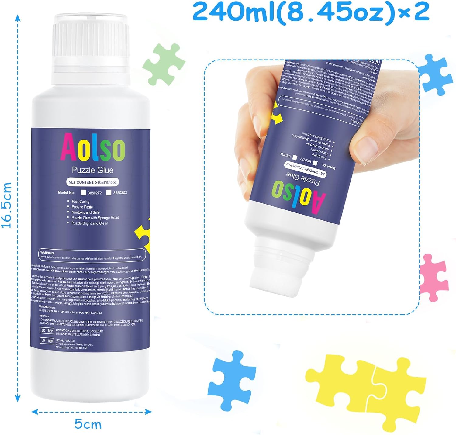 Grande capacità da 240 ml: grande capacità di 240 ml, può contenere 3000 pezzi di puzzle per evitare sprechi di colla. Una volta applicata la colla, il tuo puzzle/puzzle diventerà più forte, liscio e lucido. La nostra colla non lascia tracce ed è resistente all'umidità e all'ossidazione. Adesivo puzzle sicuro: la colla puzzle è realizzata in PVA, è 100% atossica ed ecologica. Sicuro per adulti e bambini. L'adesivo solubile in acqua è conforme ai test internazionali di sicurezza e può essere utilizzato tranquillamente dai bambini. La colla puzzle conserva i puzzle assemblati in modo permanente, quindi è una buona scelta per le attività artigianali a casa. Facile da usare: utilizzare la spugna dispenser per applicare la colla del puzzle direttamente sulla superficie dell'immagine e distribuirla uniformemente, attendere che si asciughi e poi riutilizzarla. (Nota: durante l'applicazione, assicurarsi che la colla possa penetrare negli spazi vuoti, il che può rendere il puzzle più forte; se applicato con uno strato sottile, si consiglia di asciugare all'aria per 20 minuti; la situazione reale è determinante) Decorazione creativa: fissare i pezzi del puzzle con la colla del puzzle e appenderli come decorazione elegante. Nota: Non consumare questo prodotto. Si prega di tenere questo prodotto fuori dalla portata dei bambini sotto i 3 anni. Si prega di stringere il tappo della bottiglia dopo l'uso. Regalo ideale: questa colla puzzle è adatta per la maggior parte dei materiali, come puzzle di carta, legno, libri, immagini e quadri con diamanti, ecc. Allo stesso tempo, la colla puzzle conserva e fissa in modo permanente il puzzle composito, che può quindi essere appeso alla parete come elemento decorativo.