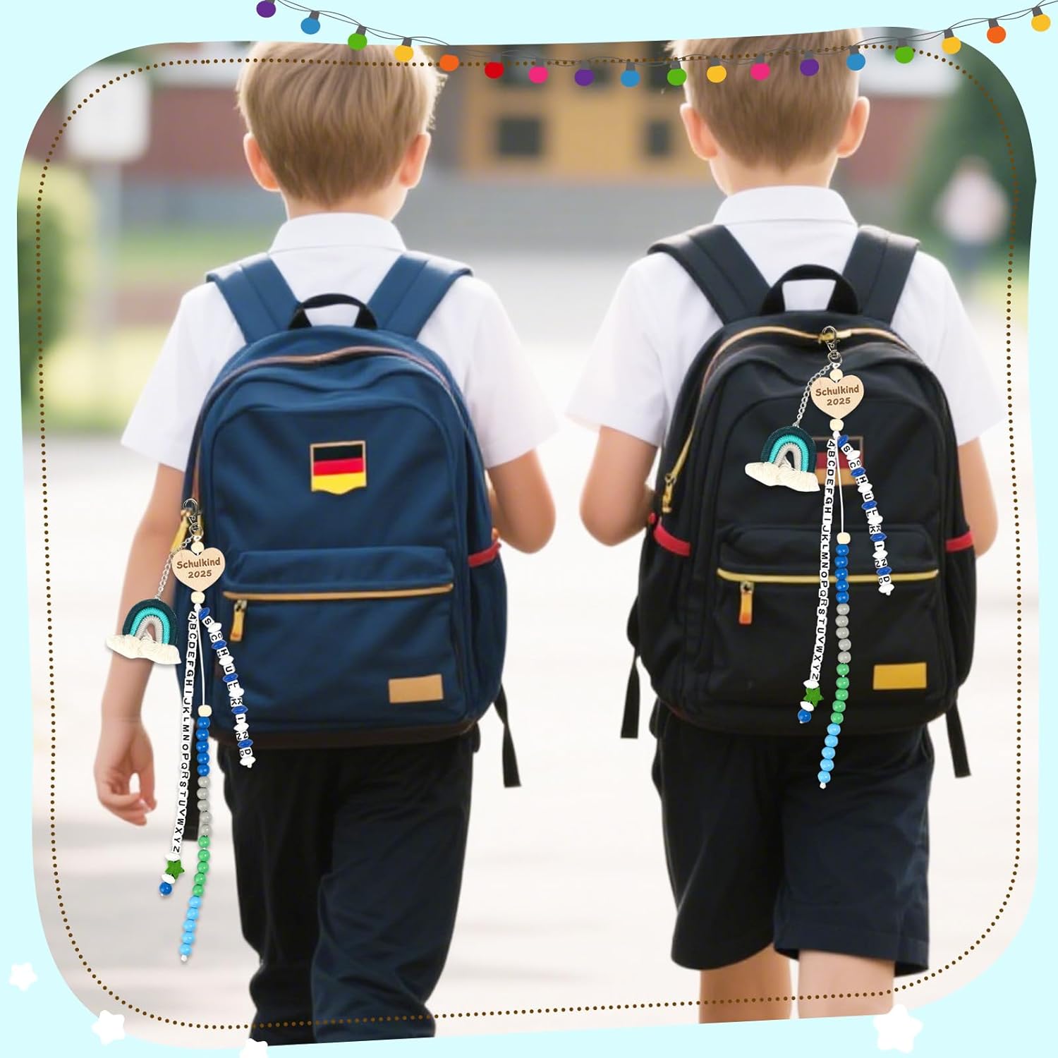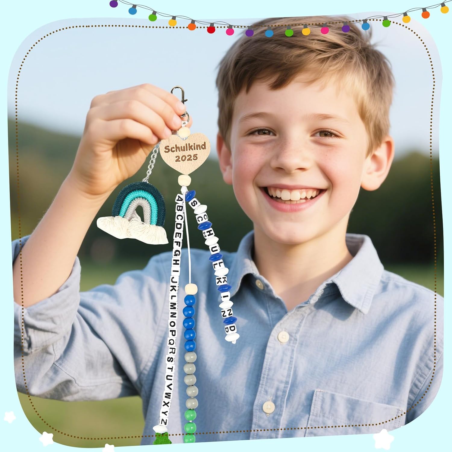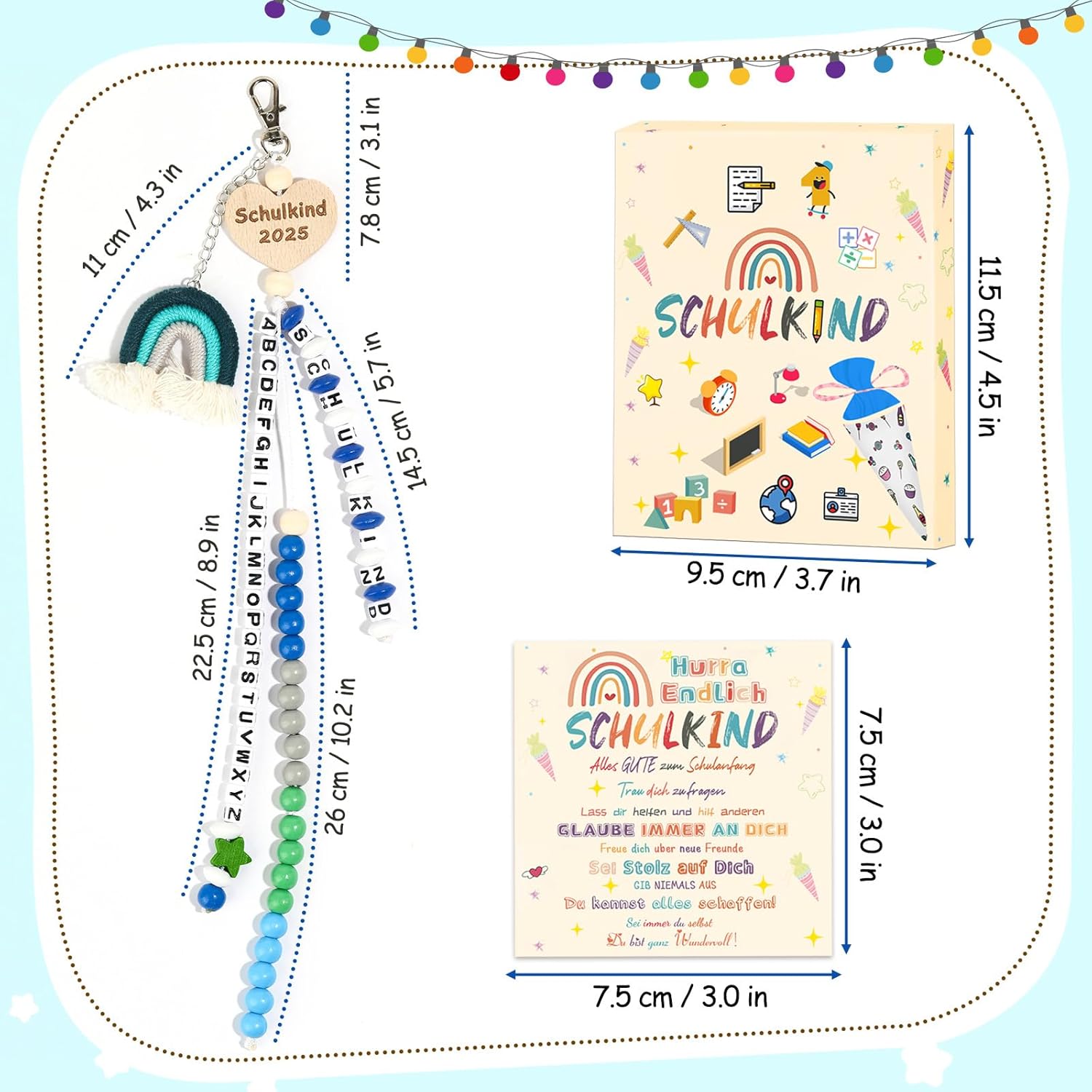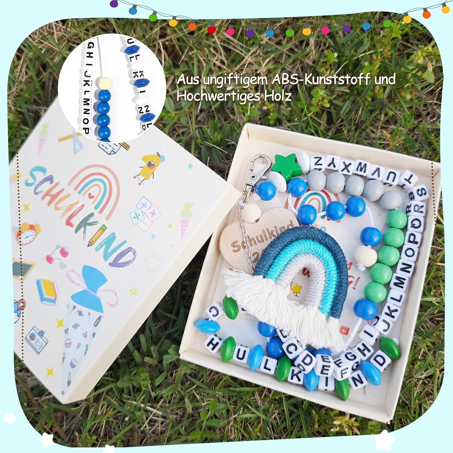 Perfetto per i principianti della scuola: tre pratici ciondoli con lettere (A-Z) e sfere computazionali (1-20), la catena con 26 lettere supporta l'apprendimento giocoso dell'ABC, mentre 20 perline colorate trasmettono fino a 20. Incluso biglietto di auguri personalizzabile Esclusivo set per l'inizio della scuola: include ciondoli portafortuna, biglietto personalizzato e confezione regalo, l'unico portafortuna con messaggi motivazionali regala sicurezza e gioia ai bambini. La scatola realizzata con cura con cordiali congratulazioni rende l'inizio della scuola un'esperienza indimenticabile Imbottitura del cono per la scuola: accompagna i bambini nella vita scolastica e durante le attività ricreative, robusti ciondoli in materiale sicuro per i bambini si adattano a qualsiasi design della cartella. Sia in classe, a scuola o durante le gite – gli aiuti pratici per l'apprendimento sono sempre a portata di mano Regalo perfetto: per ragazzi di prima classe. Con colori vivaci e motivi dolci, il set entusiasma come regalo di compleanno, sorpresa per la scuola o per il primo giorno di scuola. Ideale da appendere allo zaino per la scuola in viaggio Qualità e garanzia di soddisfazione: realizzato in plastica ABS atossica e legno di alta qualità con bordi arrotondati. In caso di domande, non esitate a contattarci tramite il sistema di messaggistica Amazon, risolveremo la vostra preoccupazione entro 24 ore