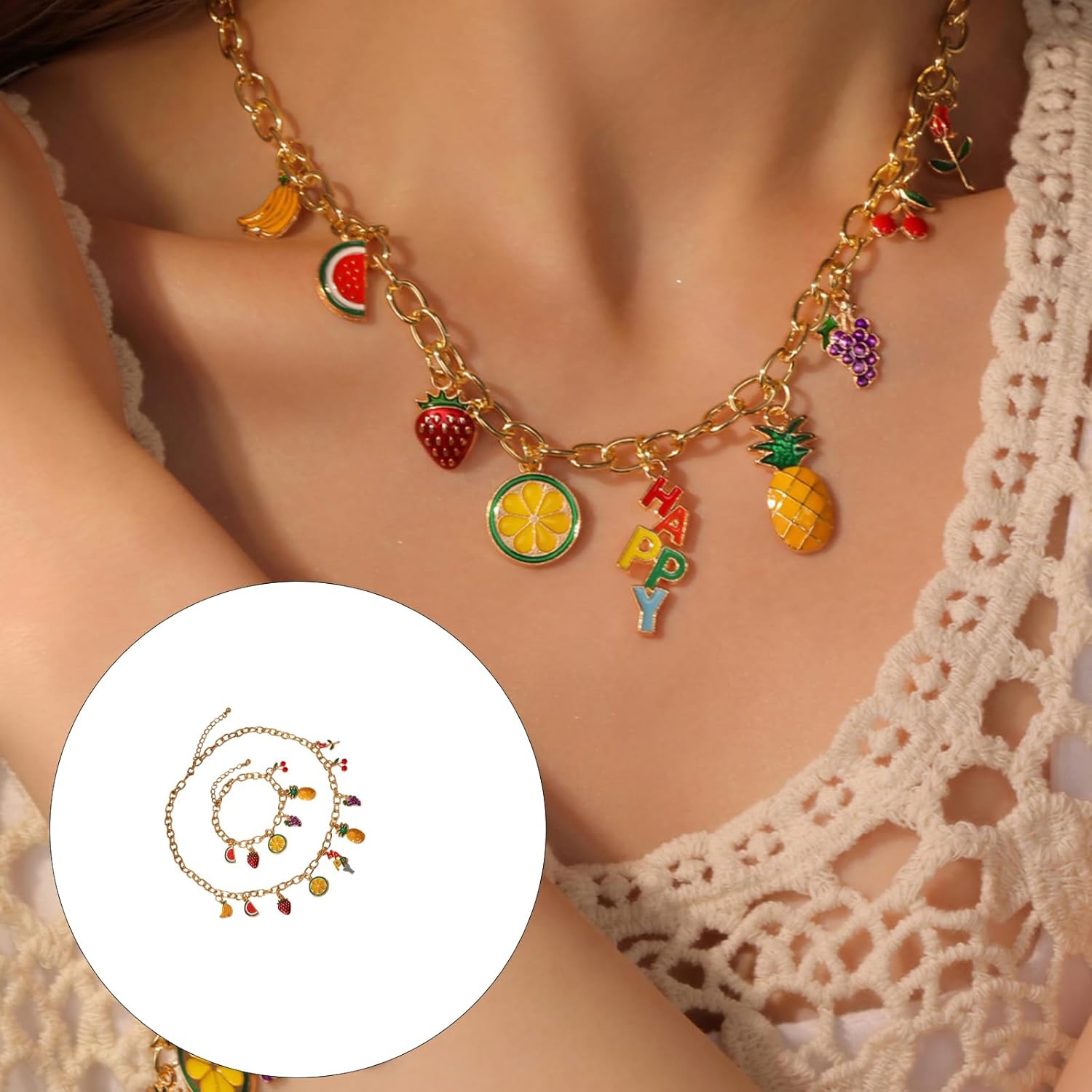 Collana con ciondolo a frutta regolabile, set da polso, struttura in acciaio inossidabile che simboleggia la felicità, regali per le donne Caratteristiche: Vivace set gioielli a tema frutta con motivi anguria, fragola e ciliegie, realizzati in acciaio inossidabile per lucentezza e comfort duraturi. Catene regolabili per collana e bracciale con finitura che garantisce l'usura, adattandosi facilmente a varie dimensioni polsi e collo. Progettato per trend setter e persone in cerca regali che amano accessori giocosi e accattivanti per valorizzare outfit casual o look da festa. Abbina questo set gioielli con frutta a vestiti, giacche o abiti da festival per mostrare la tua vivace personalità. La struttura leggera robusta in acciaio inossidabile lo rende un accessorio quotidiano o un regalo affascinante per compleanni e anniversari. Specifiche: Componente: acciaio inossidabile Dimensioni della collana: 16,1+1,9 pollici (41+5 cm) Misura del braccialetto: 6,6+1,9 pollici (17+5 cm) La confezione include: 1x collana 1x braccialetto Nota: prega consentire errori 1-2 cm dovuti alla misurazione manuale. A causa delle differenze tra i diversi monitor, l'immagine potrebbe non riflettere colore effettivo articolo