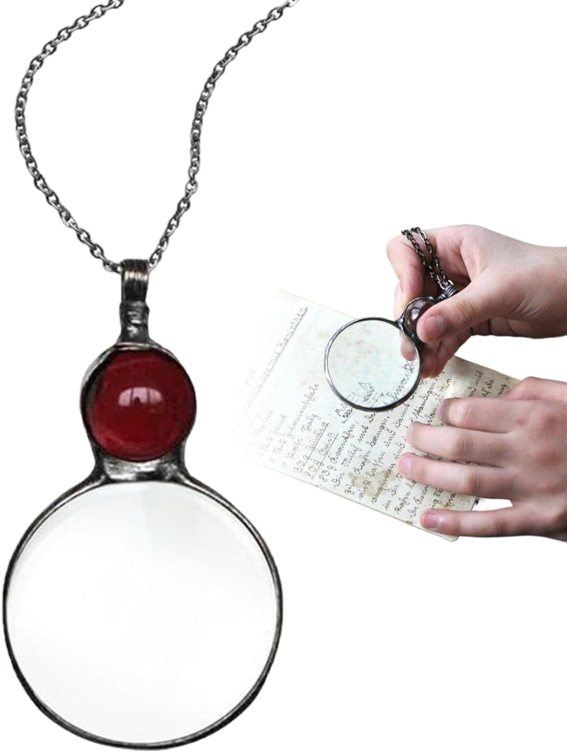 Design elegante con ciondolo con lente d'ingrandimento: questa collana con lente d'ingrandimento presenta una perla rossa dal design elegante, che unisce funzionalità e moda..Ideale per leggere piccoli testi o esaminare i dettagli in qualsiasi momento. Pensata per tutte le età: che tratti di nonni, bambini o chiunque apprezzi un accessorio pratico ed elegante, questa collana con lente d'ingrandimento è perfetta per compleanni, vacanze o occasioni speciali. Leggera e comoda da indossare: realizzata con materiali leggeri, questa collana con ingrandimento è comoda da indossare tutto il giorno..Il suo design ergonomico garantisce che sembri senza peso pur rimanendo duraturo. Caratteristica della collana anti-smarrimento: la catena della collana attaccata tiene saldamente la lente d'ingrandimento, riducendo le possibilità di smarrirla..Il design pratico è perfetto per gli anziani, i bambini o chiunque sia incline a perdere piccoli oggetti. Utilità portatile e a mani libere: progettata come una lente d'ingrandimento indossabile, questa collana è comoda a mani libere per leggere menu, etichette di prodotti o dettagli complessi mentre sei in movimento.