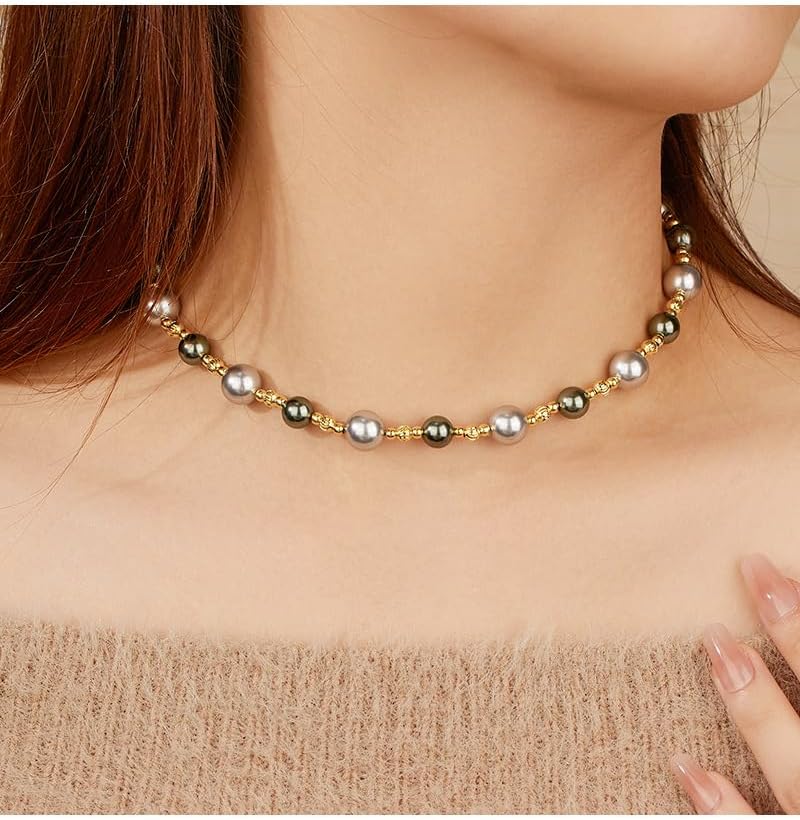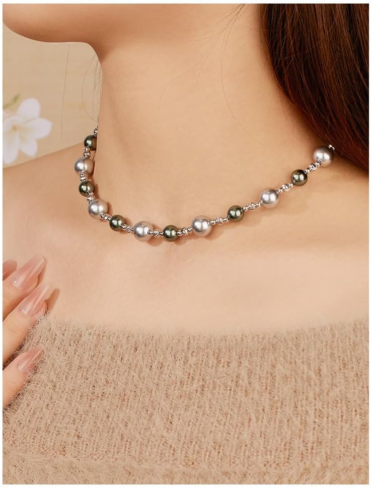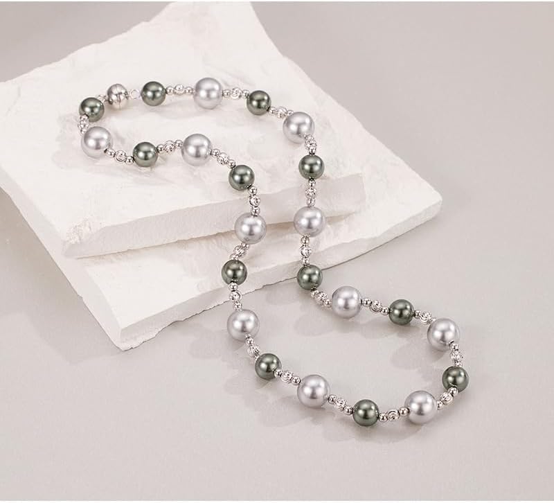 Collana con perle di conchiglia da donna Catena a clavicola con design con fibbia rotonda magnetica in argento 925 di fascia alta Accessori moda Collana di moda