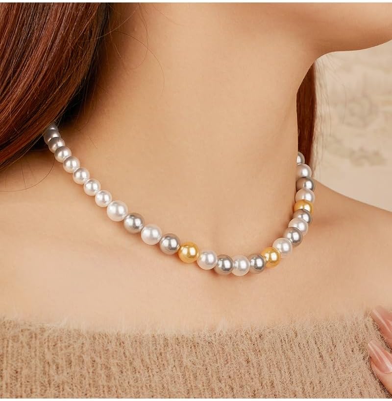 Collana di perline con fibbia di lusso leggera con perline di conchiglia di colore misto Catena di clavicole di fascia alta di nicchia in argento sterling 925 Accessori moda Collana di moda