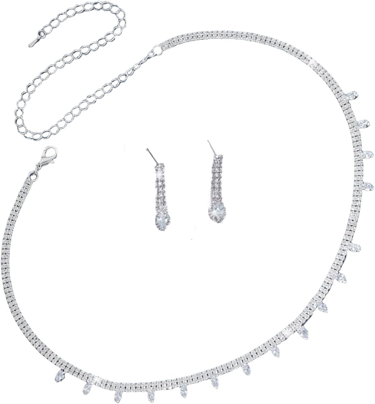 Collana da sposa rinestica e set orecchini eleganti gioielli per orecchini con accento Caratteristiche Eleva la tua grazia nuziale con set gioielli femminili, con chiara collana e orecchini ambientati in finitura in tono d'argento. Realizzato con squisita attenzione ai dettagli, questo set gioielli vanta un delicato design che brilla ogni movimento, rendendolo un'aggiunta scintillante a qualsiasi ensemble nozze. Adatto per la sposa in cerca un tocco raffinatezza e donne in avanti che apprezzano accessori per loro giorno speciale. Perfetto per indossare matrimoni, galas, balli o qualsiasi evento formale in cui dichiarazione scintillante è un must. Questo lussuoso set non tuo abbigliamento da sposa, funge anche da accessorio caro che cattura i ricordi del tuo momento più prezioso. Specifiche: Componente: rame+rinestone Dimensione orecchio 2,5x0,5 cm/0.98x0,19 pollici Lunghezza della collana: 38,6+20 cm 15 19+7 pollici pacchetto include: 3pcs set gioielli da sposa Nota: prega consentire l'errore 1-2 cm a causa della misurazione manuale. Assicurati non preoccuparti prima un'offerta. A causa della differenza tra diversi monitor, l'immagine potrebbe non riflettere colore effettivo articolo Grazie!