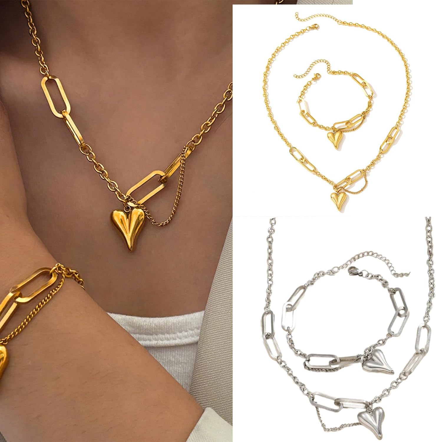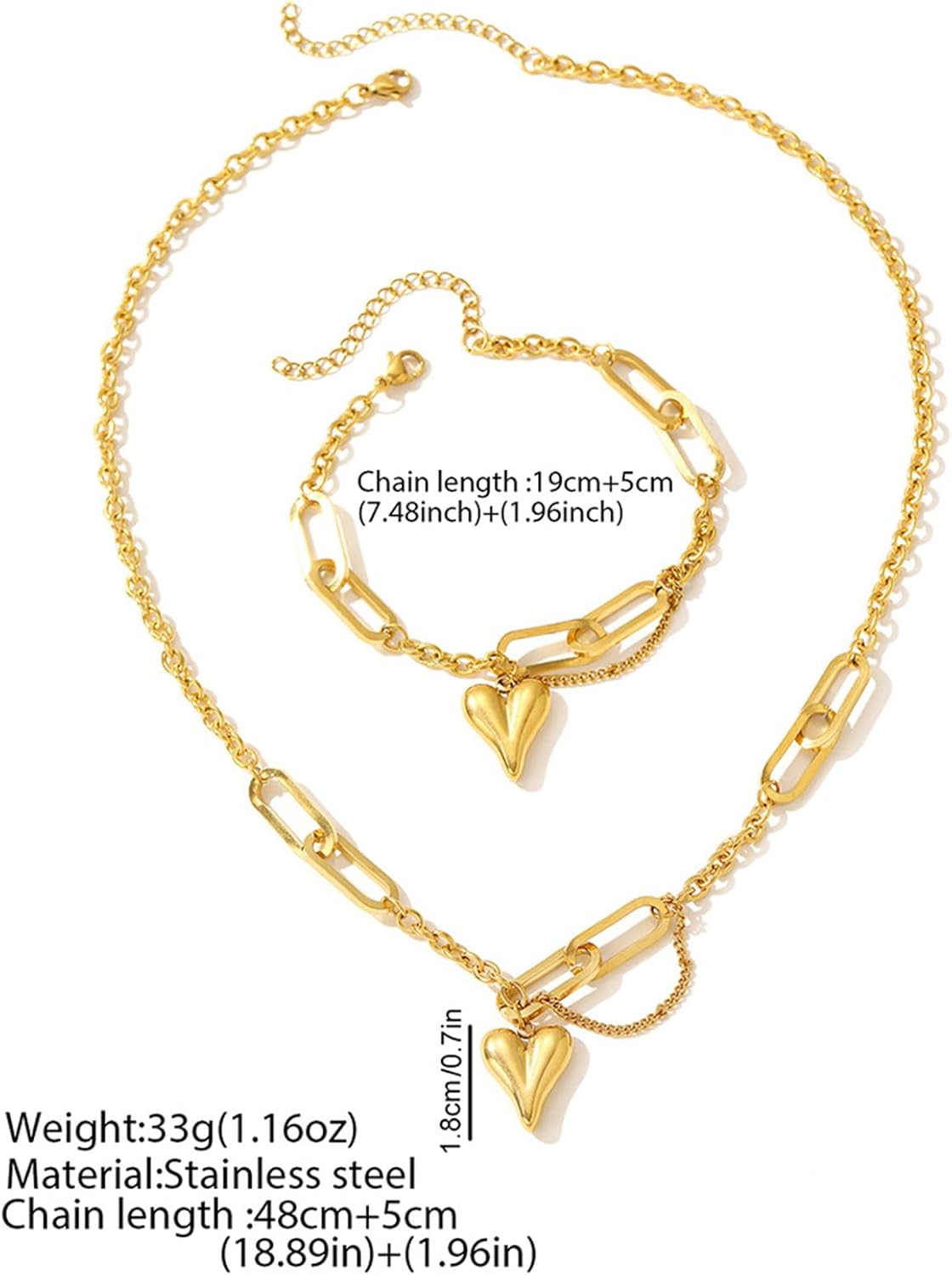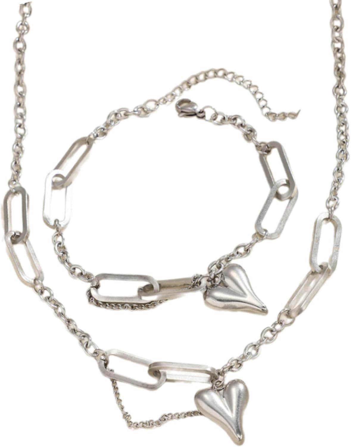 Collana Donne Gioielli Set Cuore Bracciale a sospensione Bracciale semplice a sospensione Texture in acciaio inossidabile per donne Caratteristiche: Scopri eleganza con la collana e braccialetto per le donne, realizzate in acciaio inossidabile e con un ciondolo a cuore che cattura meravigliosamente la luce. Questa collana mette in mostra miscela estetica orientale e occidentale, offrendo semplici design con linee morbide e forme ricche, rendendolo un oggetto versatile per qualsiasi collezione gioielli. Perfetta per le donne e le ragazze della che apprezzano eleganza, questa collana vari stili e migliora temperamento diverso. Adatto per abbigliamento quotidiano, date o celebrazioni festive, questa collana accoppia senza sforzo con abiti diversi, aggiungendo un tocco raffinatezza a qualsiasi occasione. Ogni set è progettato da senior tramontando ispirazione dalla per fornire un'esperienza usura squisita e non che trascende i confini culturali. Specifiche: Texture: acciaio inossidabile Colore: dorato/argento Lunghezza della catena del braccialetto: 7,48+1,96 pollici (19+5 cm) Lunghezza della catena della collana: 18,89+1,96 pollici (48+5 cm pacchetto include: Bracciale 1x 1x collana Nota: prega consentire errori 1-2 cm dovuti alla misurazione manuale. A causa delle differenze tra i diversi monitor, l'immagine potrebbe non riflettere colore effettivo dall'articolo.