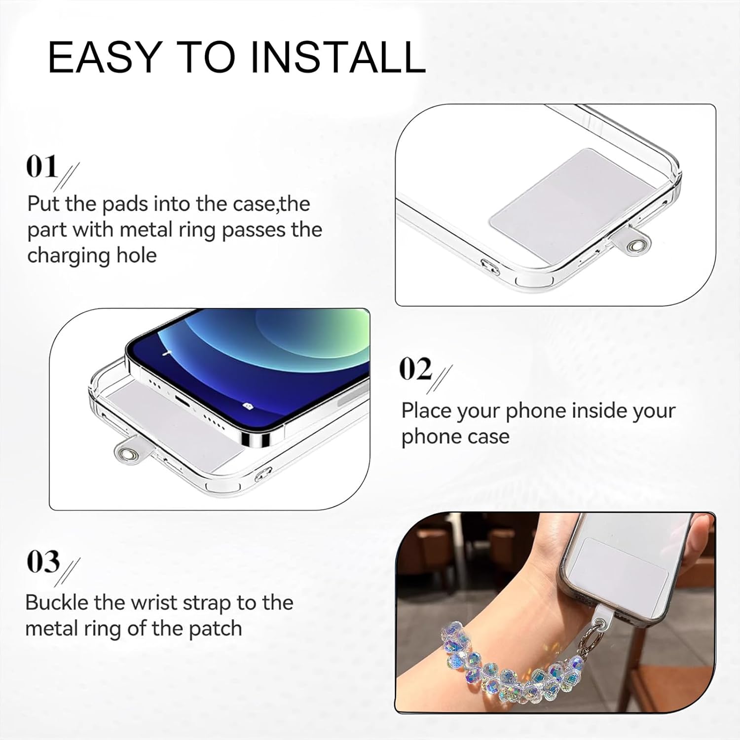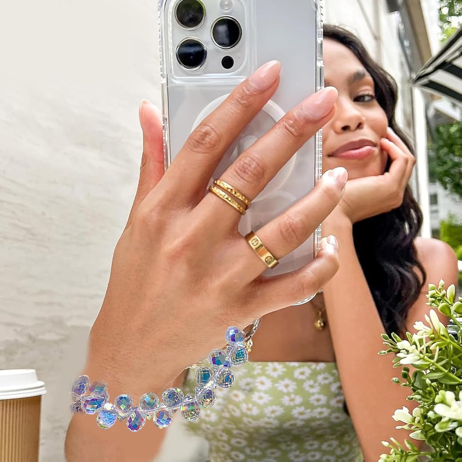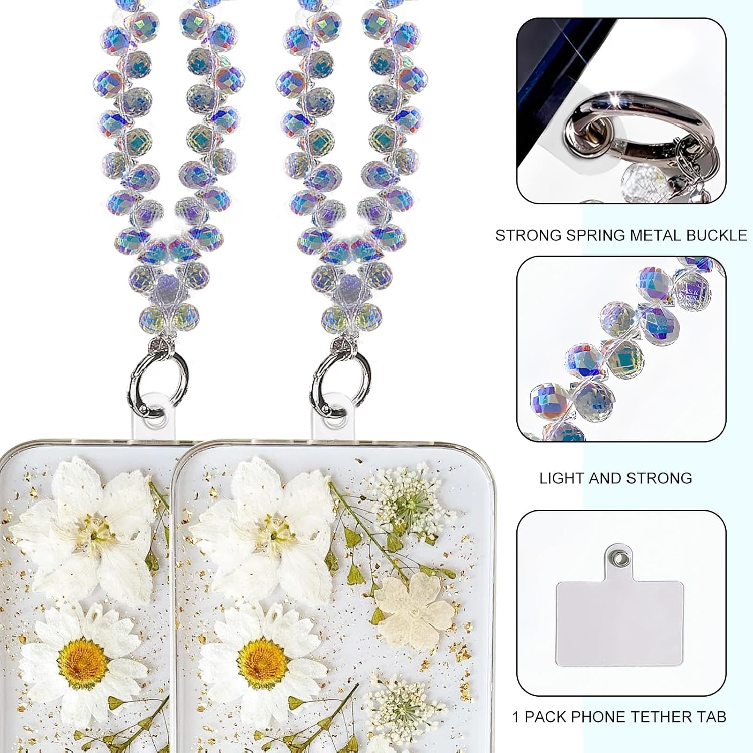 Design unico per individualità: questa collana corta per cellulare è composta da eleganti elementi di perle che conferiscono al tuo smartphone un look unico. Con elegante ciondolo per cellulare come strass scintillanti e delicate collane di perle in diverse forme. Protezione sicura anti-smarrimento: grazie al robusto design con charm, la catena può essere indossata comodamente intorno al polso per evitare di perdere il telefono. Il cinturino per cellulare offre maggiore sicurezza e previene cadute accidentali, ideale per i viaggi o le attività all'aperto. Facile da usare e versatile: la collana con perline corte è facile da applicare e si adatta a qualsiasi custodia. Basta tirare attraverso l'apertura della custodia e il telefono è protetto con questa elegante collana glitterata. Può anche essere usato come accessorio alla moda. Perfetto per diverse occasioni: sia per la vita quotidiana, per occasioni speciali o come accessorio alla moda, questi ciondoli per telefono sono il compagno perfetto. Si adattano a qualsiasi custodia per cellulare e possono essere utilizzate sia come dichiarazione di moda che come gadget funzionale. Regalo ideale per i vostri cari: questa collana per cellulare con perline scintillanti e design elegante è il regalo ideale per amici e familiari. Perfetto per compleanni, anniversari, Natale o semplicemente come piccolo pensiero per la persona amata. Il design a catena per telefono è sia pratico che elegante.