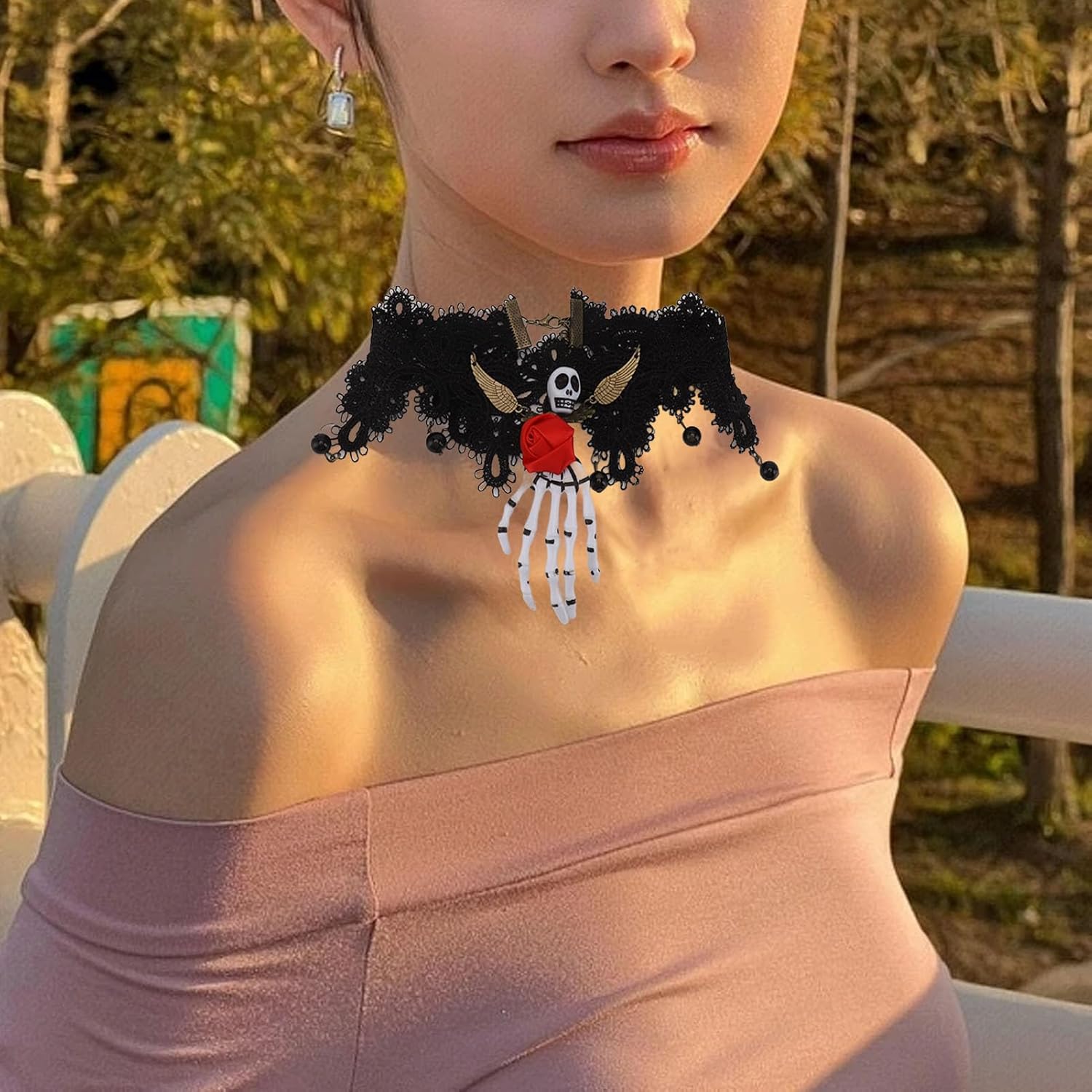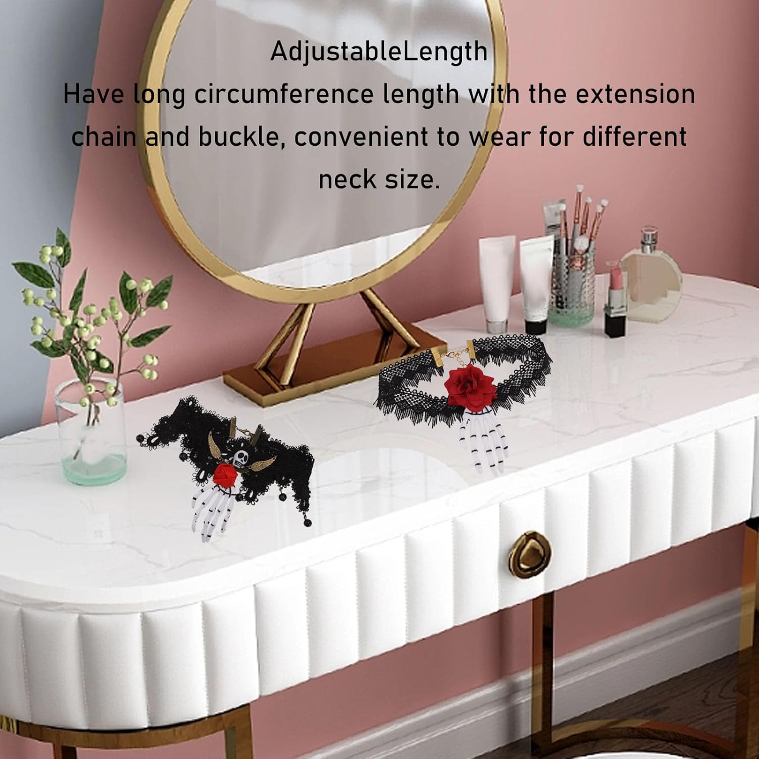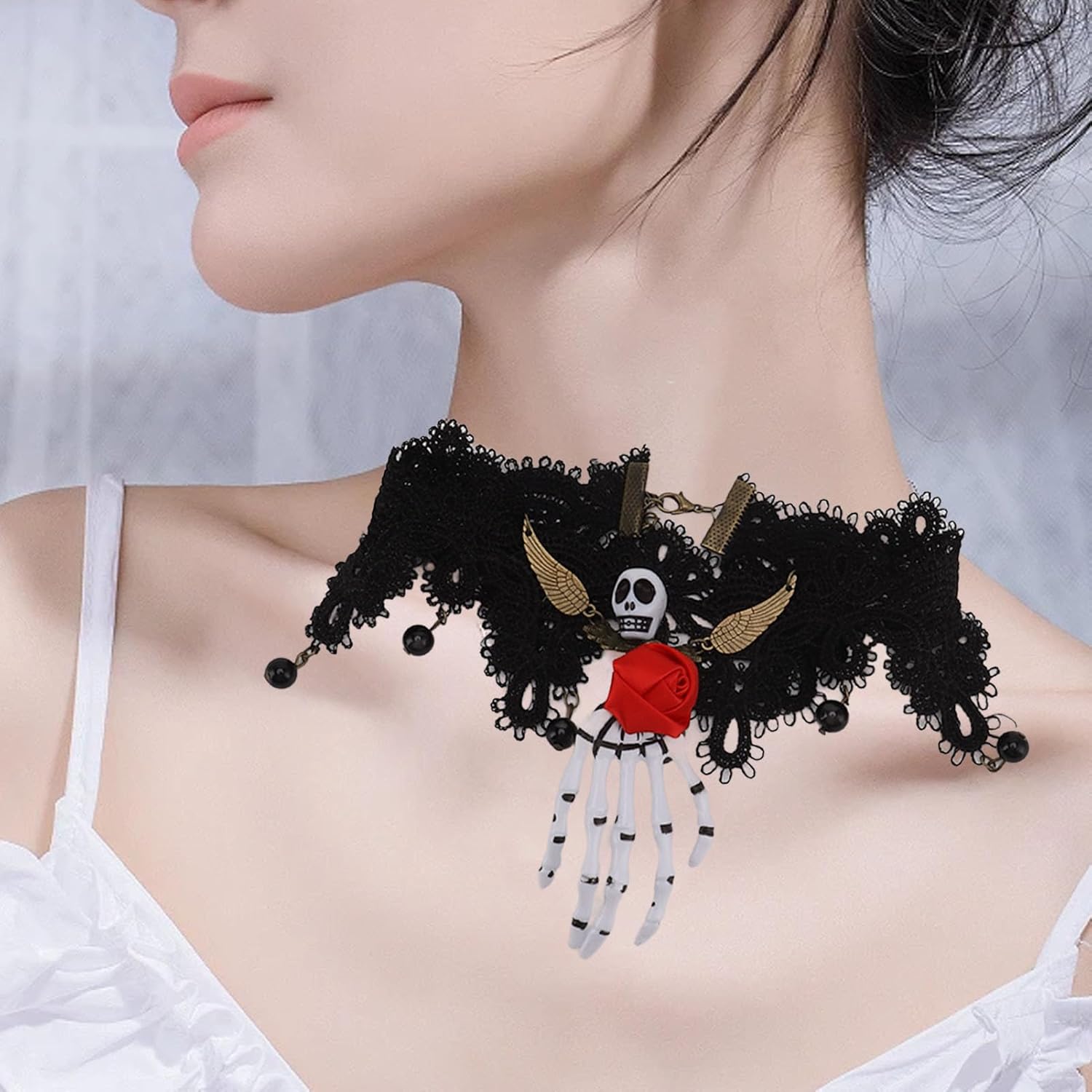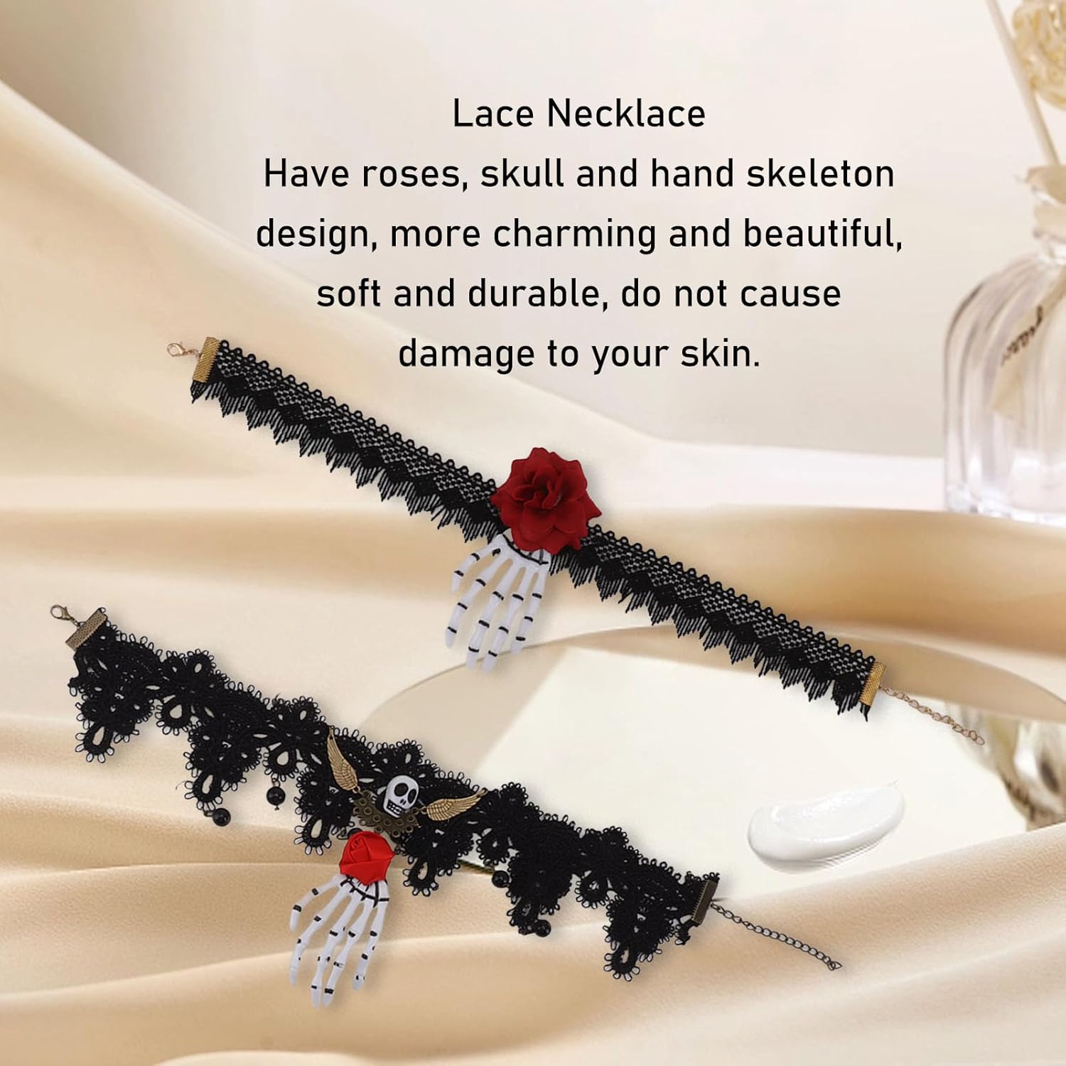 Comodo da indossare: la collana ha una lunga circonferenza con la catena di estensione e la fibbia, comodo da indossare for diverse dimensioni del collo. Materiale morbido: la collana in pizzo è realizzata in materiale morbido e sicuro, che non danneggia la pelle, comoda e delicata sulla pelle. Design: il girocollo ha uno stile retrò, con rose, teschio e scheletro della mano, può rendere la decorazione del collo più bella. Ampiamente utilizzato: la catena del collo è adatta for matrimoni, cene, Comoda da indossare: la collana ha una lunga circonferenza con catena di estensione e fibbia, comoda da indossare for diverse misure del collo. Materiale morbido: la collana in pizzo è realizzata in materiale morbido e sicuro, che non danneggia la pelle, è comoda e delicata sulla pelle. Design: il girocollo ha uno stile retrò, con rose, teschi e scheletri a mano, che possono rendere la decorazione del collo più bella. Ampiamente utilizzato: la collana è adatta for matrimoni, cene, appuntamenti, gite, viaggi, feste di Halloween, balli, ecc. Può aggiungere un tocco speciale di festa al tuo costume.