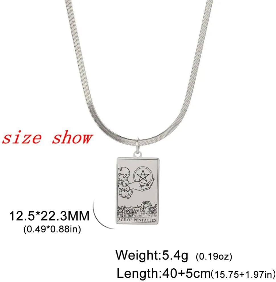 【MATERIALE】 La collana dei tarocchi è realizzata con materiali di alta qualità per garantire una lunga durata, che non è facile da sbiadire, ossidarsi, macchiare o annerire. Puoi indossare questa collana di tarocchi per mostrare il tuo stile affascinante senza alcuna preoccupazione. Collana classica di tarocchi: le misteriose carte dei tarocchi ci forniscono la giusta direzione per il futuro e ci aiutano a scegliere meglio il passo successivo. Ogni collana di tarocchi ha significati diversi. Ispirandoci alla divinazione dei tarocchi, abbiamo creato questa collana alla moda con i tarocchi. Indossarlo è una buona scelta per te. Design unico: questa collana è ispirata alle carte dei tarocchi, semplice e alla moda. Sono disponibili diversi stili. Può soddisfare le tue diverse esigenze quotidiane e vale la pena acquistarlo. Dimensioni: dimensioni del pendente: 12,5 x 22,3 mm, lunghezza della catena: 40+5 cm, peso: 5,4 g. REGALO PERFETTO: i gioielli sono sempre il regalo perfetto. È un regalo premuroso per mamma, moglie, fidanzata, migliore amica. Adatto come regali di San Valentino, regali per la festa della mamma, regali di Natale, regali di compleanno, regali di anniversario, regali di nozze, regali per feste, regali di laurea, regali di ritorno a scuola.
