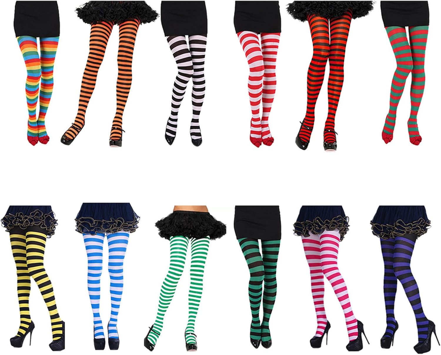 ♥ poliestere, traspirante e leggero, morbido e comodo da indossare, non scivola e non si rompe facilmente. ♥ Accessorio per Halloween/Natale da indossare come parte del costume generale o come capo stratificato per il calore. ♥ Divertenti e collant sono disponibili in una varietà di motivi a righe orizzontali e sono un ottimo modo per aggiungere un po' a qualsiasi outfit. ♥ la tua strega, per, clown, saloon girl, burlesque, pin-up e altre idee costumi. Lavora con una varietà di costumi. ♥ Ottimo pezzo da indossare sotto gonne, abiti, pantaloncini e costumi. Adatto per vacanze, feste di Natale, Halloween, cosplay e così via.