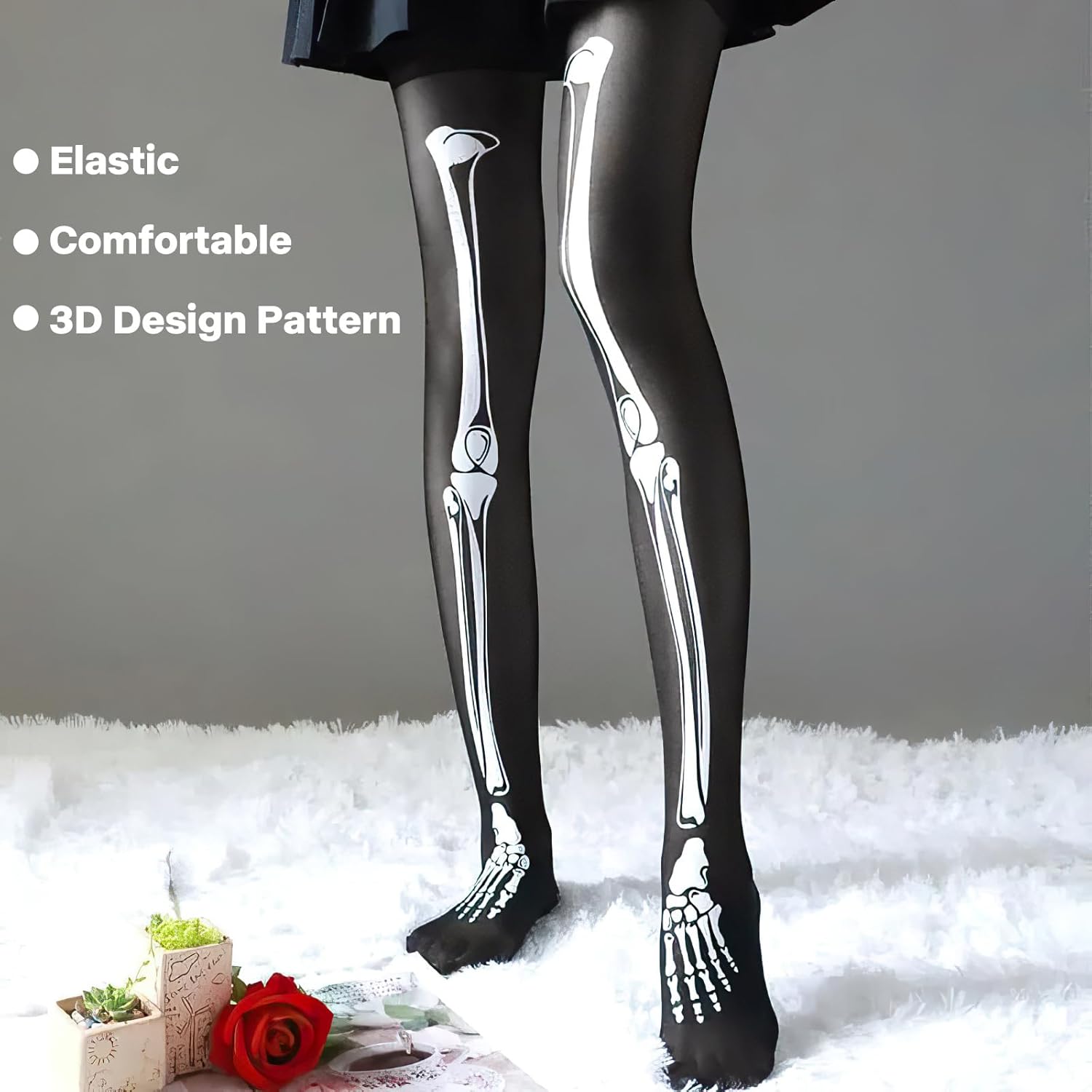 【Set look scheletro】 Questo set di Halloween contiene 1 paio di calzini con motivo osseo e 1 paio di guanti scheletro: un design coordinato per un costume terrificante e accattivante, perfetto per il tuo outfit. 【Stampa ossea realistica per un'atmosfera di Halloween】 Il design in bianco e nero a contrasto con motivi ossei dettagliati crea un forte impatto visivo e crea immediatamente l'atmosfera ideale di Halloween. 【Comodi e facili da indossare】 Calzini e guanti sono realizzati in materiale morbido ed elastico, che si adatta alla forma delle mani e dei piedi per un comfort ottimale senza disagio. 【Versatile e facile da abbinare】 Ottimo per Halloween, feste in costume, mascherate, servizi fotografici o spettacoli. Si abbina bene con abiti, pantaloni o altri abiti, mettendo in risalto il tuo outfit. 【Adatto per adolescenti e adulti】 Il set è unisex e le sue dimensioni espandibili si adattano a diverse forme del corpo: perfetto come regalo o per vestirsi con la famiglia o gli amici.