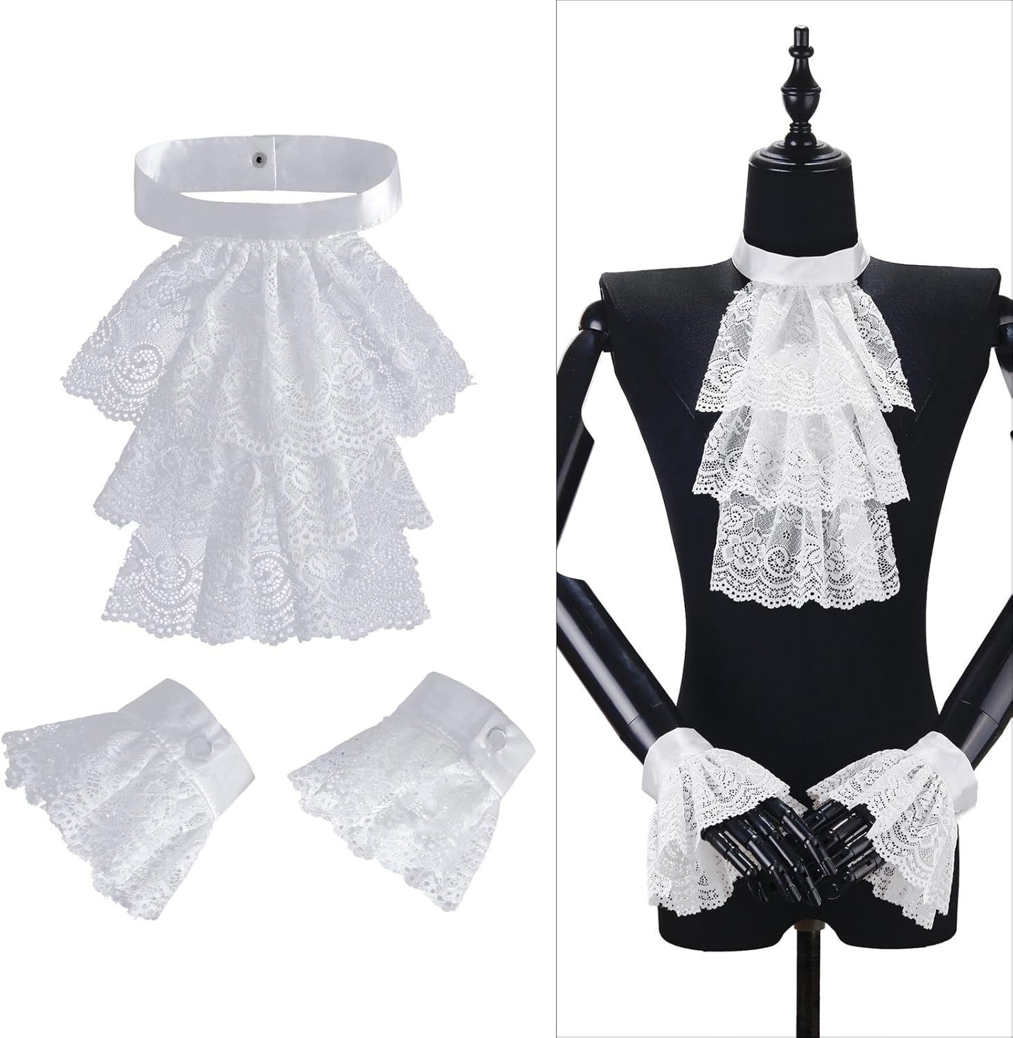 Collare decorativo multiuso in pizzo per esibizioni teatrali cosplay collare per pirata e costumi Caratteristiche: Pizzo elegante, colletto squisito, che migliora i sensi generali della moda. Tessuto morbido e confortevole, ottima traspirabilità e lavorazione meticolosa. Durata e lunga durata, facile da collocare con più stili, diventa facilmente al centro dell'attenzione. Adatto per le donne che perseguono la moda, soprattutto quelle che amano le abilità sociali. Adatto per riunioni di lavoro, cene e appuntamenti romantici. Specifiche tecniche: Colore: tre scelte. Circonferenza del collare: 38 cm. Lunghezza del fiore: 28 cm. Circonferenza manica: 20 cm. Lunghezza manica: 10 cm. Componente: pizzo. La confezione include: 1 set di collari in pizzo Nota: 1. Si prega di considerare un margine di errore di 1-2 cm dovuto alla misurazione manuale. 2. A causa delle differenze tra i diversi monitor, l'immagine potrebbe non riflettere il colore reale