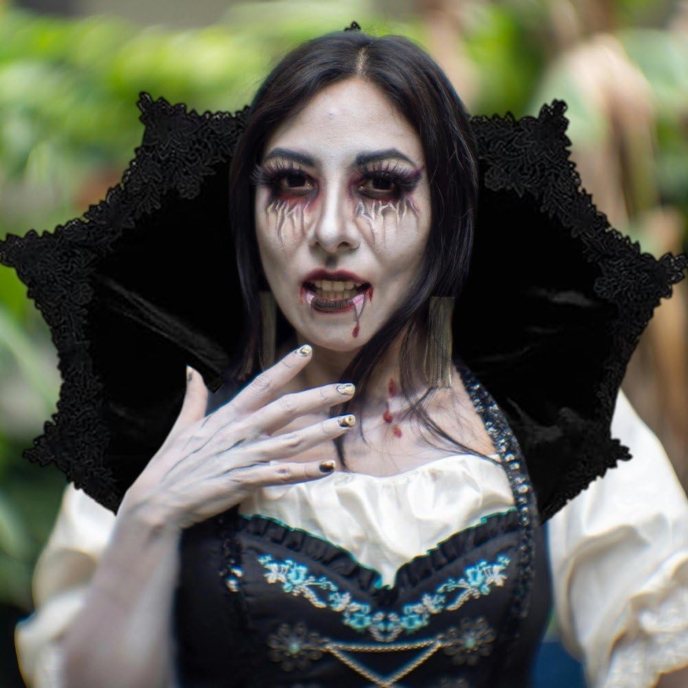 Completo di lacci in raso facile regolazione e una vestibilità comoda e sicura. Il colletto alla francese è dotato di stecche per mantenerne forma, aggiungendo un tocco di eleganza e mistero outfit. Il colletto rialzato in stile barocco è adatto per Halloween, feste attorno falò, cosplay di vampiri, Pasqua, feste in maschera, travestimenti eleganti, Martedì grasso, carnevale, feste steampunk, feste in maschera, . Il colletto rialzato regina offre un mix di eleganza e rigidità, garantendo che il colletto mantenga sua forma e conferendogli contempo un senso di delicato fascino. Realizzato in velluto, morbido, leggero e resistente, comodo indossare.