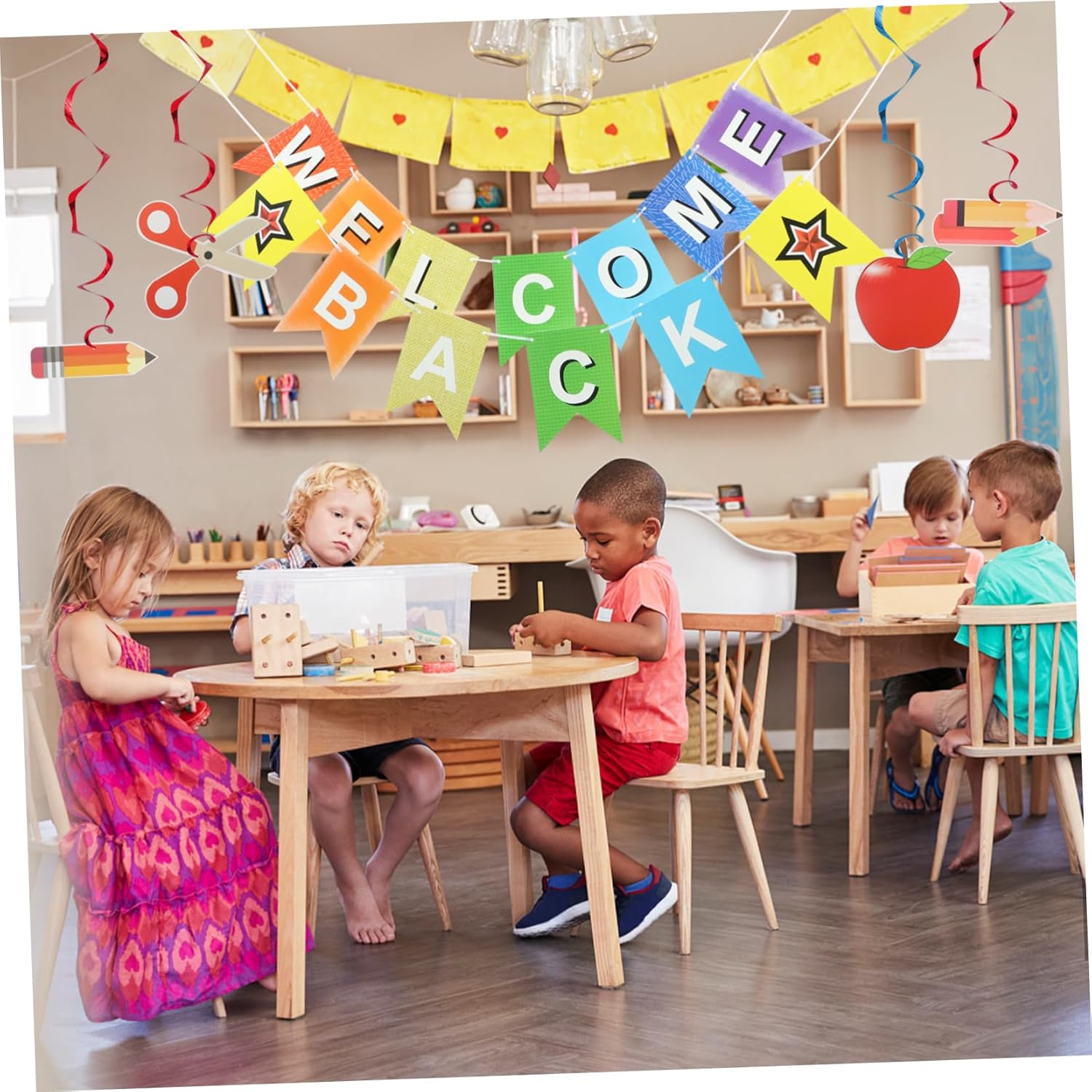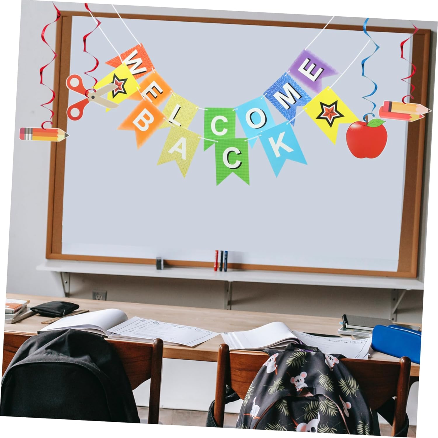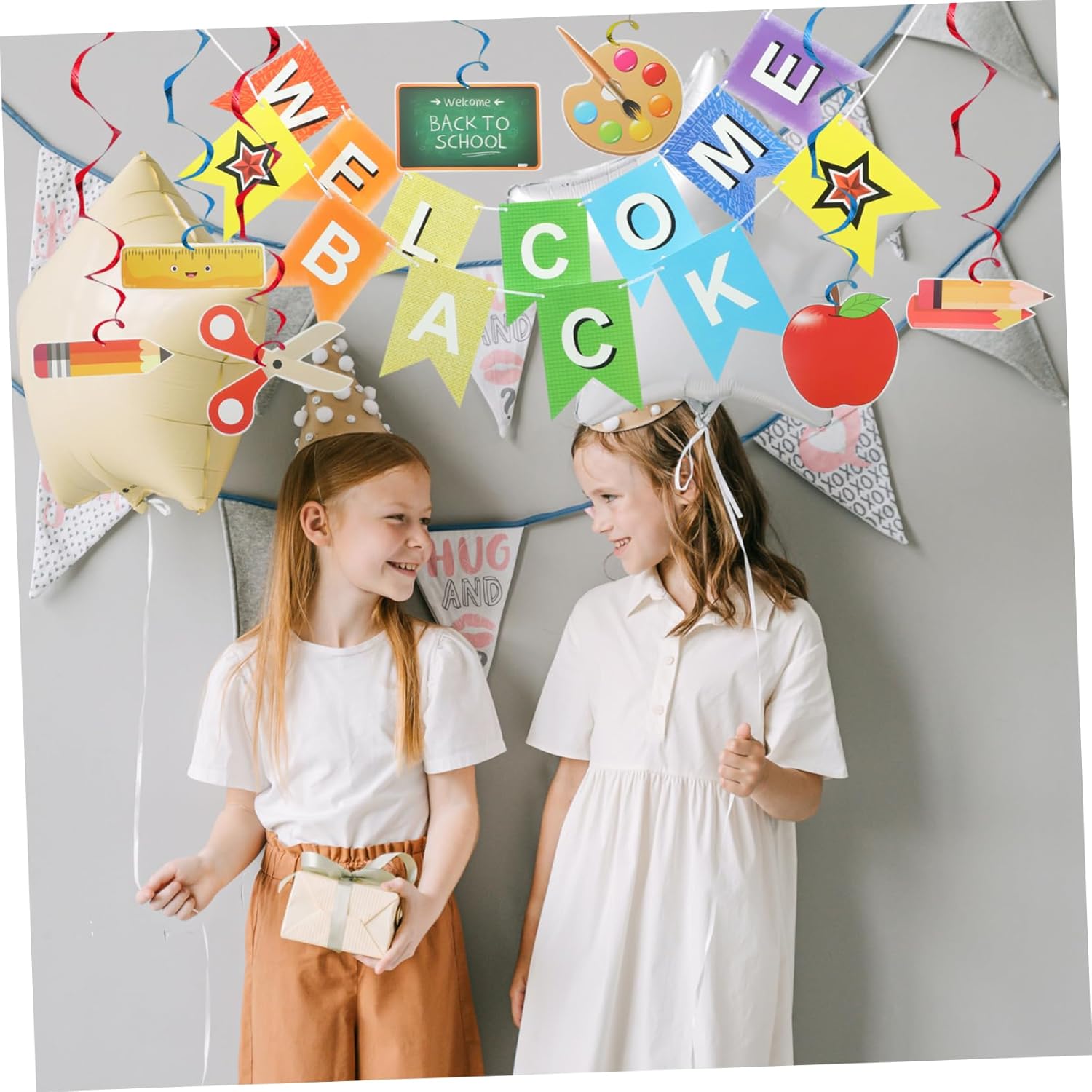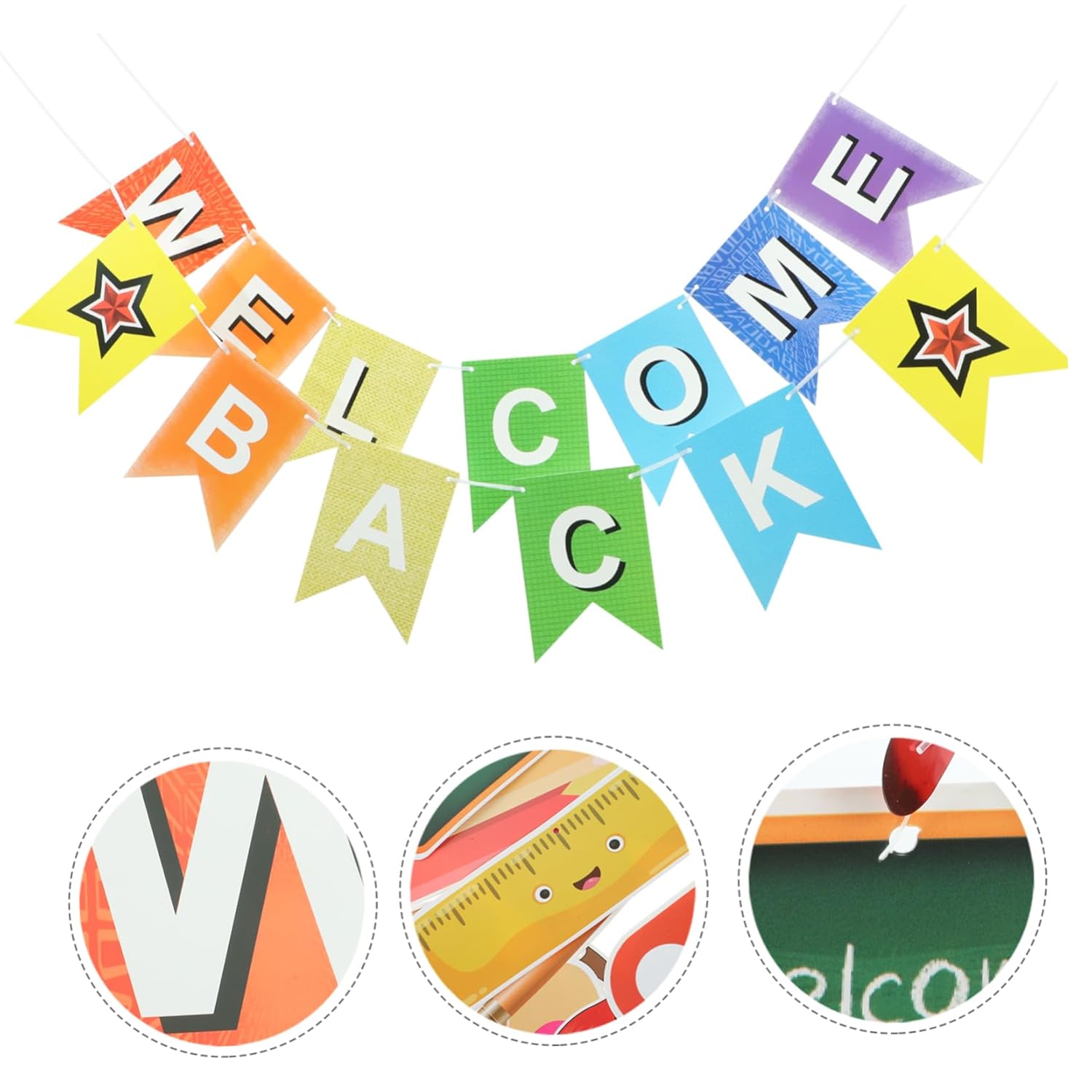 Striscione di ritorno a scuola: gli striscioni di ritorno a scuola e le decorazioni a spirale sono decorazioni per le feste dei bambini durante la giornata scolastica. Vengono utilizzati per scattare foto, accogliere gli studenti in classe e appendere spirali per chi torna da scuola. Bandierine di benvenuto: striscione di benvenuto con scritta "bentornato", fantastica decorazione per la stagione scolastica, striscione di benvenuto. Decorazioni da appendere per il rientro a scuola: un accessorio per decorare il primo giorno di scuola, funge anche da sfondo fotografico per scattare foto e come regalo per le feste. Bandierine di ritorno a scuola: striscione di bentornato con un design creativo e semplice, ha effetti decorativi e si abbina bene con altre decorazioni per feste di ritorno a scuola, striscioni per feste. Ornamento a spirale per il ritorno a scuola: banner di bentornato con motivi e lettere unici, questo banner molto e squisito, layout della scena della festa.