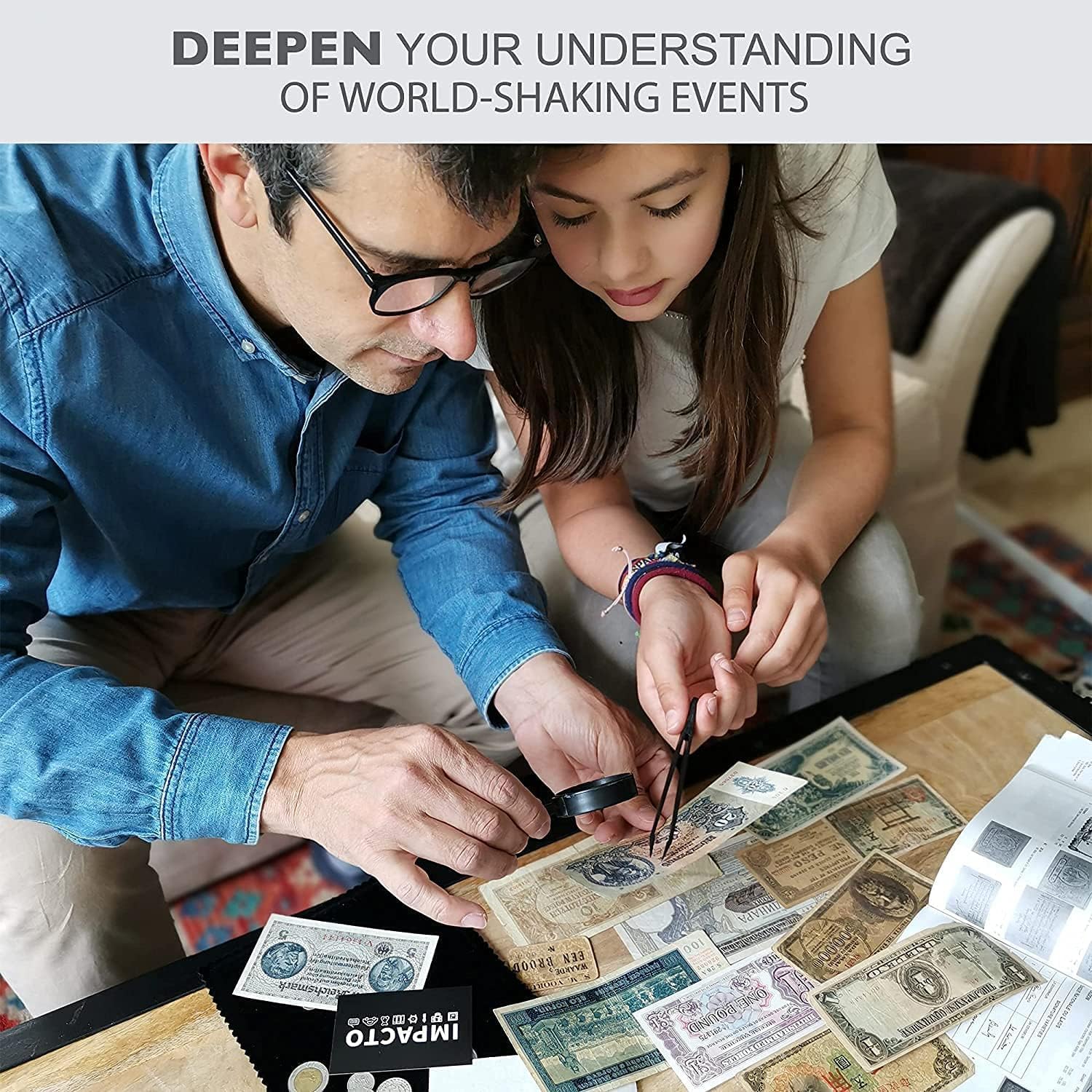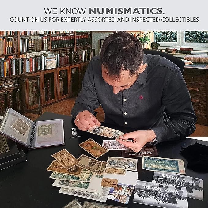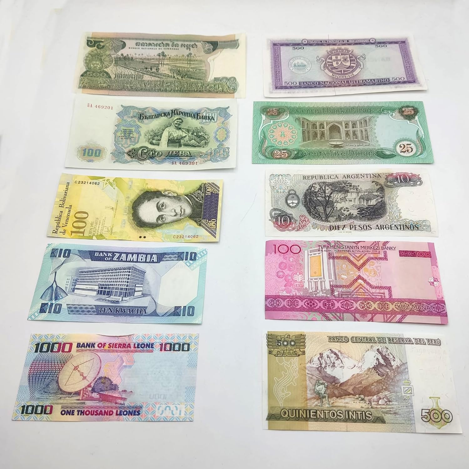 BANCONOTE DA COLLEZIONE ORIGINALI - Selezione esclusiva di 10 banconote autentiche, accuratamente selezionate dai nostri esperti numismatici per la loro bellezza e il design esotico. Ogni banconota è unica, senza ripetizioni e colpisce per la varietà di colori, dimensioni e tagli. Non essendo più in circolazione sono perfetti oggetti da collezione. BANCONOTE CON STORIA – Ogni banconota è un'autentica testimonianza della cultura e della storia del suo Paese d'origine. Sono presentati in una custodia protettiva in plastica, che ne garantisce la conservazione a lungo termine per collezionisti e appassionati di numismatica. BANCONOTE DA CIRCOLAZIONE – Queste banconote venivano utilizzate come moneta di corso ufficiale nei rispettivi paesi. La maggior parte sono in ottime condizioni, il che li rende particolarmente preziosi per i collezionisti. CERTIFICATO DI AUTENTICITÀ - Questa collezione include un certificato di autenticità che garantisce che si tratta di banconote originali e autentiche. Queste banconote tematiche sono state attentamente esaminate e selezionate da esperti numismatici esperti. REGALO PERFETTO - Questa collezione di banconote autentiche è un regalo ideale per collezionisti, appassionati di storia o per chi è nuovo al mondo della numismatica: non è mai troppo tardi per iniziare! Le banconote di diversi paesi offrono affascinanti spunti sulla storia, la cultura, le tradizioni, la flora, la fauna, l'architettura, i simboli, la religione e le personalità importanti di ogni nazione. BANCONOTE DEMONETIZZATE – Queste banconote sono state ritirate dalla circolazione e non hanno più corso legale. Il loro valore risiede nel loro significato storico e numismatico, motivo per cui sono particolarmente apprezzati dai collezionisti e dagli amanti della storia.