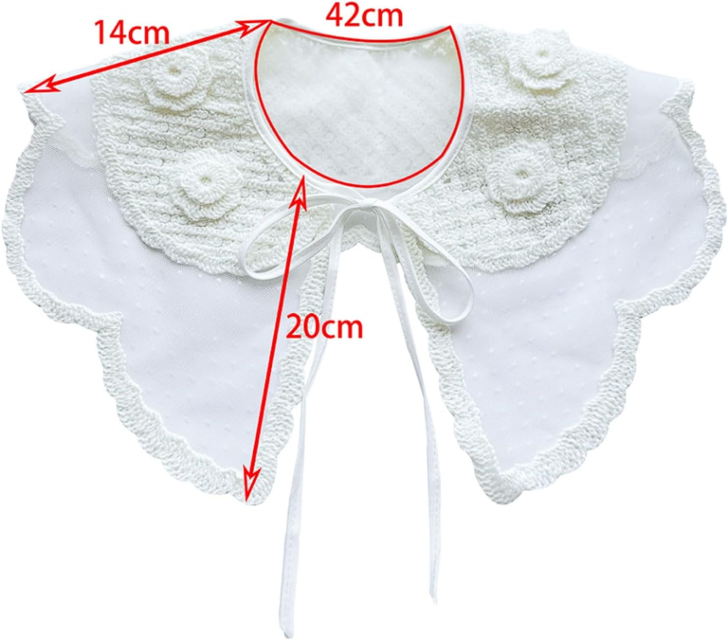Dettagli: Materiale: 100% cotone (lavabile in lavatrice) Dimensioni: circonferenza del collo 42 cm Stile: colletto finto ricamato a doppio strato Colore: Bianco brillante Ideale per: Estetica vintage e cottagecore Dark Academia o Bohemian Daily Wear Matrimoni, foto o feste del tè Stratificazione sotto cappotti o cardigan Istruzioni for la cura: Lavare in lavatrice a freddo con ciclo delicato Stendere ad asciugare for preservare il ricamo Se necessario, stirare a fuoco basso