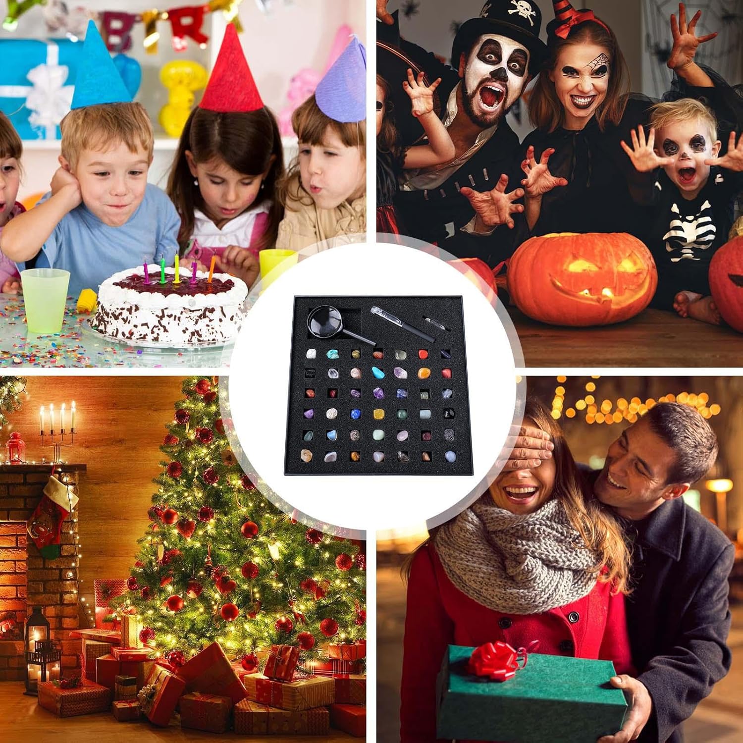 Beautiful Crystal: La nostra collezione rock per ha pietre trasparenti progettate per durare. Con elevata trasparenza e lucentezza, queste pietre sono visivamente sorprendenti. Avrà positivo: stimola la chiarezza mentale e l'equilibrio emotivo armonizzando pensieri e sentimenti. Scopri il potere di queste pietre protettive. Gioca facilmente: La nostra collezione rock include borse di flanella per memorizzare facilmente pietre, squisita scatola di imballaggio e istruzioni che descrivono in dettaglio il nome, il colore, le proprietà e gli usi di ogni pietra. Usi multipli: La nostra collezione rock per li ispira e migliora lo sviluppo cognitivo di tuo figlio promuovendo il benessere mentale attraverso pratiche spirituali. Regalo di gioco: fai del tuo bambino conoscere il tuo amore con il kit Rock and Mineral, un regalo fantastico per gli adolescenti a Natale, Ringraziamento, festa per o grano