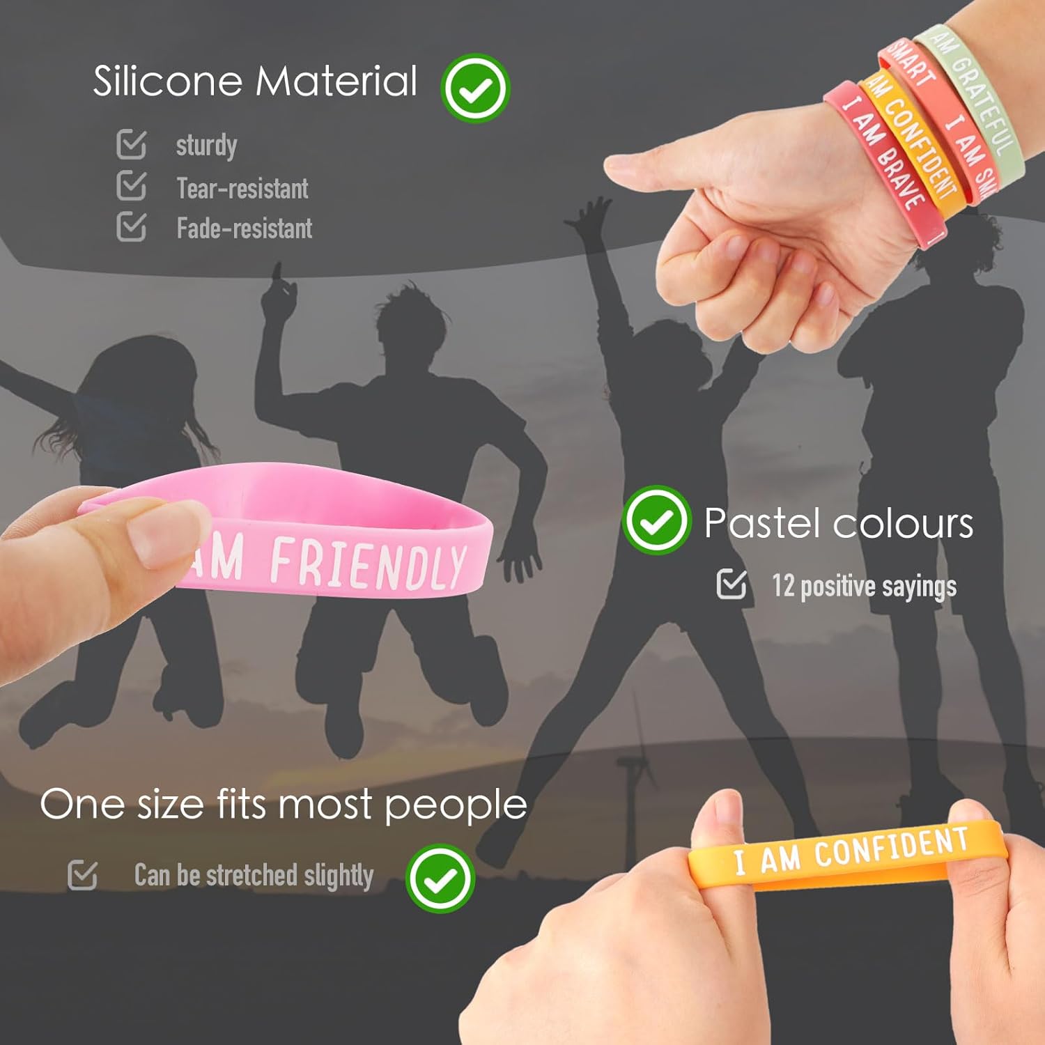 COLOFALLA Confezione da 12 Braccialetti Motivazionali Braccialetti Motivazionali Inglesi con Proverbi Ispiratori Braccialetti in Silicone Regali di Incoraggiamento Borse da Festa Accessori per Adolescenti Bambini Studenti Studenti