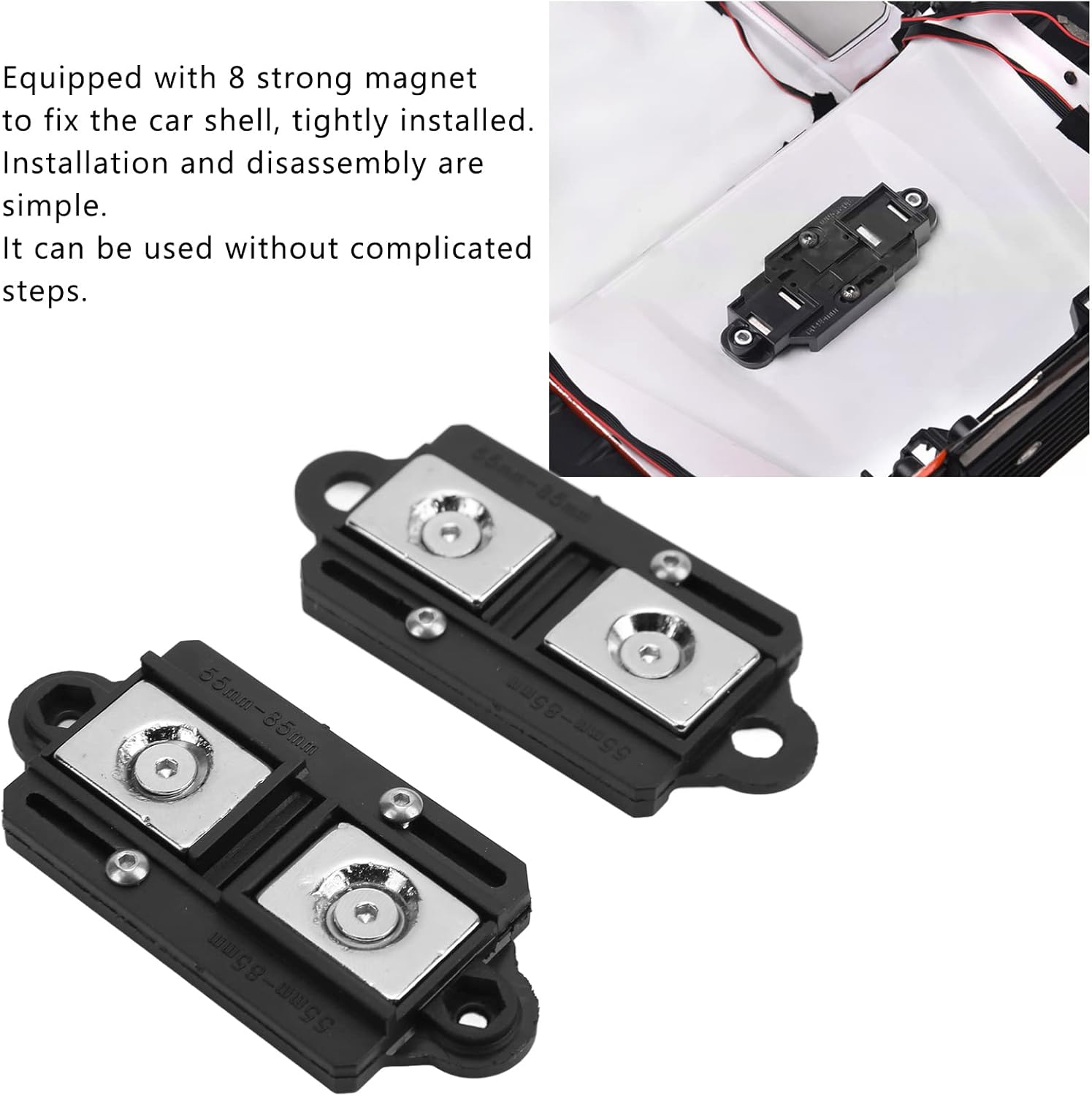 **Applicabilità Estesa**: La colonna di guscio magnetica per auto RC può essere installata su oltre il 90% delle colonne di guscio presenti sul mercato. È adatta sia per le auto RC di 1/8 che per quelle di 1/10, compresi quelli dei marchi popolari. Questo significa che la maggior parte degli appassionati di auto RC può trovare la corrispondenza perfetta per le proprie veicoli **Materiale Plastico di Qualità**: Il supporto della colonna di guscio di auto magnetica è realizzato in materiale plastico di alta qualità. Questo materiale affidabile assicura la durata del prodotto e svolge un ruolo fondamentale nell'installazione del guscio del corpo, resiste bene all'uso quotidiano e mantiene costantemente le sue prestazioni nel tempo **Soluzione Perfetta per l'Automodello**: La colonna magnetica sul corpo dell'auto offre una soluzione ottimale per il vostro automodello. Si può installare direttamente sul guscio dell'auto, semplificando notevolmente il processo di installazione e risparmiando ai utenti un sacco di tempo e sforzo **Aggiornamento delle Prestazioni**: Il set di colonne con shell dell'auto viene fornito con un insieme completo di accessori. Questi accessori rendono l'installazione del guscio di auto più sicura e stabile, permettendo di aggiornare la vostra auto tramite controllo remoto e migliorare in modo significativo le prestazioni generali dell'auto