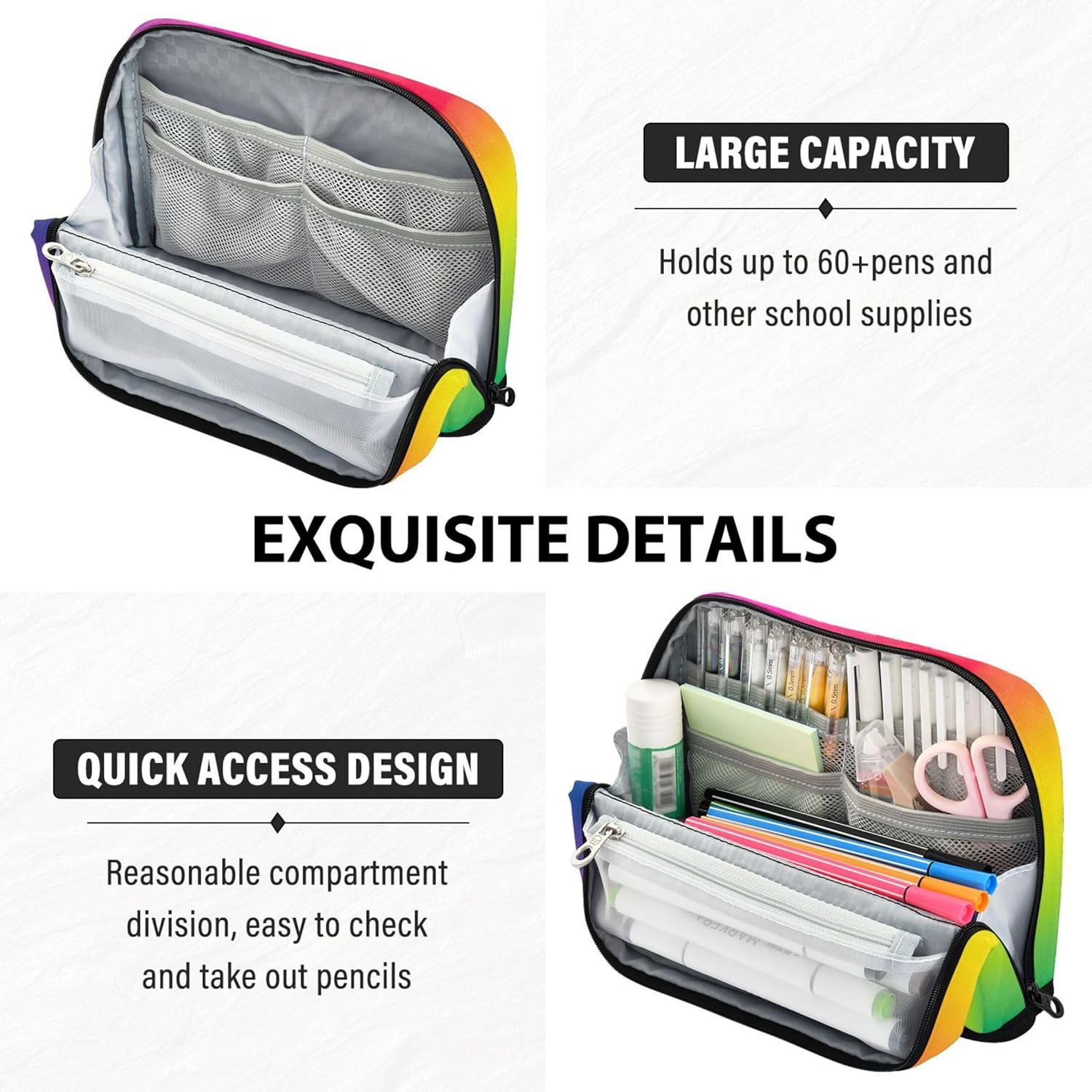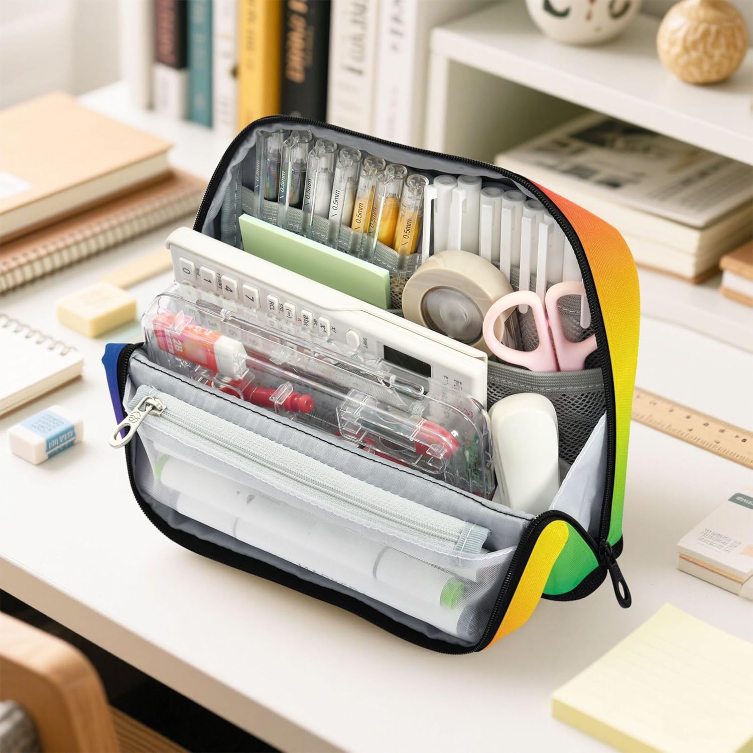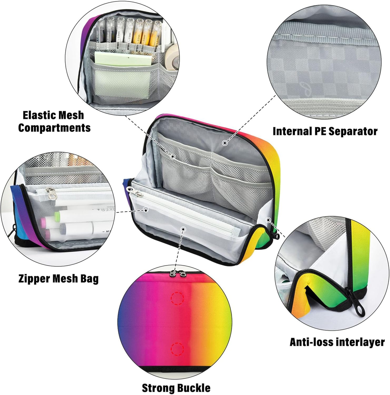 Struttura magnetica per una maggiore stabilità: grazie al suo esclusivo design pieghevole con bottoni a pressione sicuri, il astuccio per matite è alto sulla scrivania e mantiene tutto ben visibile e accessibile Qualità che puoi sentire: il nylon resistente conferisce agli astucci kawaii una struttura leggera ma resistente, mantenendo il contenuto al sicuro rendendo la pulizia semplice e senza problemi Interni multiscomparti: con una spaziosa tasca principale, una tasca in rete con cerniera e una tasca extra, le borse con cerniera per la scuola mantengono penne, appunti e strumenti ordinatamente ordinati e a portata di mano Il tuo compagno multifunzionale: che si tratti di uno zaino, valigia o cassetto della scrivania, questo grazioso astuccio offre spazio intelligente per attrezzi, spazzole, caricabatterie e molto altro ancora Elegante e personalizzato: l'astuccio scolastico si distingue per stampe divertenti e caratteristiche personalizzabili, che lo rendono ideale per regali premurosi in ogni occasione