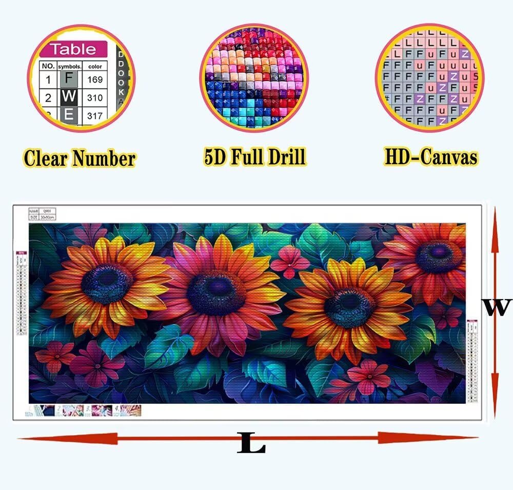 Colore Diamond Painting Kit Completo, Girasole Diamond Painting Bambina 40x80cm DIY Full Drill Crystal Art , 5D Bambini Per Pittura Diamante Adulti Principianti Per Pittura Diamante Wall Decor A-U252