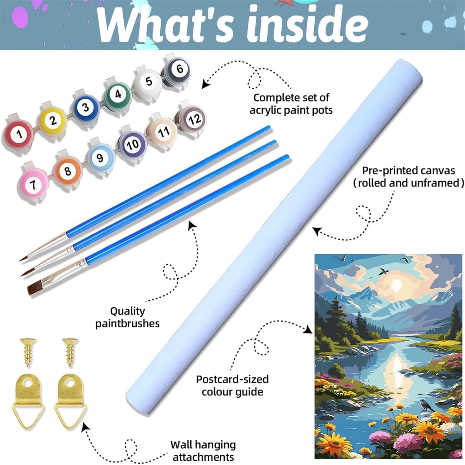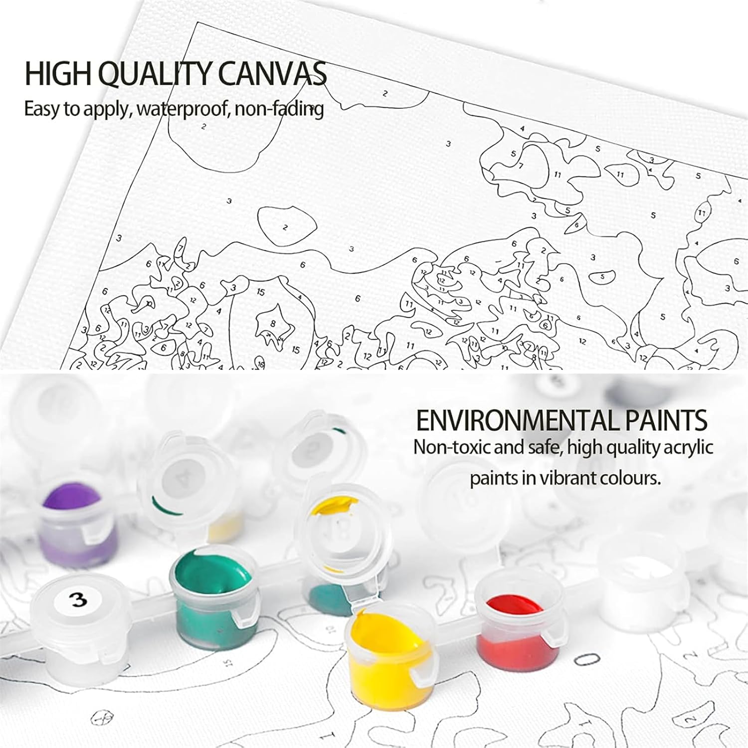 【DIPINGERE CON I NUMERI PER ADULTI PRINCIPIANTI】: Paint by numbers fai da te è molto adatto per i principianti.Paint by numbers per adulti non richiede alcuna base di pittura, e si può iniziare a dipingere le vostre opere d'arte dopo l'apertura del pacchetto. che le attività creative come colorare e dipingere può portare ad una diminuzione dei livelli di ansia, Molto semplice e interessante, paint by number è un grande hobby 【MATERIALI DI QUALITÀ SUPERIORE】: I colori sono confezionati singolarmente per coprire bene le linee e i numeri. è possibile applicare direttamente il colore; La tela ad alta densità è resistente e facile da applicare il colore, e i numeri di facile lettura aiutano a identificare il colore corretto; Ci sono 3 diverse dimensioni di pennelli inclusi nel set, che sono adatti per aree grandi o piccole, e si può facilmente disegnare linee ultra-fini e dettagli 【PITTURA ARTIGIANALE PER PRINCIPIANTI E BAMBINI】: Basta abbinare i numeri della vernice e le figure sulla tela per riempire la vernice. Dipingere per numeri di colore, finire uno per uno. La pittura per numeri è adatta a tutti i livelli di abilità, sia che siate adulti, bambini o principianti. Riempire il colore in base ai numeri, non c'è bisogno di alcuna abilità di pittura. 【LISTA DELLA CONFEZIONE】: 1 pezzo di tela testurizzata prestampata, 1 set di colori acrilici, 1 set di pennelli (3 pezzi), 2 ganci, 1* Guida al disegno (grande dimensione con più set di strumenti, più grande è la dimensione, più pigmenti e colori ci sono). 【REGALO DIPINGI CON I NUMERI】: Se avete difficoltà a trovare il regalo giusto, questa è la soluzione ideale. Il kit paint by numbers è una buona scelta come regalo per Natale, Ringraziamento, Capodanno, compleanno o altre occasioni. Inoltre, è adatto a giovani e adulti. Un regalo decorativo perfetto