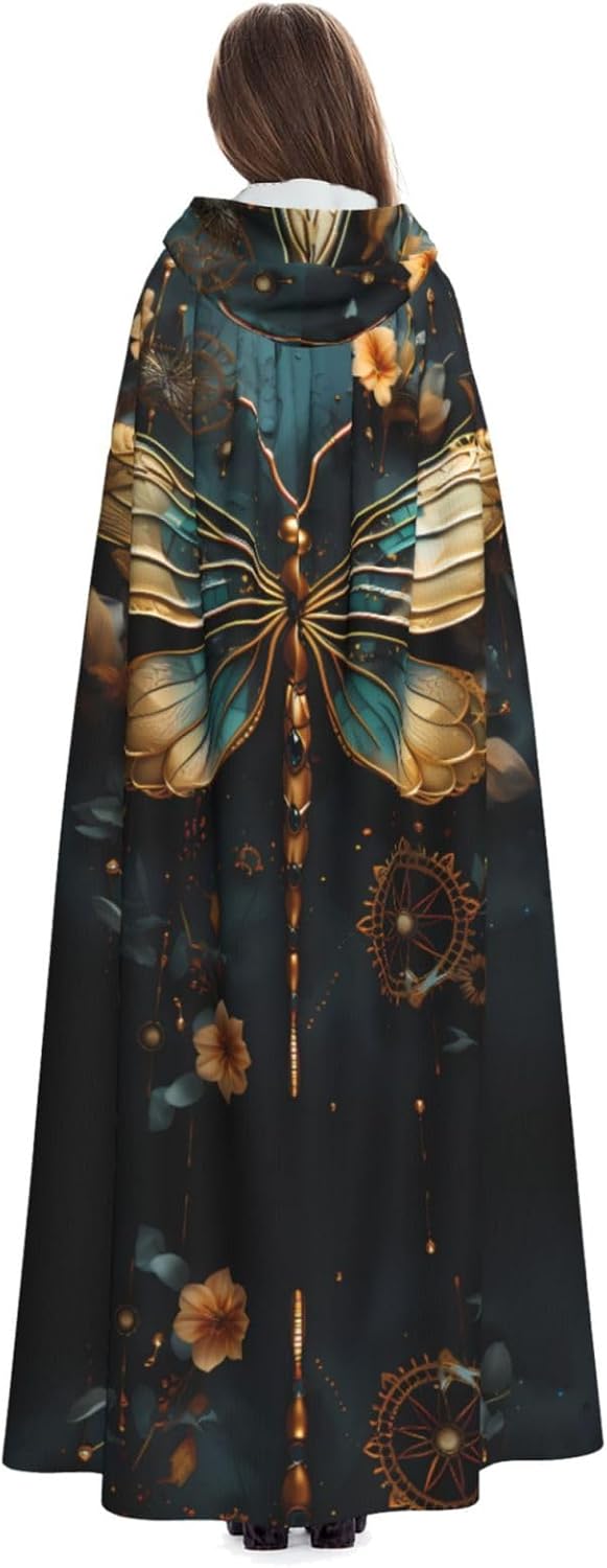 Colore oro delicato libellula fiore mantello con cappuccio, abiti da uomo e donna adulti, costumi cosplay di Natale e Halloween, feste in costume