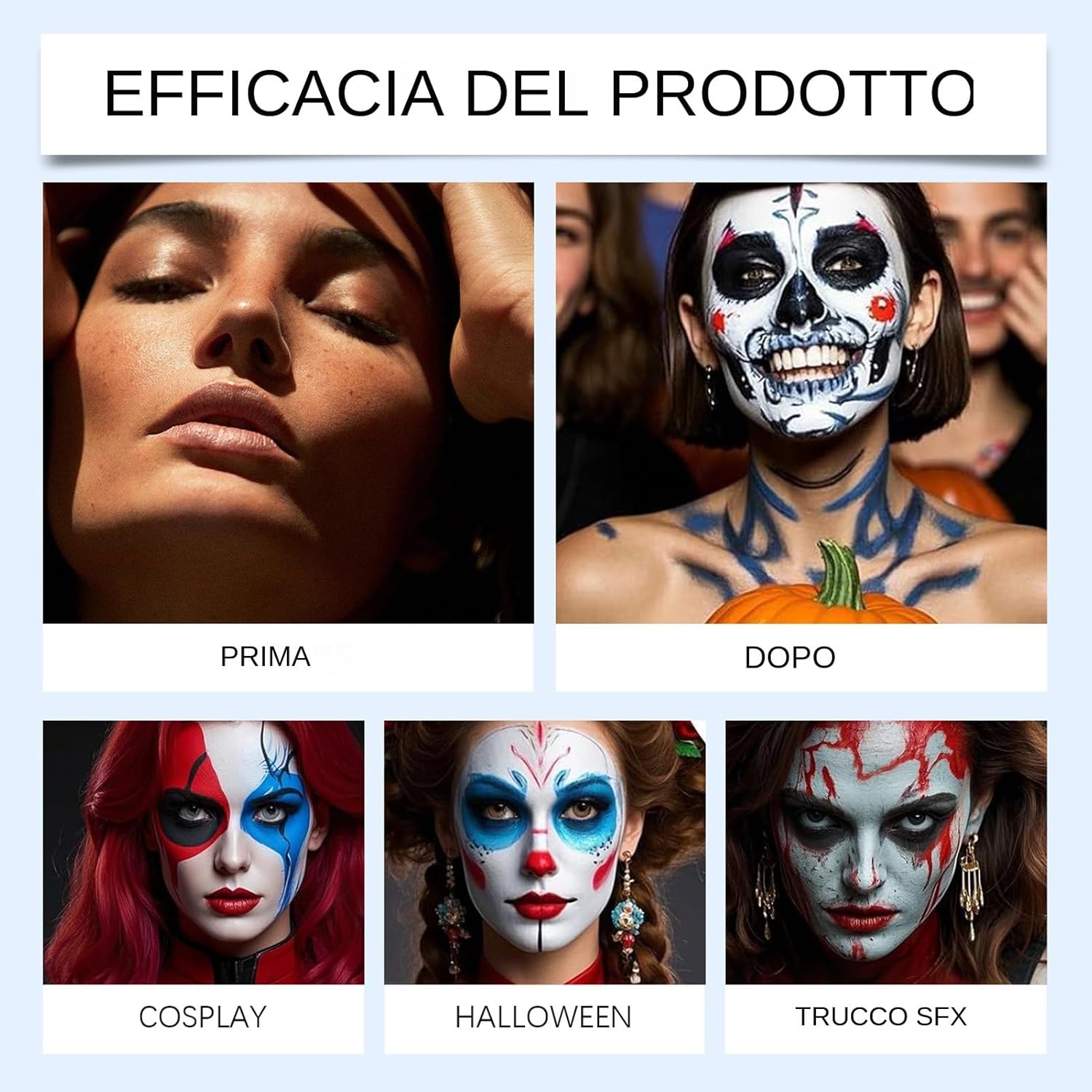 Facile Applicazione: Consistenza cremosa aderisce uniformemente senza sforzo su ogni incarnato. Ideale per principianti e professionisti, si rimuove in pochi secondi senza residui o attrito sulla pelle sensibile. Tonalità Vivaci per Feste: Crea effetti straordinari con questo trucco viso, scelta eccellente per aumentare gioia ed entusiasmo in celebrazioni a tema e raduni creativi Creatività infinita: Scopri più creatività esplorando colori selezionati che si adattano a scenari diversi, realizzando trucchi festivi e disegni artistici unici con facilità per il face painting Facile utilizzo: Ideale per diverse tecniche di trucco, si applica con pennelli, spugnette o dita per soddisfare le esigenze di principianti e utenti esperti con massima flessibilità Vivacità Persistente: Ottenete contorni precisi e motivi intricati con colori ad alta saturazione, assicurando vivacità duratura per ampie decorazioni e opere artistiche dettagliate su viso.