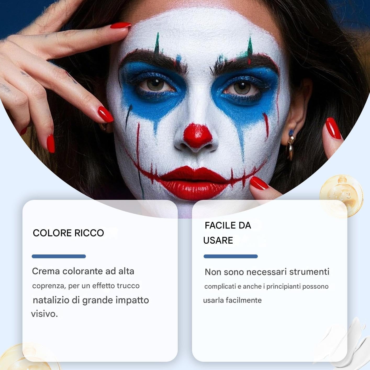 Comfort Prolungato: Texture ultra-leggera garantisce traspirabilità cutanea durante l'applicazione. Non occlude i pori né causa sensazioni di tensione, mantenendo intatto il benessere della pelle. Tonalità Vivaci per Feste: Crea effetti straordinari con questo trucco viso, scelta eccellente per aumentare gioia ed entusiasmo in celebrazioni a tema e raduni creativi Creatività infinita: Scopri più creatività esplorando colori selezionati che si adattano a scenari diversi, realizzando trucchi festivi e disegni artistici unici con facilità per il face painting Strumenti pratici: Il kit per trucco viso include pennelli e spugnette come accessori funzionali, ideali per esigenze artistiche diversificate di neofiti ed esperti con facilità Trucco Versatile: Colori resistenti con contorni definiti e disegni intricati, saturazione ricca perfetta per motivi dettagliati e espressioni artistiche ampie. Adatto a decorazioni facciali precise e creative.