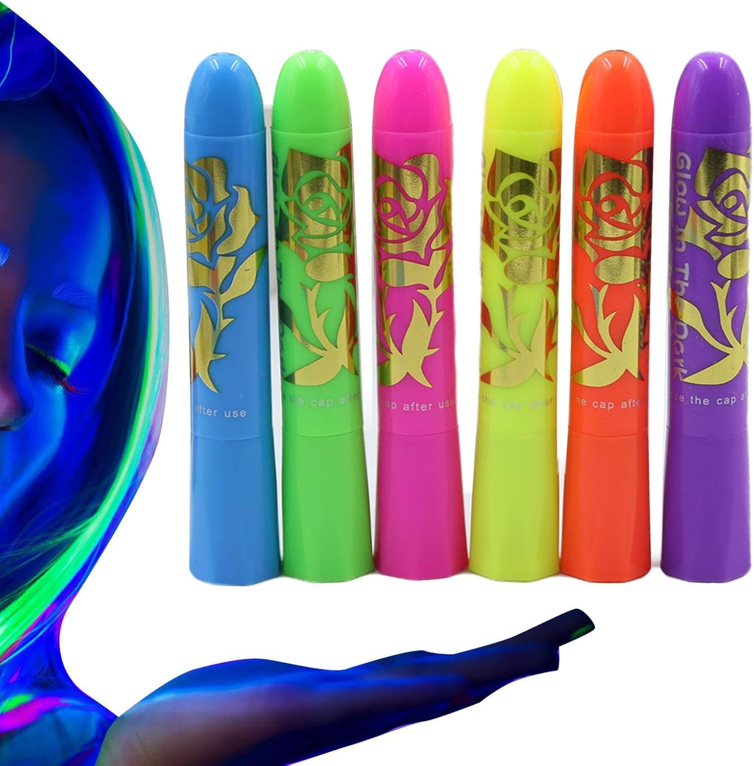 Sicurezza Garantita: Composta da materiale PP durevole, la vernice fosforescente per il corpo contrasta deformazioni offrendo un'esperienza cutanea sicura durante l'uso Applicazione facile: Prodotto con applicatore a torsione per una stesura uniforme della pittura corporea fosforescente e rimozione pratica con salviette struccanti Flessibilità Totale: Ideale per momenti informali e migliora performance sceniche, avventure cosplay, divertimento Halloween e atmosfere festose. Risponde a esigenze di eventi vari Vernice Glow Condivisibile: Include 6 colori radianti luminescenti, pensata per essere condivisa con amici e famiglia, offre varietà sufficiente per creatività quotidiana o festeggiamenti senza limiti, adatta a ogni momento Risalto con Neon: Crea effetti luminosi ipnotici con pittura corpo neon che si sotto luci UV e nere, offrendo un modo espressivo per distinguerti e splendere a concerti, feste o occasioni speciali
