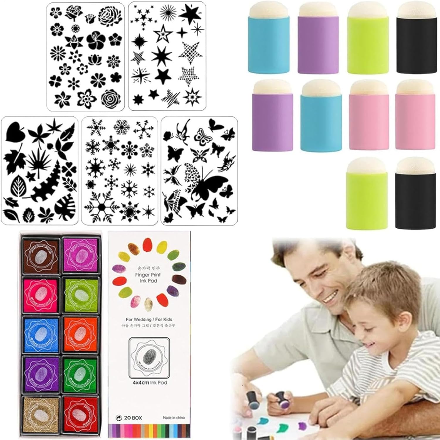 Soddisfa tutte le esigenze: con il nostro set per pittura con le dita in spugna, puoi creare i tuoi album unici utilizzando 20 tamponi di inchiostro colorato, 5 applicatori in spugna e 5 modelli di disegno. Prova la gioia di creare oggetti Riconoscimento dei colori migliorato: il nostro set per dipingere con le dita di spugna un mondo di nuove possibilità per il tuo bambino. Man mano che imparano a riconoscere i colori e a sviluppare combinazioni di colori, il loro pensiero creativo e le capacità di risoluzione dei problemi migliorano, il tutto divertendosi ed espandendo la loro immaginazione Inchiostro a base d'acqua: con il nostro set per pittura con le dita in spugna, dipingere diventa facile. Utilizza inchiostro a base d'acqua e pulisci semplicemente con un po' di acqua e sapone o con un tovagliolo di carta umido; le spugne per disegnare sono facili da pulire, facendoti risparmiare ed energia Sicuro e innocuo: lascia che tuo figlio esplori il suo lato artistico in sicurezza. I materiali di alta qualità e delicati sulla pelle del nostro set per pittura con le dita in spugna assicurano un'esperienza divertente e inodore, sicura e sicura da soddisfare Applicazioni versatili: il set per pittura con le dita in spugna è eccellente per tutti i tipi di feste per bambini, feste a tema e giochi per feste di compleanno. Incoraggia i bambini a esplorare e condividere le loro idee con gli amici, sviluppando abilità sociali divertendosi. Adatto a bambini di tutte le età