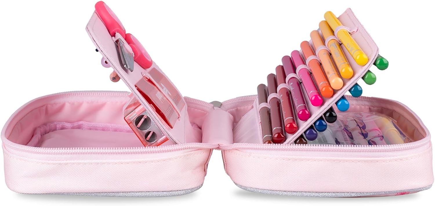 Astuccio compatto e resistente: pratico da portare nello zaino, ideale per l’uso quotidiano a scuola o a casa. Set completo oltre 30 pezzi: include penne, matita, gomma, temperamatite, colla, forbici, righello, 18 pastelli e 18 pennarelli. Organizzazione perfetta: pattina interna con elastici passanti per mantenere la cancelleria ordinata e sempre pronta all’uso. Official Licensee