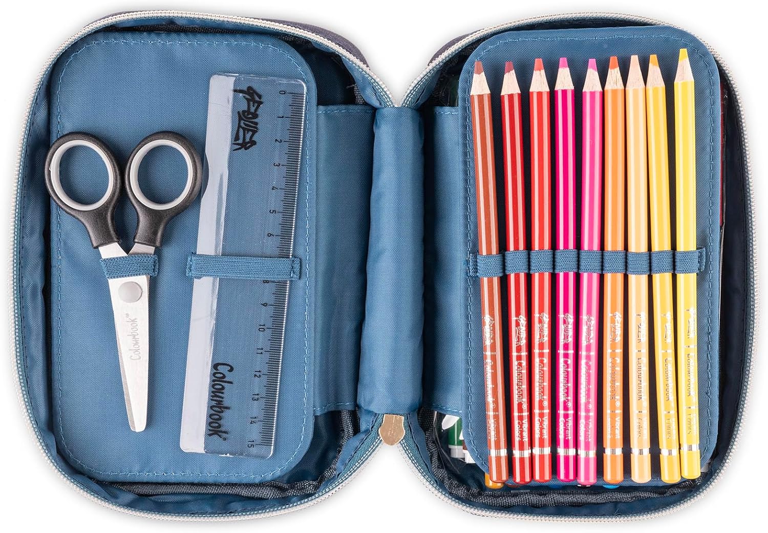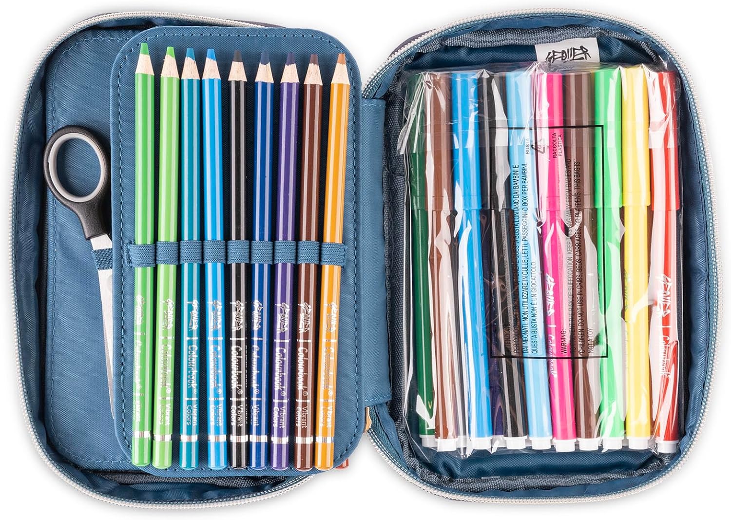 Stile Geolier by Colourbook: design esclusivo ispirato al mondo urban del celebre artista, perfetto per distinguersi a scuola Organizzazione perfetta: pattina interna con elastici passanti per mantenere la cancelleria ordinata e sempre pronta all’uso. Set completo oltre 30 pezzi: include penne, matita, gomma, temperamatite, colla, forbici, righello, 18 pastelli e 18 pennarelli. Astuccio compatto e resistente: pratico da portare nello zaino, ideale per l’uso quotidiano a scuola o a casa. Official Licensee