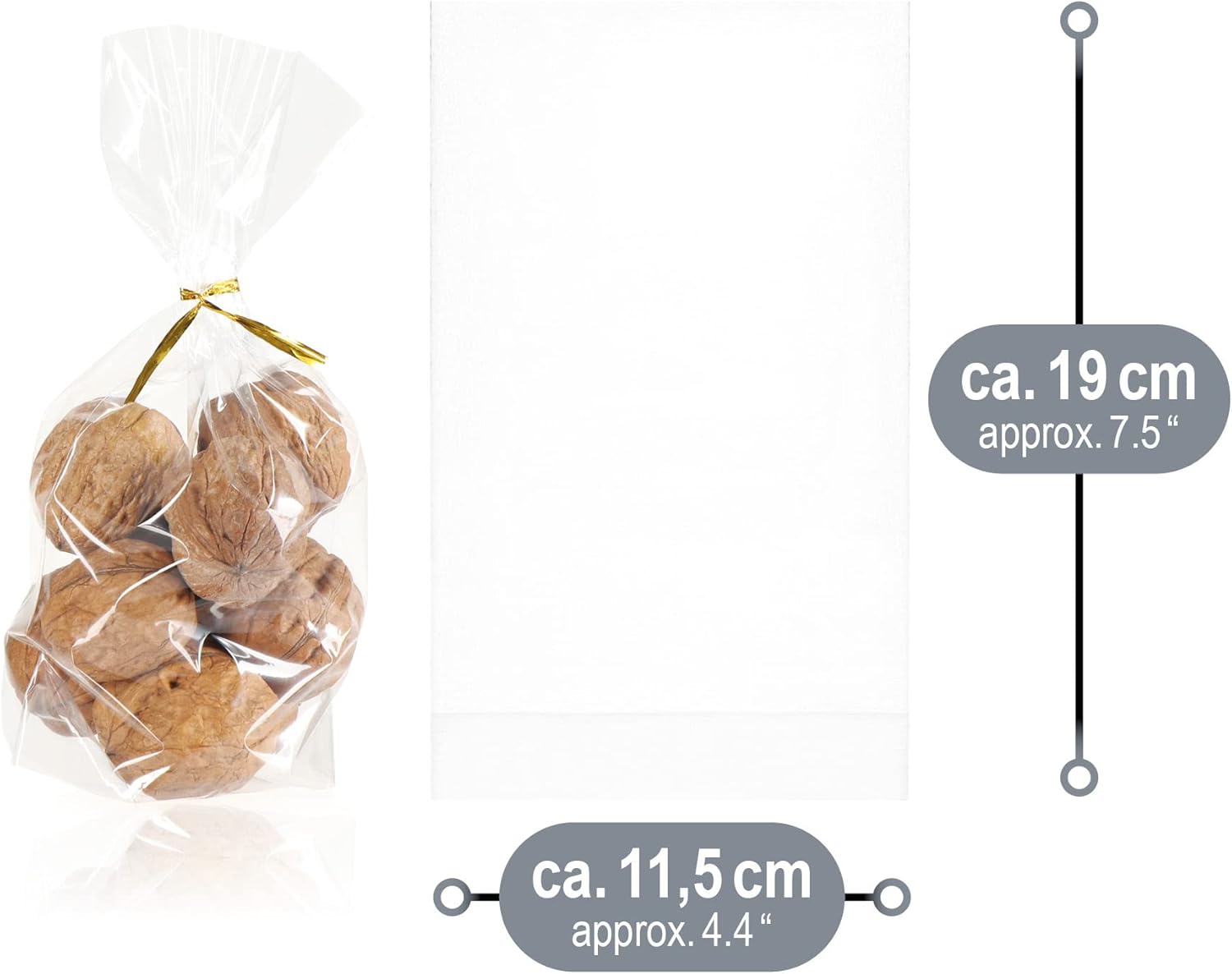BELLISSIMO REGALO: I sacchetti di plastica trasparenti, utilizzati come sacchetti per biscotti, rendono ogni attenzione a Natale, feste aziendali, matrimoni o compleanni un vero e proprio eye-catcher! PIÙ PIACERE: I sacchetti di cellophane trasparente ti permettono di vedere il contenuto - allo stesso tempo tutto rimane ben confezionato e può essere trasportato in sicurezza! MANTIENI FRESCO PIÙ A LUNGO: la borsa a fondo incrociato per alimenti con fascette può essere chiusa ordinatamente in modo che il cibo rimanga fresco e protetto più a lungo! COSÌ VERSATILE: Ideale come sacchetto regalo per biscotti, caramelle, cioccolatini, caramelle, fiori secchi, semi, giocattoli, candele e oggetti artigianali come fantastici regalini per le feste! AMBITO DI CONSEGNA: 100 sacchetti di cellophane // Dimensioni: ca. 11,5 x 19 cm (larghezza x altezza) // Volume: ca. 400 ml // Materiale: polipropilene (CPP) // Colore: trasparente, oro // Altro: adatto agli alimenti