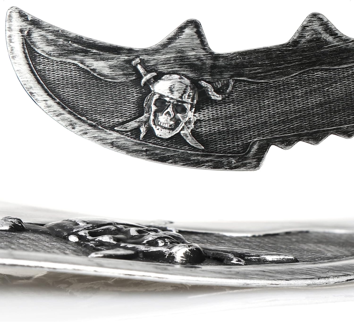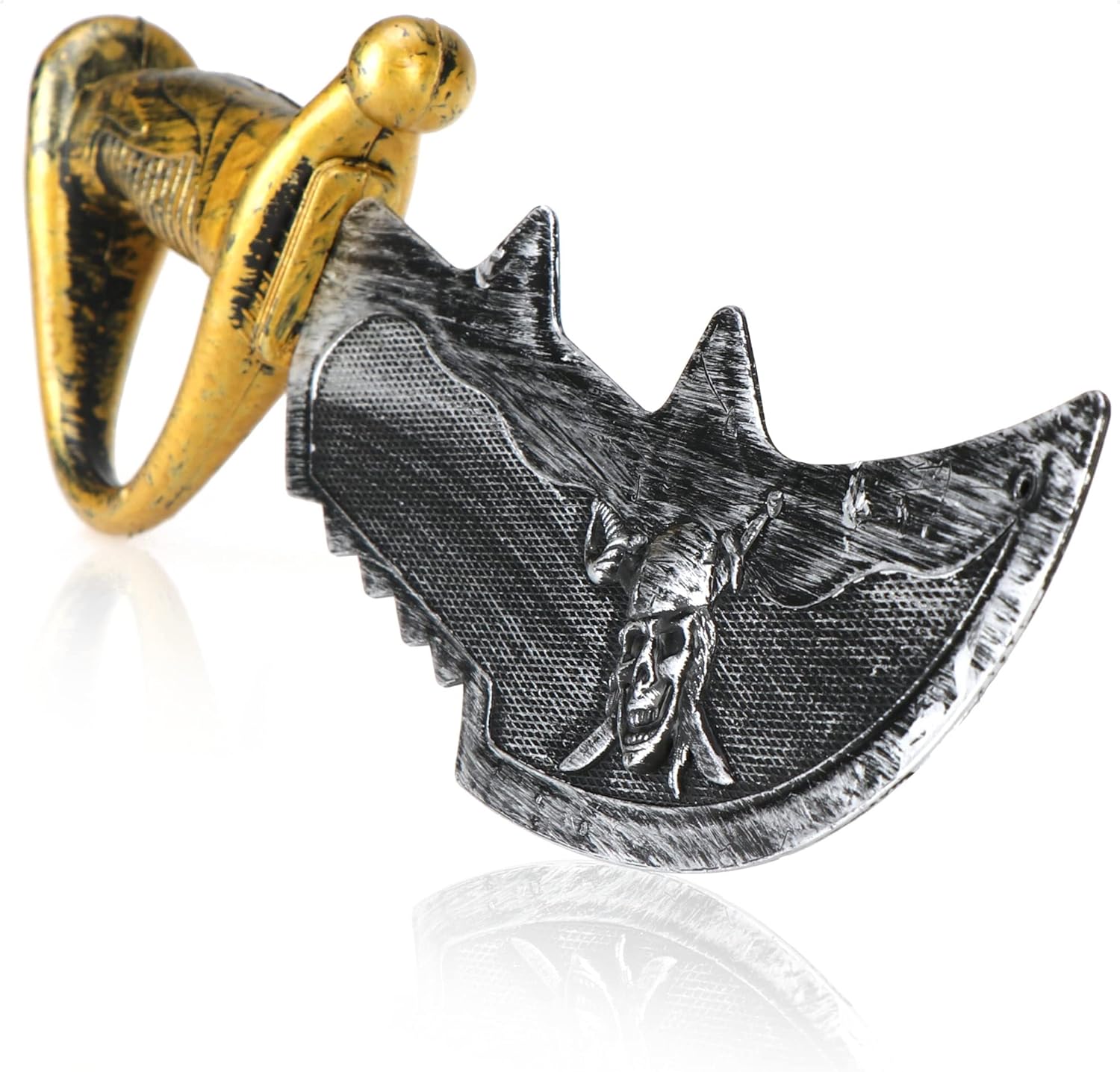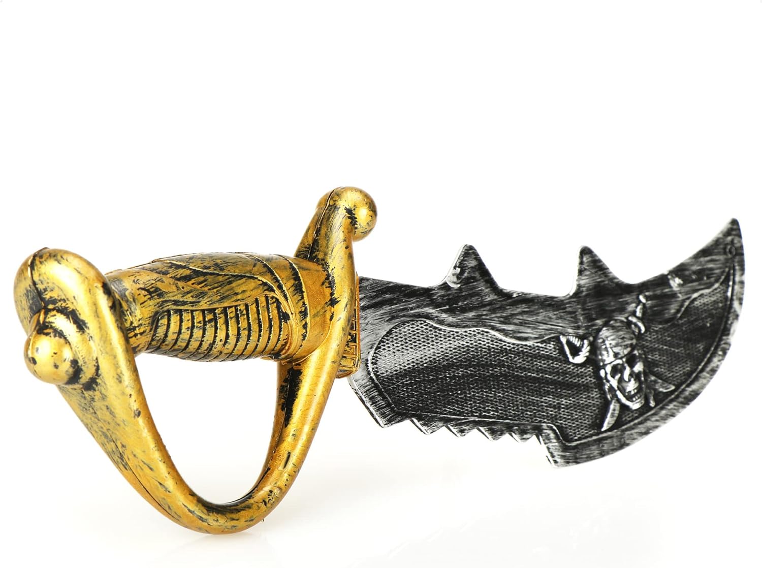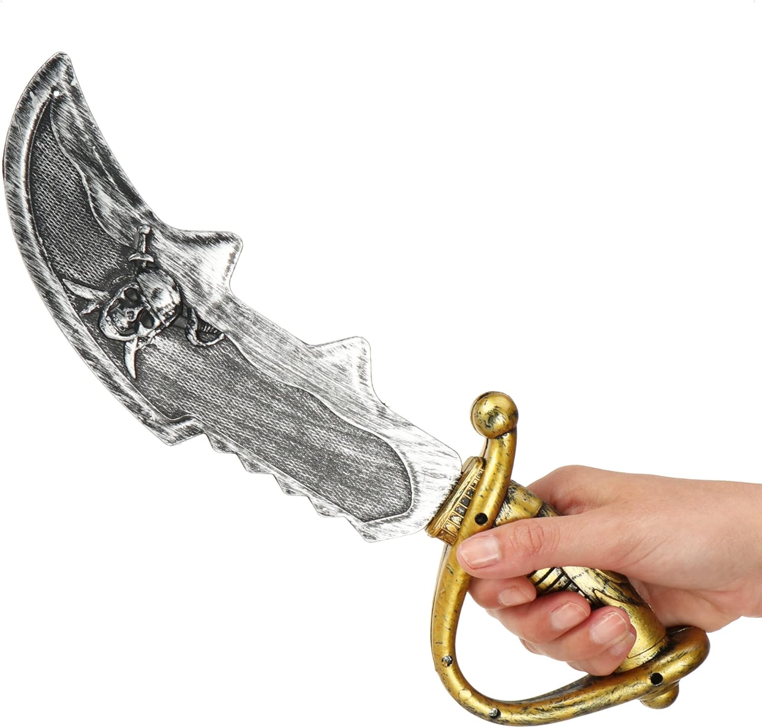 ACCESSORI PER PIRATI: un fantastico accessorio per costumi per piccoli pirati. Ciò rende i più piccoli semplicemente imbattibili nella battaglia ad ogni festa in maschera! DESIGN AUTENTICO: la sciabola da pirata ha un aspetto molto autentico con la sua elsa dorata e la lama d'argento con teschio, il tipico simbolo dei pirati GRANDE COSTUME: che si tratti di carnevale, Halloween, feste per bambini, feste a tema o spettacoli teatrali, la spada da pirata non dovrebbe mancare in nessun costume da pirata! LEGGERA E PRATICA: Grazie alla sua buona maneggevolezza, la spada di plastica è perfetta per i bambini, si tiene bene in mano, è leggera e ha una mobilità flessibile! CONTENUTO DELLA CONSEGNA: 2x sciabole da pirata // dimensioni di ogni sciabola: ca. 34 x 10,5 x 3,5 cm (lunghezza x larghezza x altezza) // colore: argento, oro, nero // materiale: plastica