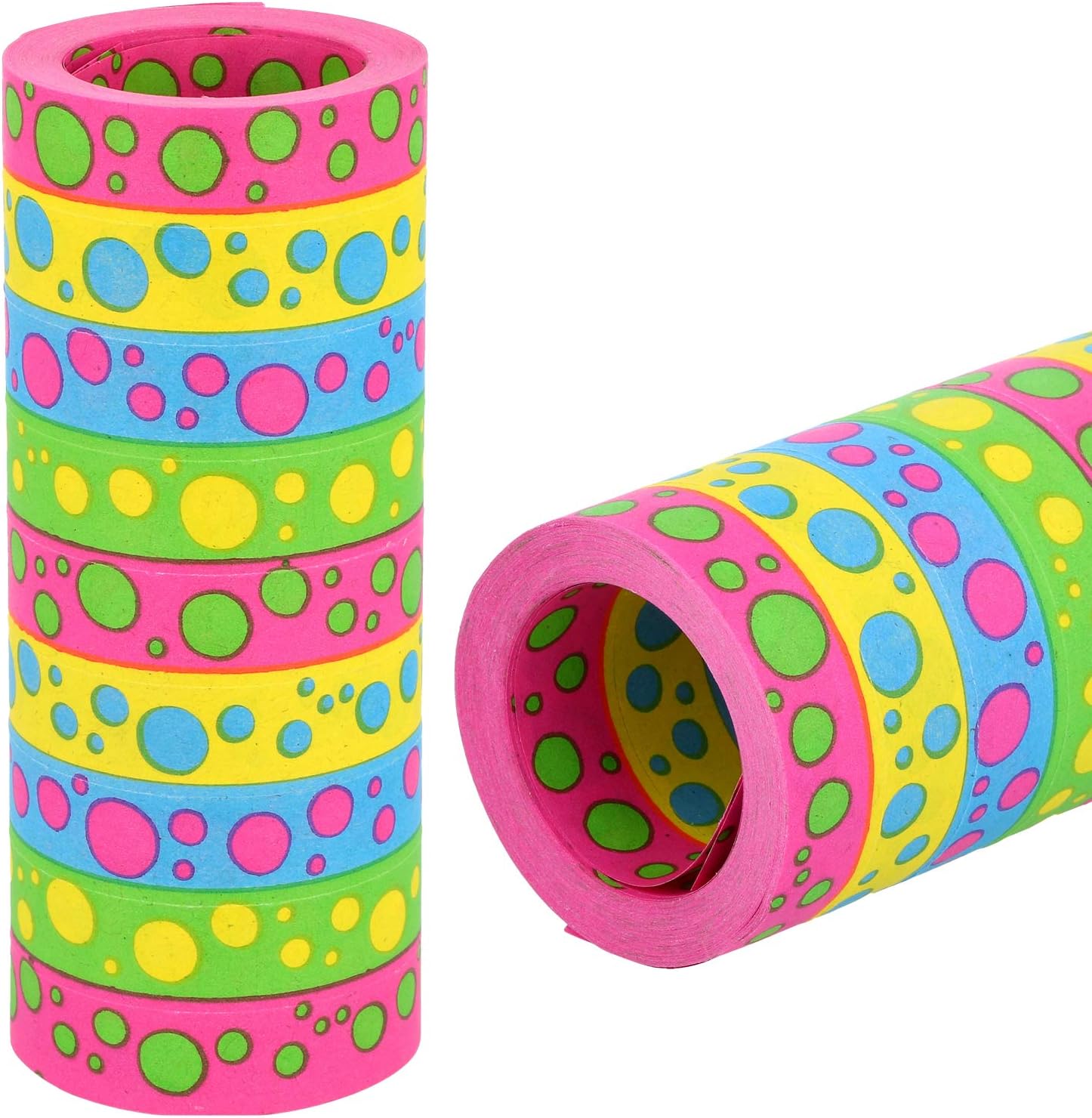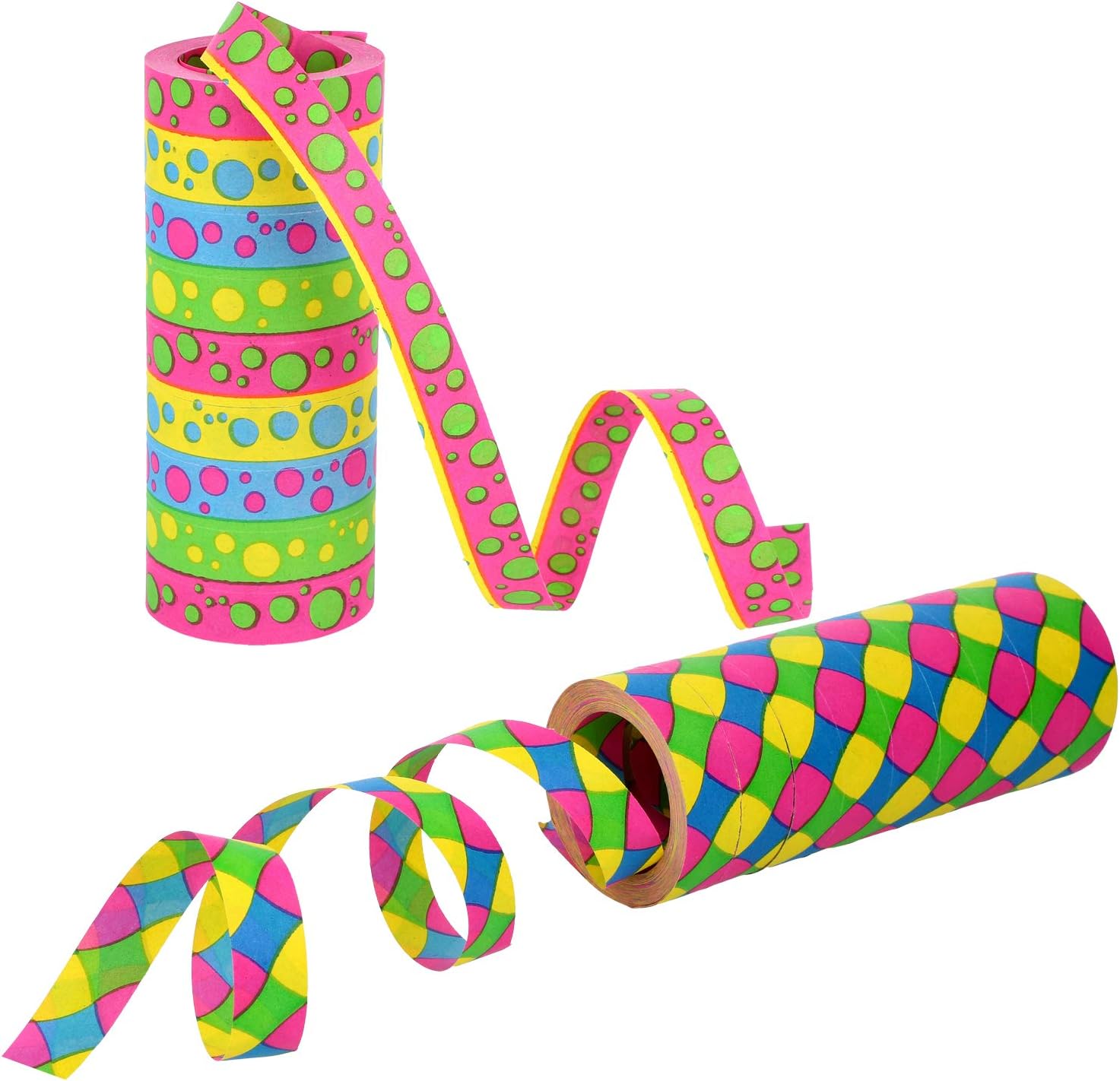 DECORAZIONE: nessuna decorazione per la festa senza stelle filanti! Non importa se si tratta di un compleanno per bambini, di una festa a tema o di Capodanno. Le stelle filanti di carta colorate sono un must ad ogni celebrazione! COLORATO: il bellissimo set di decorazioni è perfetto per decorare la tua casa o il tuo ufficio per la prossima festa e renderla colorata! SEMPLICE: Le stelle filanti di carta consentono una decorazione facile e veloce e, con i loro motivi colorati, sono una vera aggiunta a qualsiasi tavolo di compleanno! VERSATILE: gli streamer non possono essere utilizzati solo per decorare le sale delle feste, ma sono adatti anche a tutti gli hobbisti! AMBITO DI CONSEGNA: 4 rotoli di stelle filanti // 9 strappi per rotolo // Lunghezza per strappo: 15 m // 9 rotoli ciascuno da 14 mm di larghezza // Materiale: carta // Motivo: pois colorati, stoffa colorata