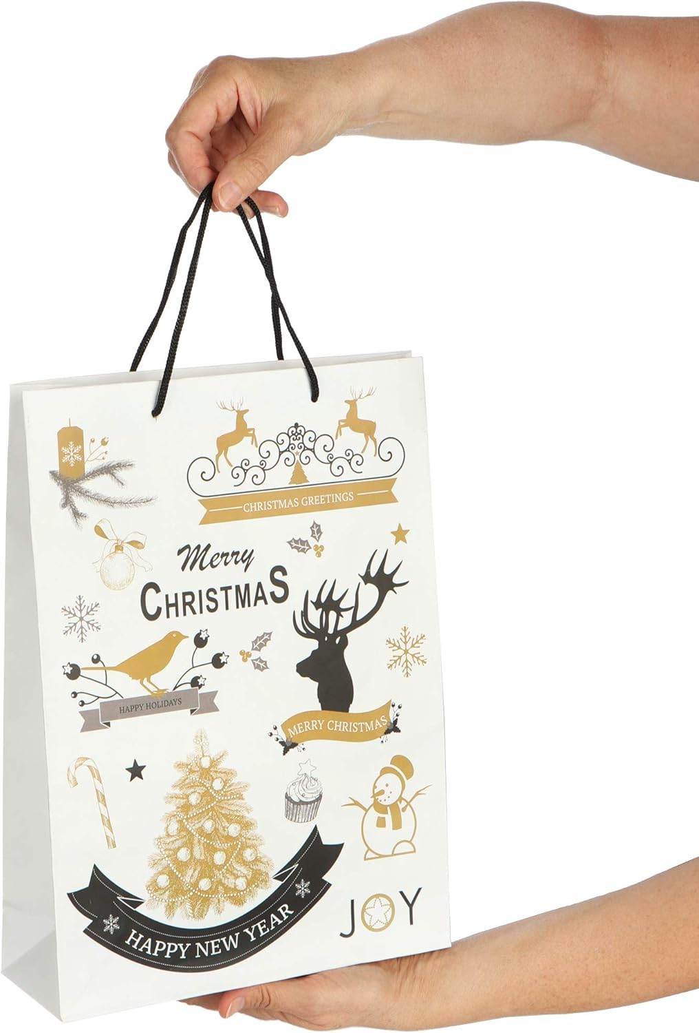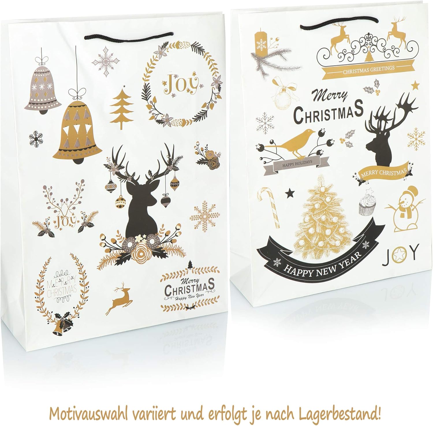 PRATICO: i sacchetti regalo durevoli con lacci per il trasporto sono ottimi come sacchetti regalo e borse per il trasporto di regali, regali, caramelle e altro ancora a Natale! BELLISSIMO DESIGN: i sacchetti regalo con motivi natalizi sono perfetti per Natale, Babbo Natale e l'Avvento e faranno sorridere ogni destinatario! DIMENSIONE GIUSTA: Con i sacchetti regalo grandi e robusti, regali di Natale, liquori, caramelle e molto altro ancora possono essere regalati con stile a Natale! ALTA QUALITÀ: i sacchetti regalo sono realizzati in carta robusta e rinforzata e donano a parenti, amici e colleghi un aspetto di qualità superiore! CONTENUTO DELLA SPEDIZIONE: 6 sacchetti regalo di Natale // Materiale: carta rinforzata // Dimensioni: ca. 35 x 25 x 9 cm (altezza x larghezza x profondità) // Motivi: 2 design diversi (la selezione varia e dipende dallo stock)