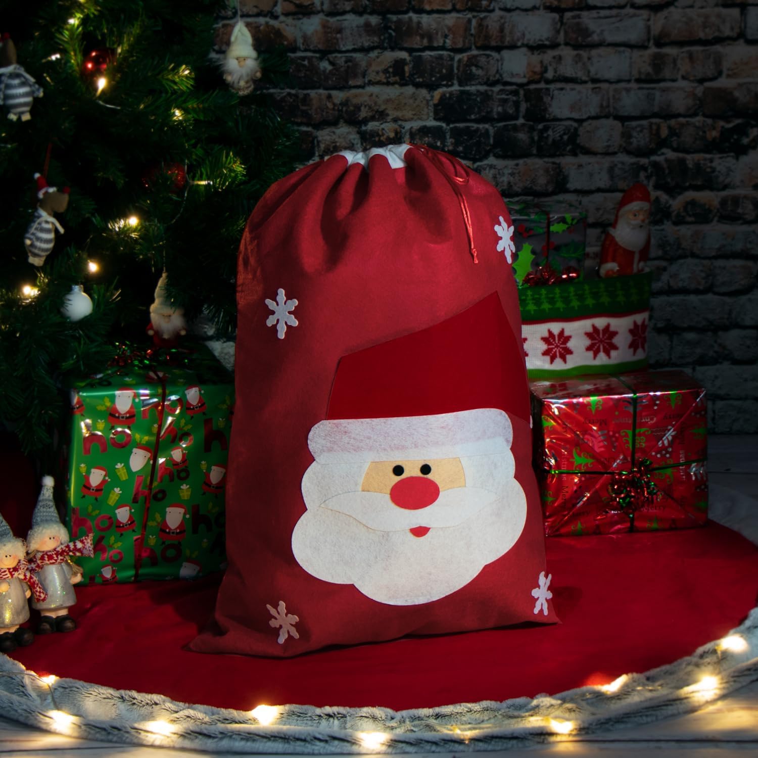 UMORE NATALIZIO: Con motivi disegnati con cura, il sacchetto regalo con coulisse crea una magica atmosfera natalizia per grandi e piccini. Questo rende divertente fare regali! BORSA REGALO: la borsa X-Mas è realizzata in feltro resistente e riutilizzabile e offre un modo affascinante per presentare regali. Completa ogni costume di Babbo Natale! CON COULISSE: Grazie al pratico cordoncino, la grande borsa regalo è facile e veloce da aprire e chiudere, il che rende più facile riempire e rimuovere i regali! VERSATILE: sotto l'albero di Natale a casa, come decorazione natalizia nel ristorante o nella hall dell'hotel o come decorazione per la vetrina - la borsa in feltro sta bene ovunque! AMBITO DI CONSEGNA: 1x sacchetto regalo con cordoncino // Dimensioni: ca. 71 x 51 cm (altezza x larghezza) // Colore: rosso, bianco // Materiale: 100% poliestere // Motivo: Babbo Natale