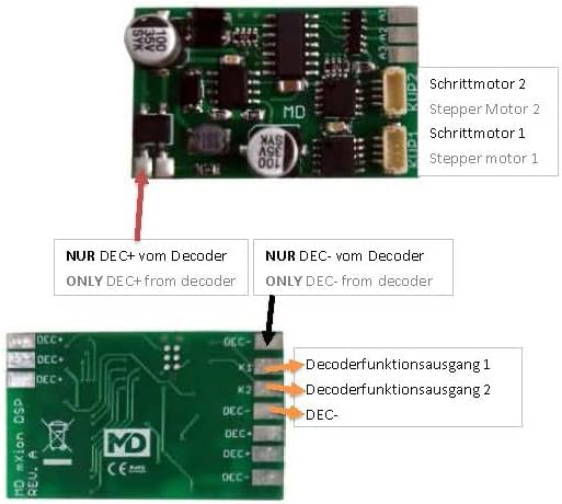 CONTROLLO PRECISO: tutti i motori passo-passo da 5 volt disponibili in commercio sono controllati con precisione dal controllo del motore passo-passo a 2 canali incluso il decodificatore. FUNZIONAMENTO ANALOGICO E DIGITALE: i disaccoppiatori corrispondenti di ML-Train 82505022 possono essere commutati dalla scheda in funzionamento analogico e digitale. ANALOGICO: oltre ai 2 ingressi di contatto, il controllo del motore passo-passo dispone anche di 2 uscite motore per l'attivazione analogica e manuale sul sistema ferroviario da giardino G Track. DIGITALE: Le 3 uscite di commutazione mettono a disposizione numerose funzioni speciali nel funzionamento digitale. Quando si utilizza un decoder di guida, la programmazione è semplificata, POSSIBILITÀ DI IMPOSTAZIONE: Con la programmazione CV è possibile, ad es. B. per impostare con precisione il numero di passi e la velocità dei motori.