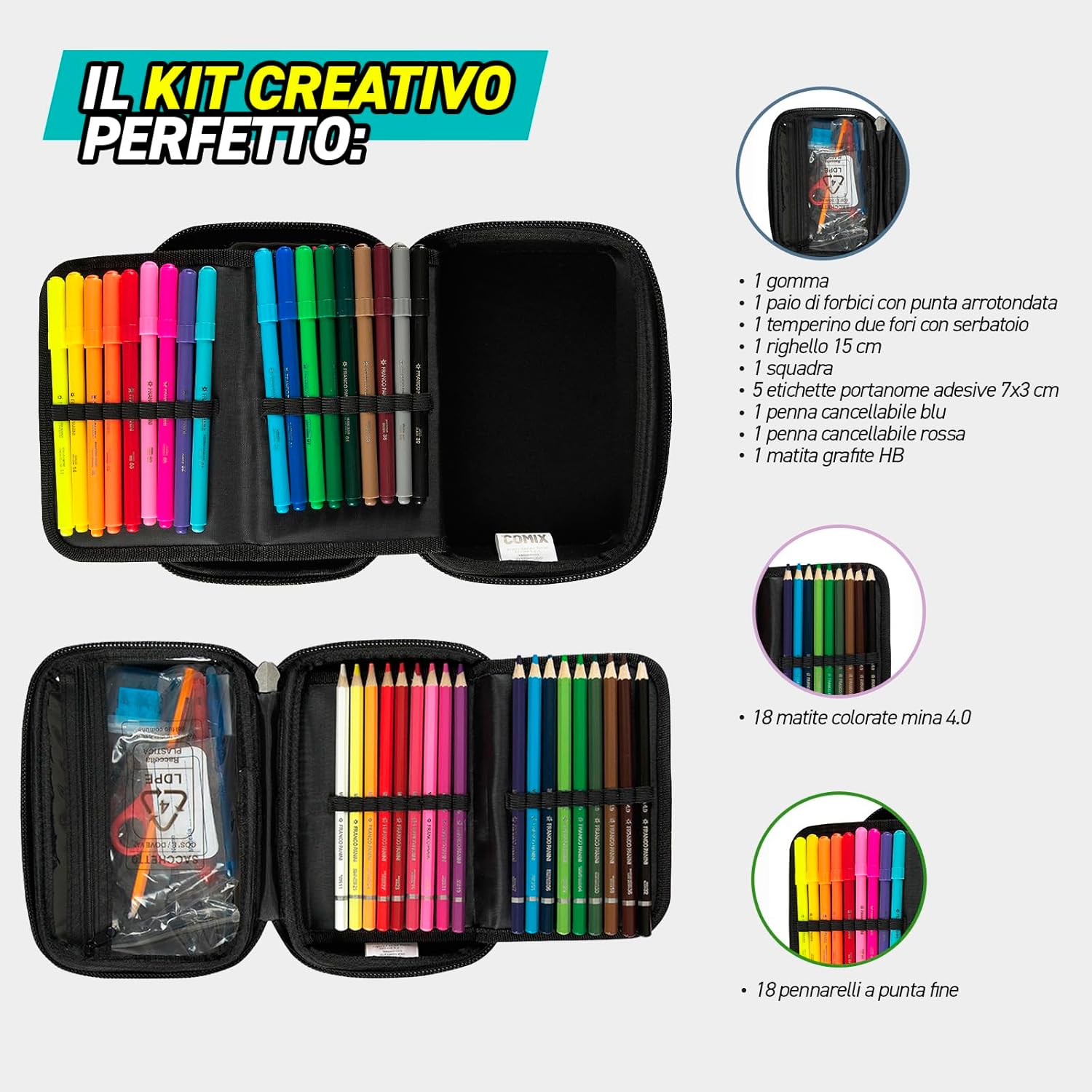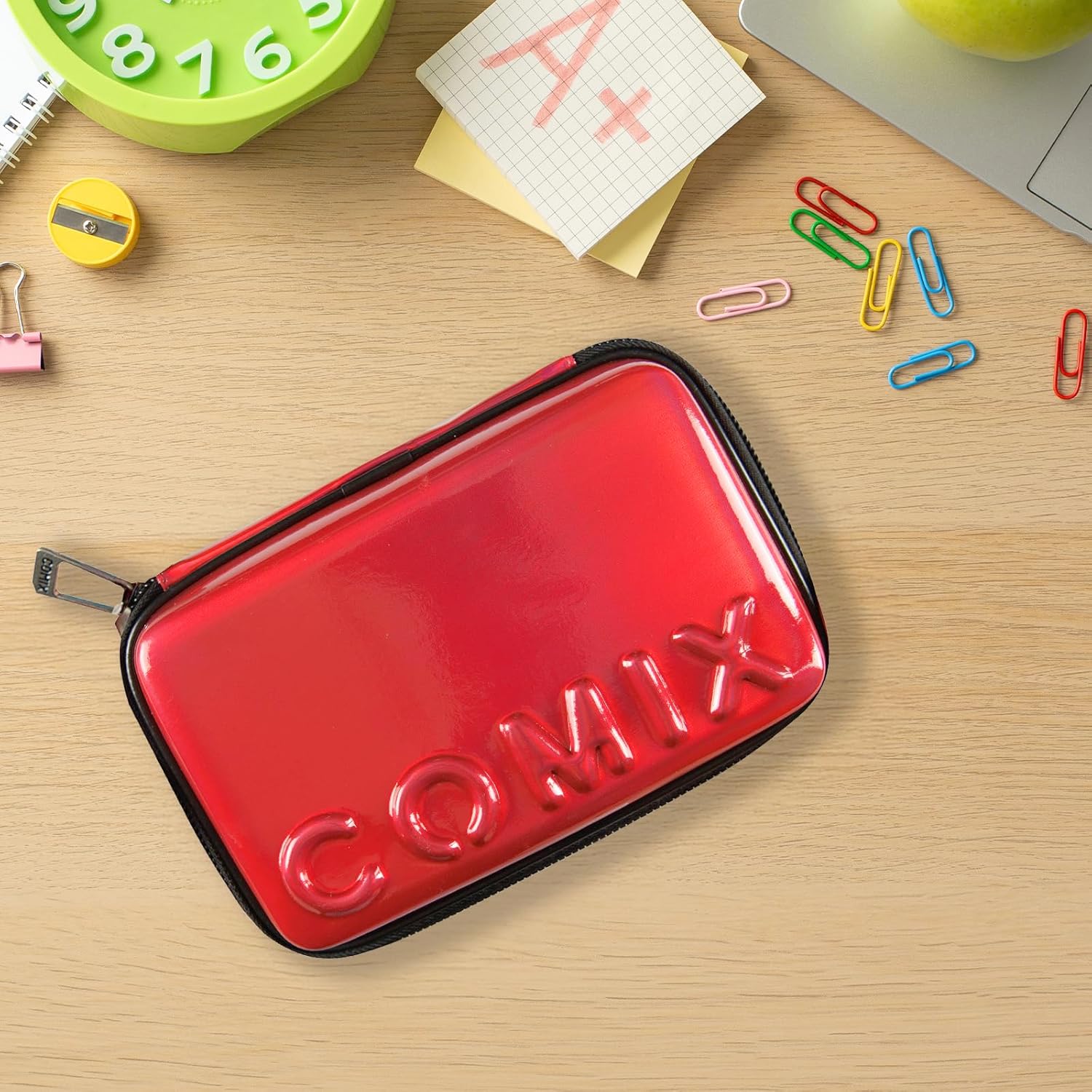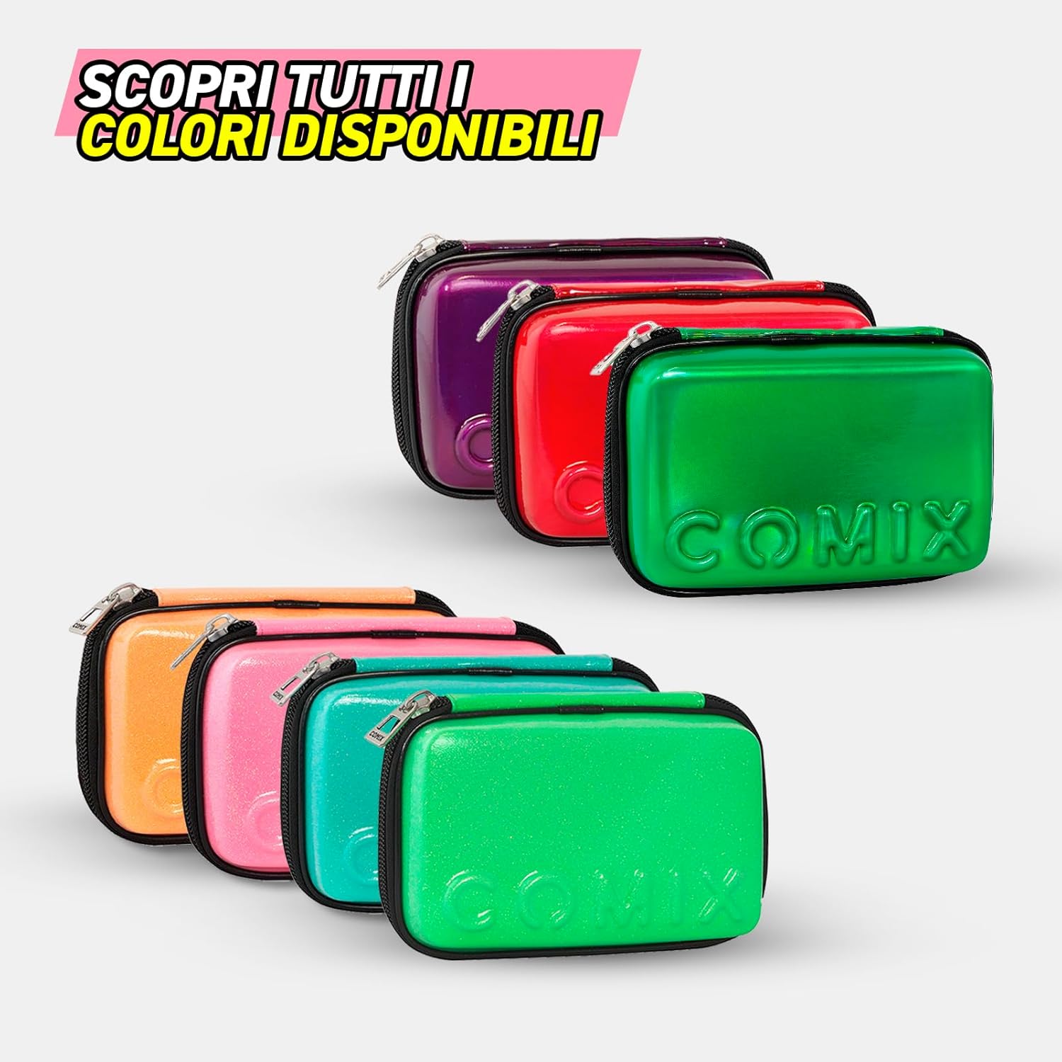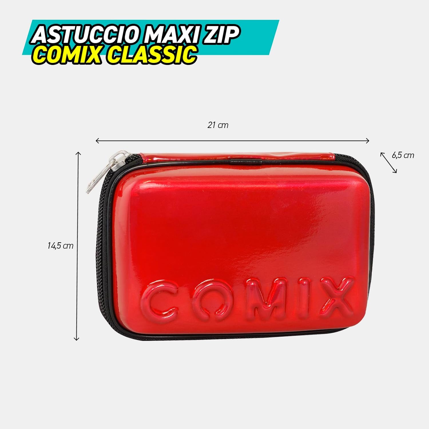 COMIX - Astuccio Scuola, Astuccio Maxi Zip per Bambini e Ragazzi, con Set Cancelleria Incluso, Cover Rigida con Maxi Logo in Rilievo e Tirazip in Metallo, 21 x 14,5h x 6,5 cm