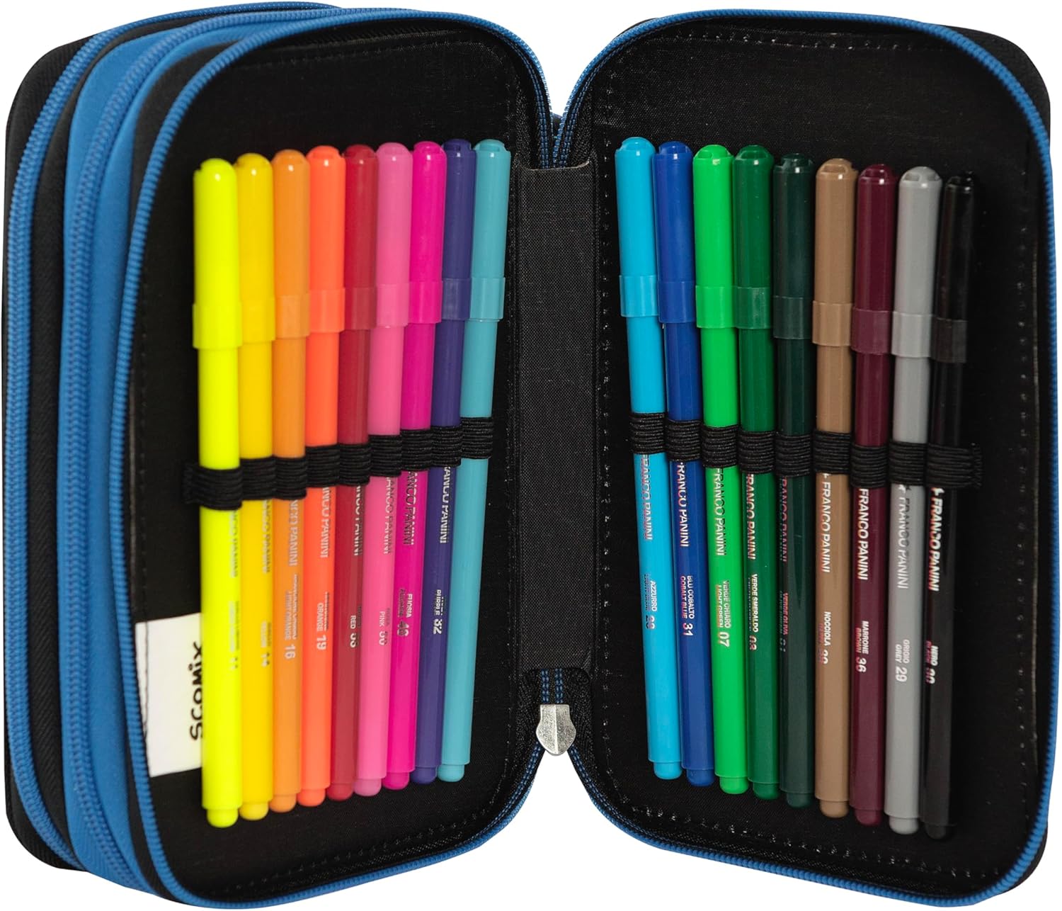 L'astuccio corredo Comix Scottecs by Sio dispone di 3 scomparti e ti permetterà di organizzare e trasportare comodamente tutti i tuoi strumenti di scrittura e disegno per la scuola, per averli sempre a portata di mano. Grazie alle dimensioni compatte, questo astuccio è molto spazioso e include 18 pennarelli, 18 matite colorate, una matita, una gomma, una penna cancellabile blu, una penna rossa, un righello, un temperino con due fori, forbici con punta arrotondata e delle etichette portanome. Scegli la qualità e l'eleganza Comix per rendere la tua esperienza di studio ancora più piacevole. Acquista ora questo astuccio e preparati per un nuovo anno scolastico all'insegna dell'organizzazione e dello stile.
