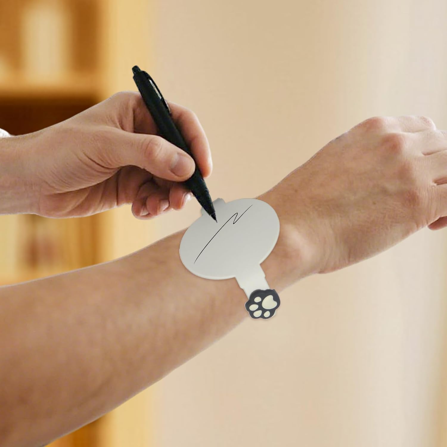 Design del cinturino non irritante: progettato con materiale di sicurezza delicato sulla pelle, comodo cinturino indossabile, il cinturino flessibile in silicone fornisce una composizione non irritante e una vestibilità comoda a lunga durata, offrendo una delicata esperienza tattile contro la pelle Accesso istantaneo ai memo: progettato per la comodità, cinturino impermeabile promemoria questo braccialetto promemoria fornisce materiale lavabile con alcool che funziona perfettamente con penne a sfera, consentendo agli utenti di registrare promemoria istantaneamente e riutilizzare il cinturino ripetutamente in diverse impostazioni Uso multiuso: supporta le esigenze di diversi ruoli come l'infermieristica e l'insegnamento, questo blocco note in silicone indossabile semplifica la pianificazione quotidiana e il monitoraggio delle attività con un design aerodinamico che si fonde facilmente in ambienti professionali per una migliore efficienza lavorativa Design adatto ai bambini: incoraggia i bambini a esprimere idee in modo creativo sulle superfici adatte agli scarabocchi, il cinturino in silicone per infermiere favorisce l'indipendenza e migliora la gestione del tempo in modo incentrato sui bambini Strumento di scrittura trasparente: presenta superfici rivestite resistenti alle sbavature, cinturino riutilizzabile impermeabile che garantisce prestazioni di scrittura chiare e usabilità di lunga durata, con riutilizzabilità di scrittura e cancellazione per una lunga durata del design