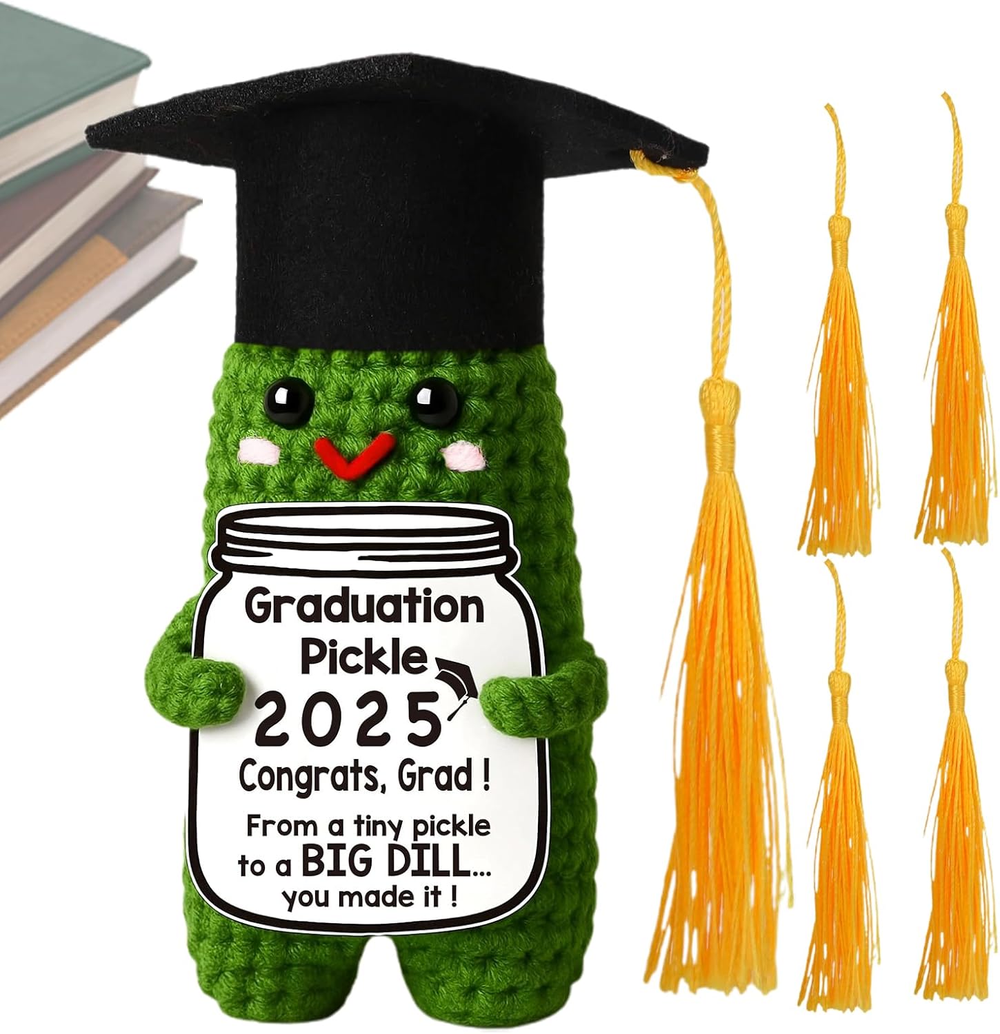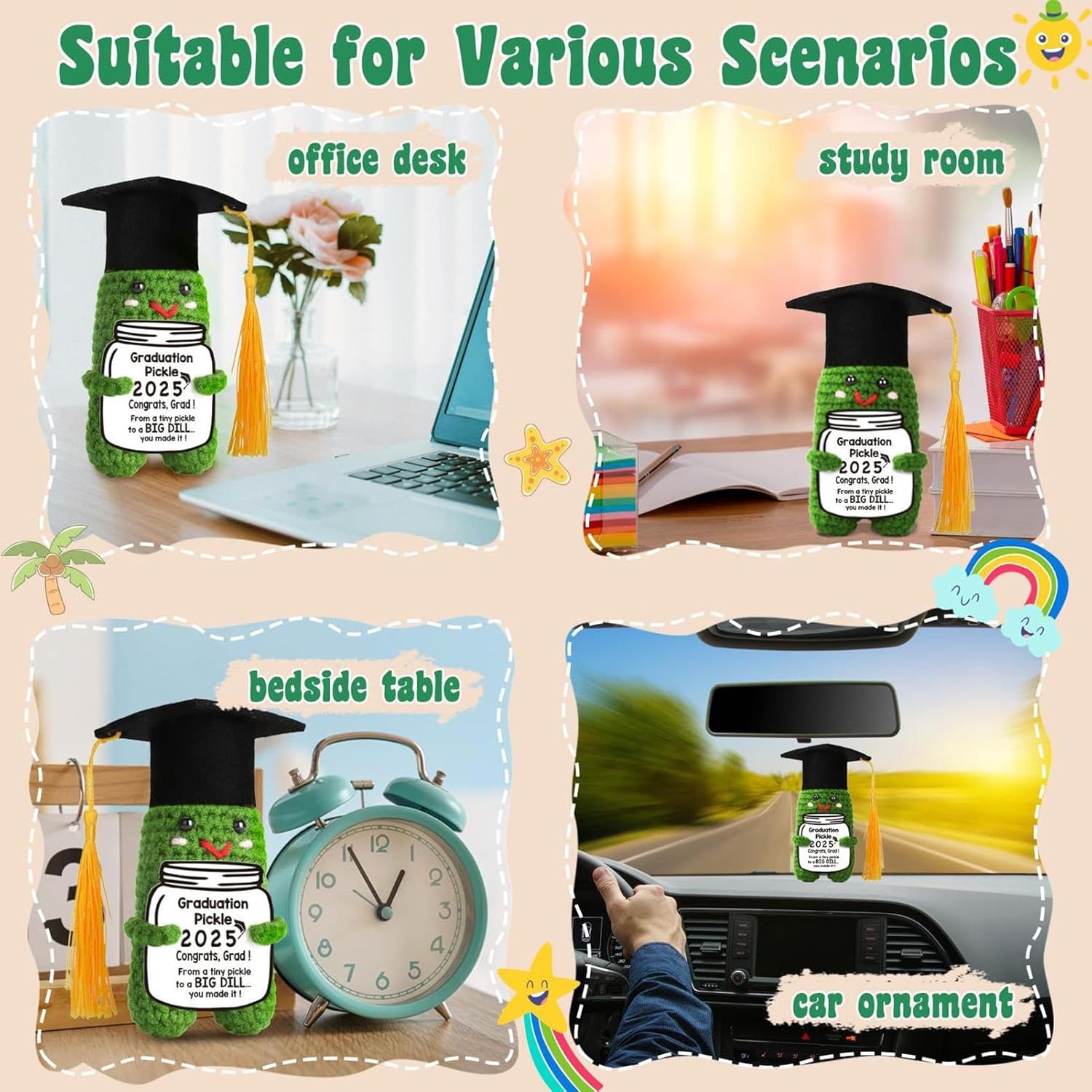 Design unico del cetriolo: l'originale bambola all'uncinetto a forma di cetriolo combina il fascino tematico con un'allegra atmosfera festosa - Ideale per documentare i momenti salienti accademici del 2025 attraverso l'artigianato creativo Molteplici usi: come decorazione murale, compagno di ufficio o da collezione, l'artigianato fatto a mano offre molte possibilità di utilizzo - un pratico souvenir con carattere emotivo per le lauree scolastiche Colori pompon personalizzabili: cinque diverse opzioni di colore pompon consentono un abbinamento perfetto con i colori della scuola o gli stili individuali. Ideale come accessorio di laurea personalizzato con un tocco personale Dettagli unici: i punti all'uncinetto realizzati individualmente e le proporzioni simmetriche conferiscono a ogni bambola un carattere distintivo come oggetto da collezione Compatto e leggero: grazie al suo design ottimizzato in termini di spazio, la figura all'uncinetto 3D si adatta facilmente a qualsiasi ambiente. Le opere d'arte decorative in miniatura fungono da rappresentazione stilizzata del successo per espositori su scaffali o decorazioni per ufficio