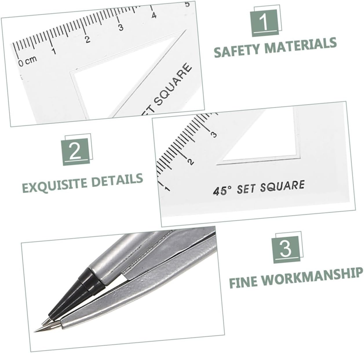 Design efficiente: garantisce la possibilità di disegnare in modo continuo senza il fastidio dell'affilatura manuale, offrendo un'esperienza di disegno ed efficiente, set di geometria per studenti, set di compasso Utilizzo versatile: adatto a insegnanti, studenti, architetti e ingegneri, questo set è adatto a una di applicazioni, progetti scolastici alle attività di disegno professionale, compasso di geometria, compasso da disegno Ampia di usi: adatto a una varietà di applicazioni, tra cui attività d'ufficio, progetti scolastici e uso domestico, questo set soddisfa tutte le tue esigenze di disegno e misurazione, bussola per geometria, righello triangolare Uso multiuso: adatto a studenti, insegnanti, architetti e ingegneri, questo set versatile è adatto a una di applicazioni, progetti scolastici al disegno professionale, bussole per geometria, righello per matematica geometrica Kit completo di geometria: questo set di geometria include un compasso, un goniometro e vari righelli, fornendo tutti gli strumenti essenziali per costruzioni geometriche accurate, matematica del compasso, grazioso righello