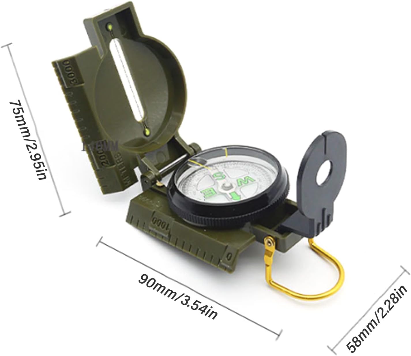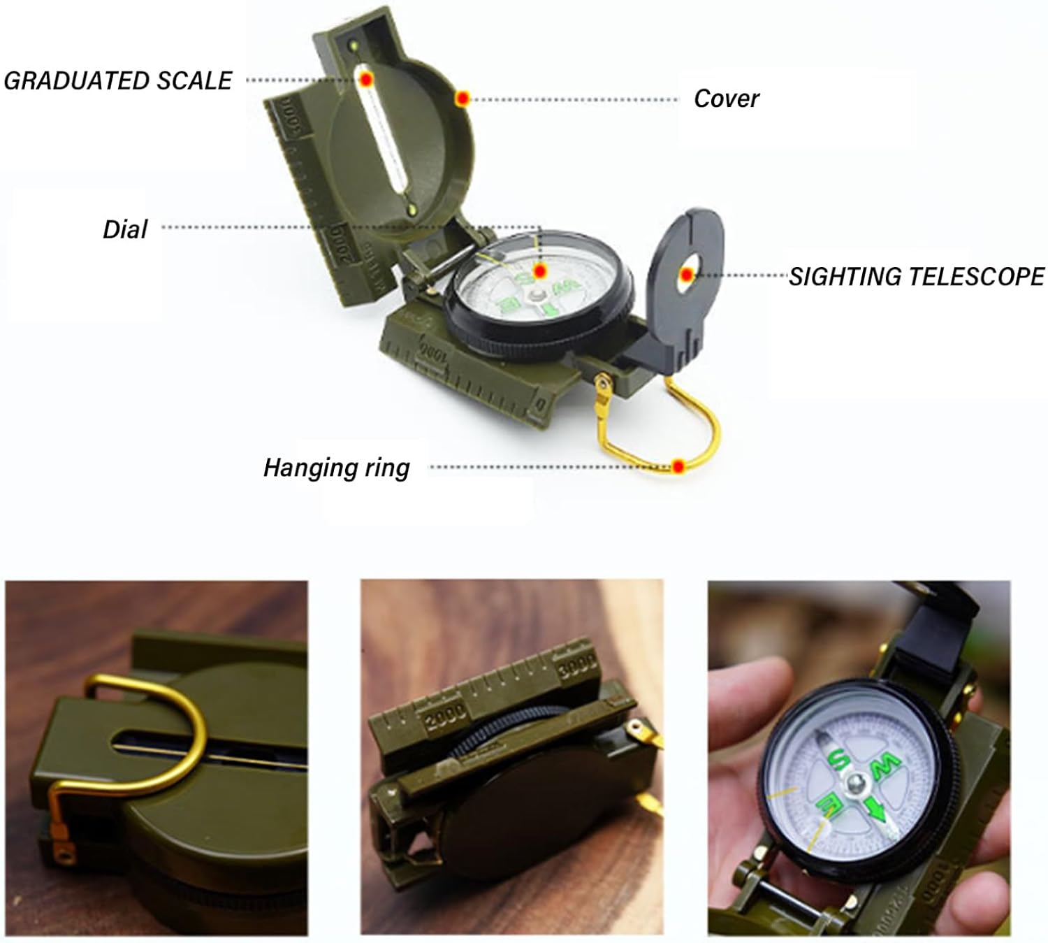 Adatto a dilettanti all'aperto come dilettanti in campeggio, esploratori avventure Copertura in metallo pieghevole, quadranti mobili a bussole con a 360 °, lente a getto regolabile, prova d'acqua stili multifunzionali rendono convenienti per trasportare funzioni direzionali accurate componente del plastomer è leggero e durabilità, comprese le funzioni strategiche accurate e affidabilità Emergenze Navigazioni per direzione persa, Attività addestramento per sopravvivenza nella selvaggia, escursioni esplorazioni