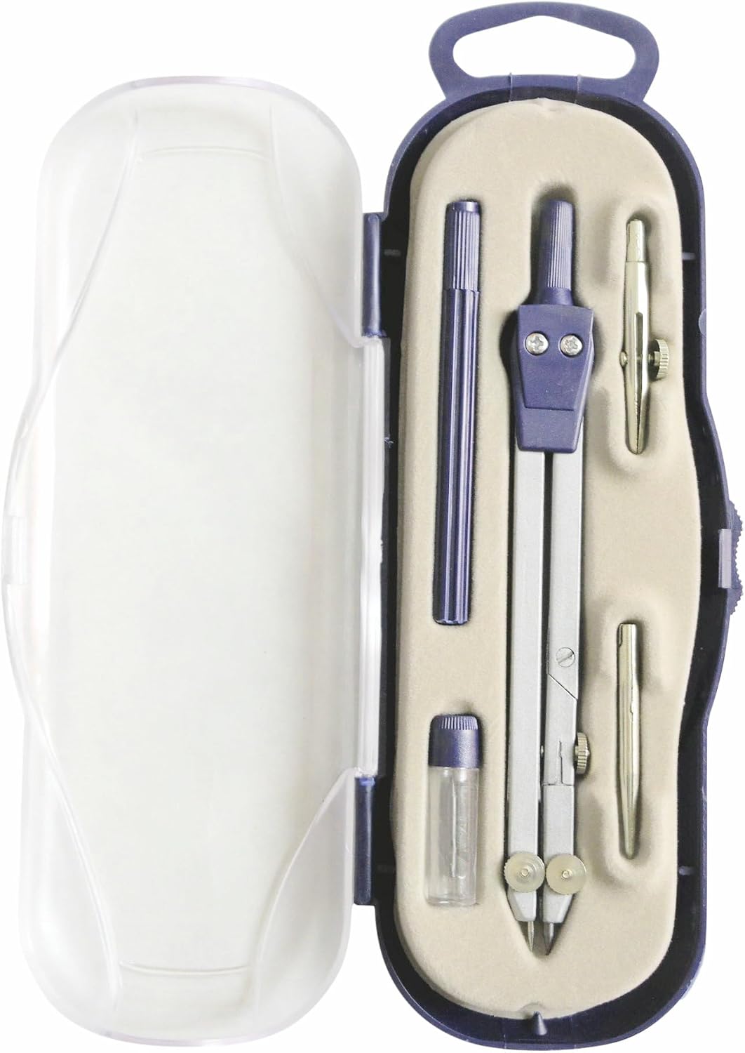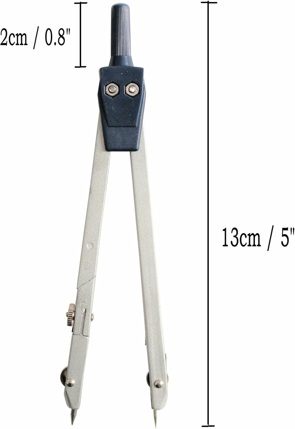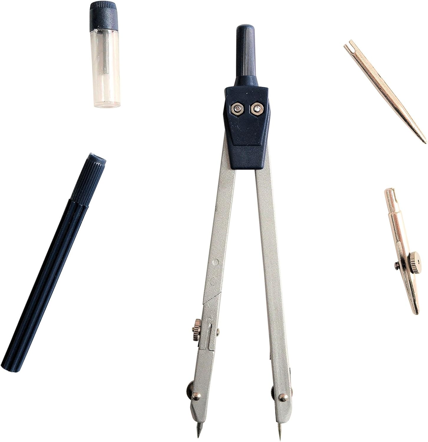 Utensile professionale in metallo per grafico geometrico. Portata durevole e facile. Materiale metallico e plastico di alta qualità. Con prolunga compasso. Con mine di ricambio, Supporto per rapido grafi. Il kit compasso è molto adatto per l'uso in scuole, uffici, falegnameria o casa.