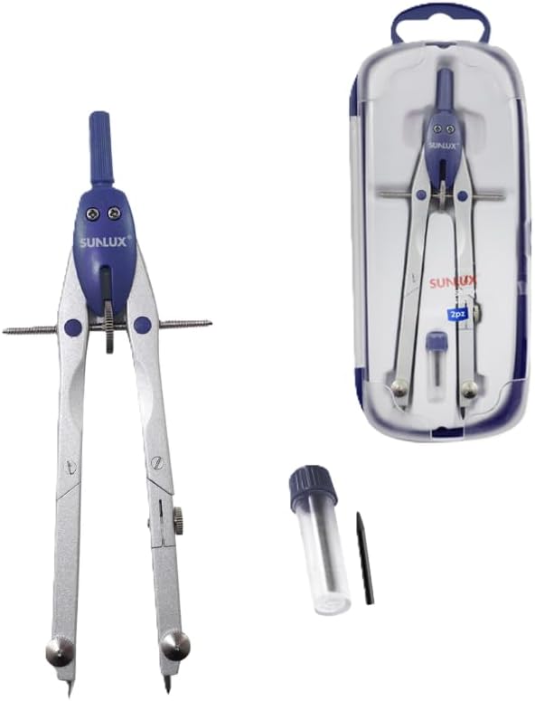 🧭 Alta Precisione – Ideale per disegno tecnico, geometria e lavori professionali. 🔩 Struttura Robusta – Corpo in acciaio resistente per una lunga durata. 📏 Dimensioni Ottimali – Lunghezza 17 cm per un controllo preciso e comodo. ✏️ Mine Incluse – Dotato di 2 mine di ricambio pronte all’uso. 📐 Balaustrone Fisso – Massima stabilità durante l’uso, perfetto per cerchi regolari.