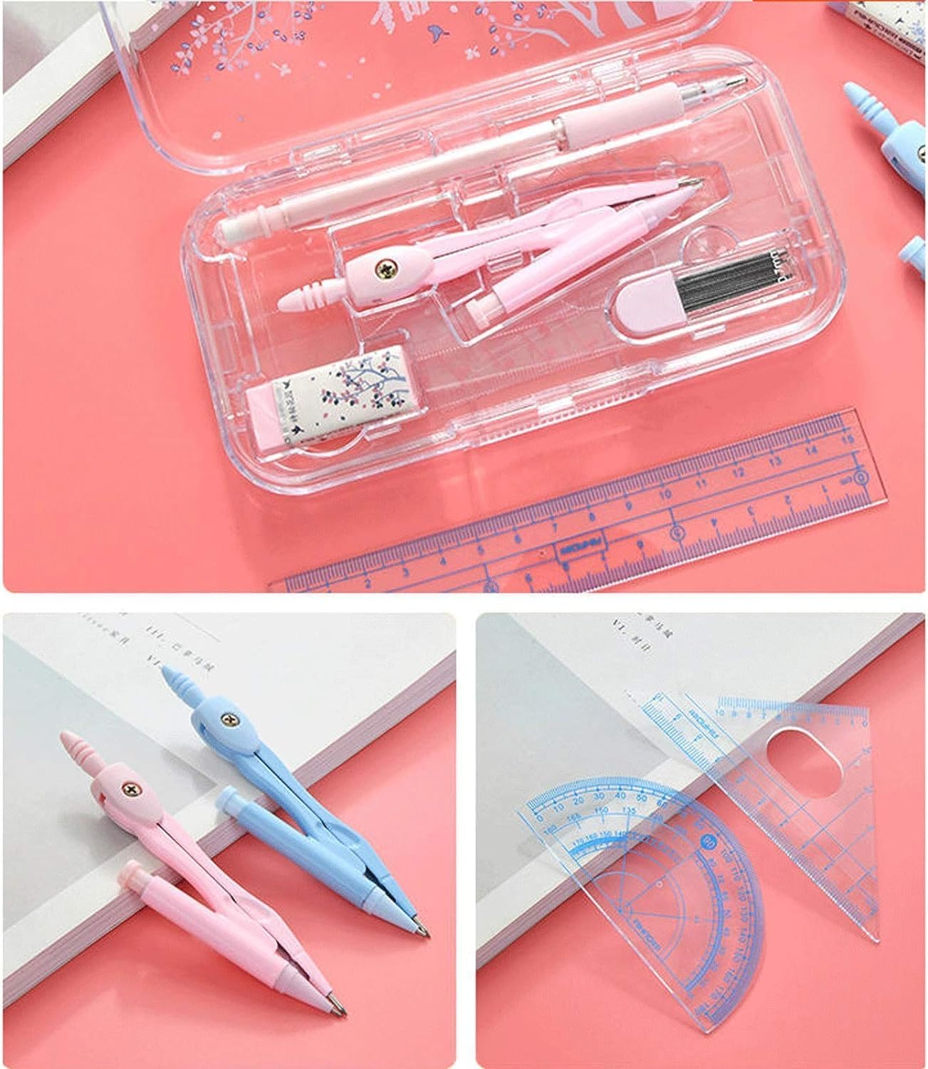 Realizzati con materiali durevoli, i nostri strumenti sono progettati per garantire precisione e durata costanti, sia che tu sia uno studente alle prese con i compiti di geometria, sia che tu sia un professionista che lavora su progetti complessi. 8 pezzi di matematica: gli strumenti di geometria includono compasso, goniometro, 2 righelli triangolari (45 gradi e 30 gradi), matita meccanica, nucleo di mina, righello Compasso da disegno con mina di matita, utilizzato per disegnare cerchi o circonferenze, resistente e facile da trasportare. Goniometro in plastica trasparente: il colore trasparente facilita la misurazione. Il goniometro può misurare da 0 a 180 gradi da sinistra a destra e da destra a sinistra. Questo strumento geometrico è realizzato in plastica, leggero e facile da trasportare. Può essere riposto in uno zaino o in una scrivania. Portatile e durevole: gli strumenti geometrici sono realizzati in plastica, leggeri, facili da trasportare, possono essere riposti in uno zaino scolastico o in una scrivania