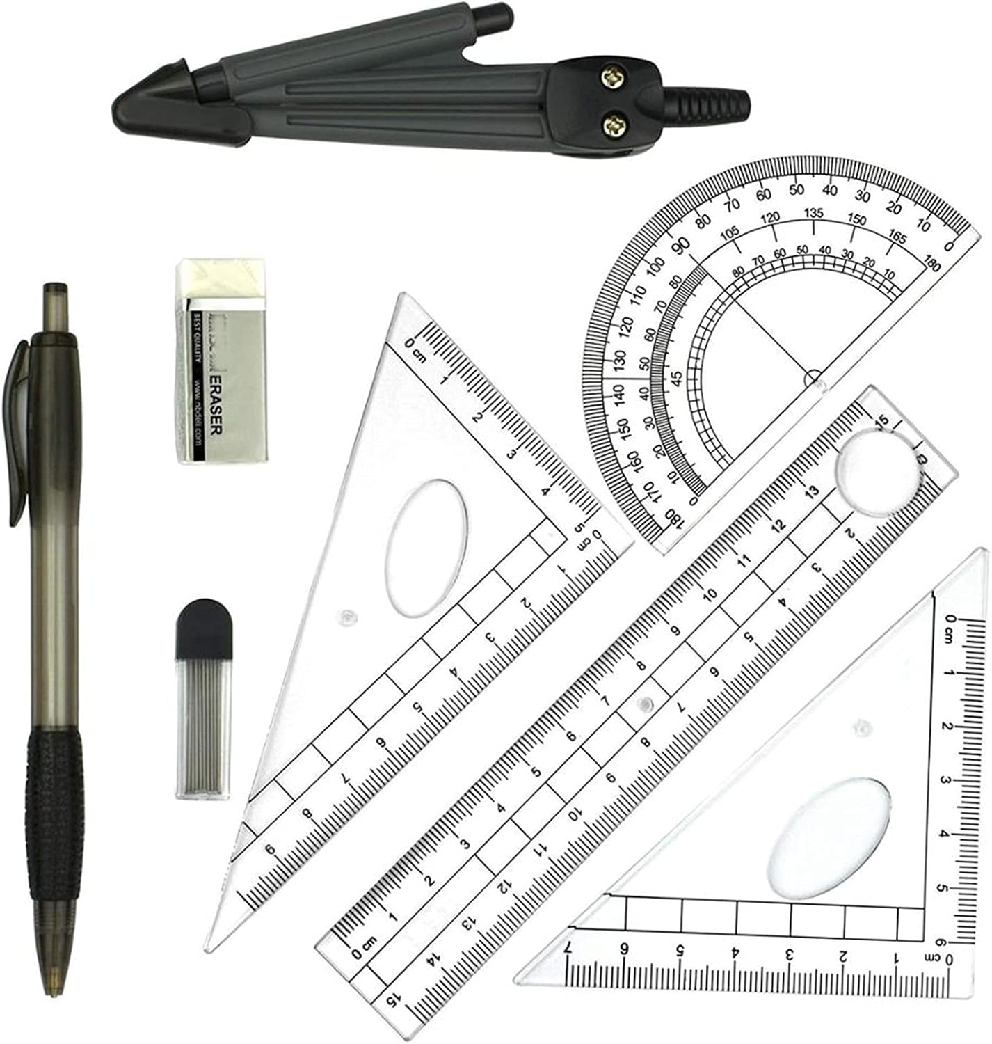 ◎ Kit di strumenti per il disegno della geometria per studenti di diversi gradi a scuola ◎ Contenuto dell'imballaggio (in totale 8 pezzi): 1 * Scatola di rottura, 1 * Bussola grafica, 2 * Righelli triangolari, 1 * Righello dritto, 1 * GONOMIOLO, 1 * Matita meccanica, 1 * Diari per matite, 1 * Facilitatore ◎ Materiale: plastica, dimensioni della custodia: 6,9 * 3*1.1"(17,5*7,5*2,8 cm) ◎ Facile da portare in classe e riporre in classe e a casa ◎ Kit di strumenti per il disegno della geometria per studenti di diversi gradi a scuola Regalo ideale per gli studenti