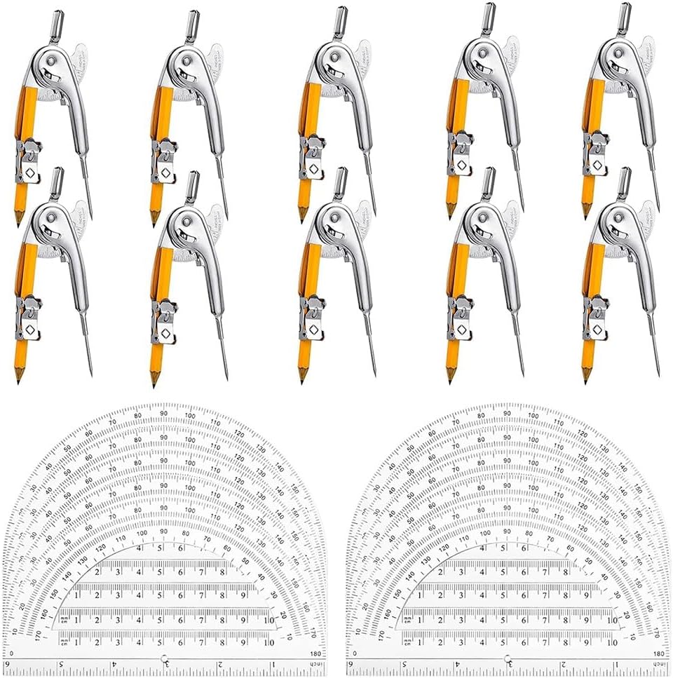 Materiale: plastica di alta qualità, confezionato in una scatola di plastica, che rende lo strumento indipendente, ordinato e facile da trasportare Set comprendente: 1 bussola, 1 mina per matita Dimensioni del prodotto: 45 x 137 x 18 mm Caratteristiche: Leggero, maneggevole e pratico, può essere messo in uno zaino, in una borsa o in una scrivania, soddisfa tutte le esigenze quotidiane di apprendimento e misurazione della matematica Occasione: ideale per scuola, ufficio e casa, ottima idea regalo per studenti, insegnanti, architetti, ingegneri, artisti, designer e altri professionisti. Può essere utilizzato come strumento di disegno o pittura di base per progetti e opere d'arte, offrendoti gli strumenti per la matematica e la creatività artistica ovunque tu sia.