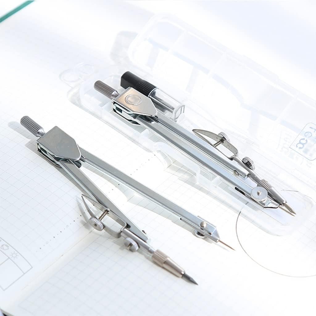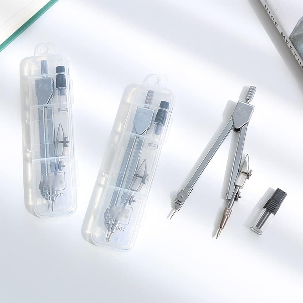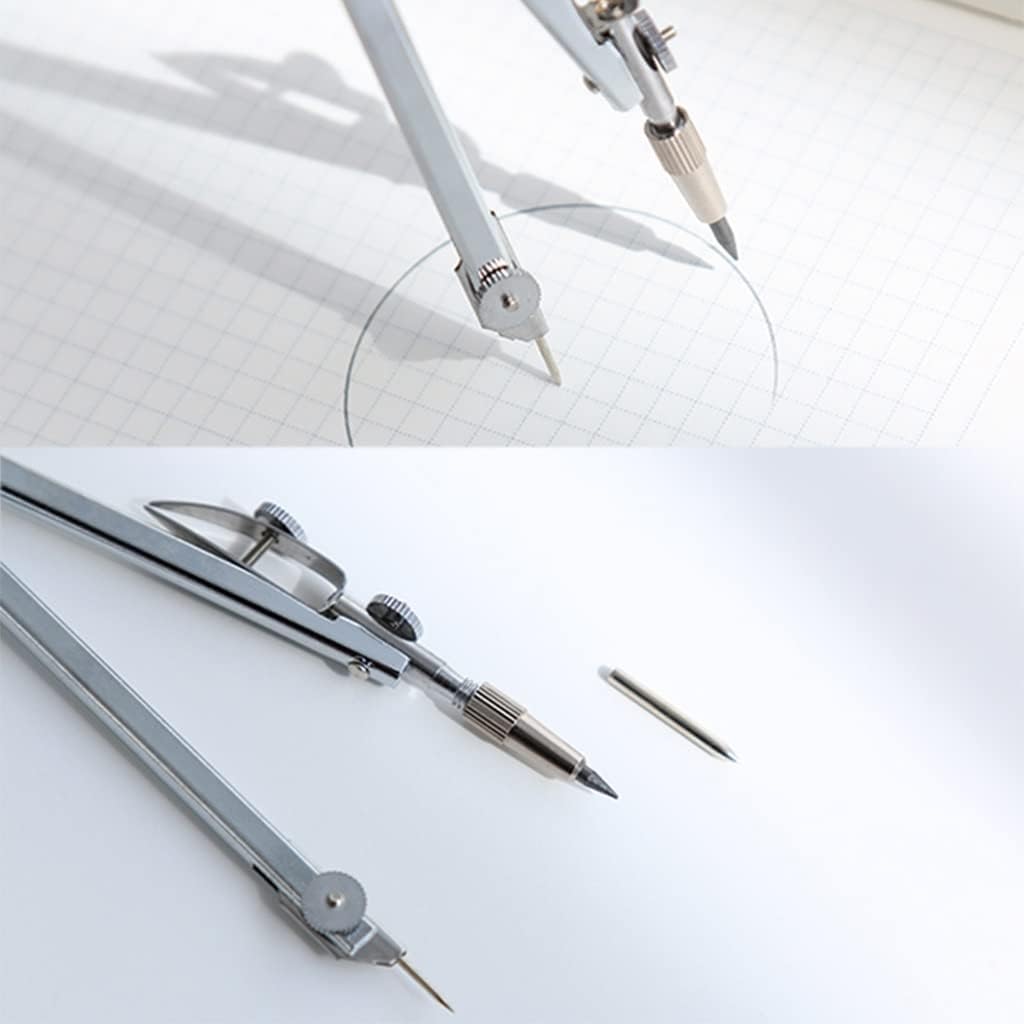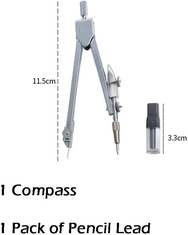 Lo strumento di disegno è riutilizzabile, facile da trasportare e riporre, adatto a tutti i progetti di base di insegnanti e studenti di qualsiasi livello Molto adatto per il disegno, adatto per artigiani, studenti, insegnanti, ingegneri, designer, artisti, ecc. Realizzato in materiali metallici, la bussola non si piegherà o si deforma durante l'uso ed è progettato ergonomicamente per renderlo comodo da tenere. Il kit bussola è imballato in una piccola scatola, è facile da conservare, può anche essere facilmente inserito in un caso di matita, e la dimensione è giusta. Contenuto del prodotto: 1 bussola, 1 scatola di nuclei di piombo. Drawing Bussola è adatto per equazioni matematiche, geometria dell'oggetto, progettazione artistica, schizzi di redazione, disegno e altri campi. Dotato di un braccio espandibile, l'angolo è variabile, e le forme geometriche possono essere costruite, compresi pentagoni verticali, linee rette, linee parallele, triangoli, cerchi, rettangoli e altri strumenti necessari per qualsiasi forma geometrica.